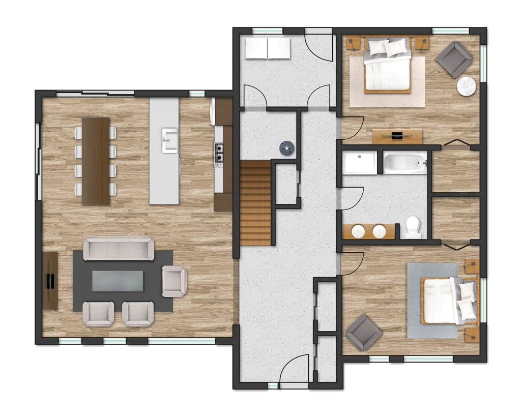 Depending on your region of Quebec, Boréal may refer you to certified general contractors who will be able to offer you the construction of your building in an “assembled shell” package or if you are doing business with one of our distributors, he will be able to offer you his own service or refer you to a contractor in your area. The installation team will assemble the floors, frame, roof and other structural elements of the building, on the foundation you have previously built. You then have full control over the selection and installation of cabinetry, plumbing, electrical, siding and interior finishing.