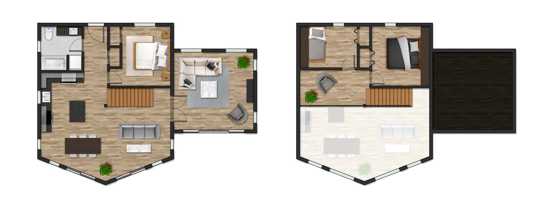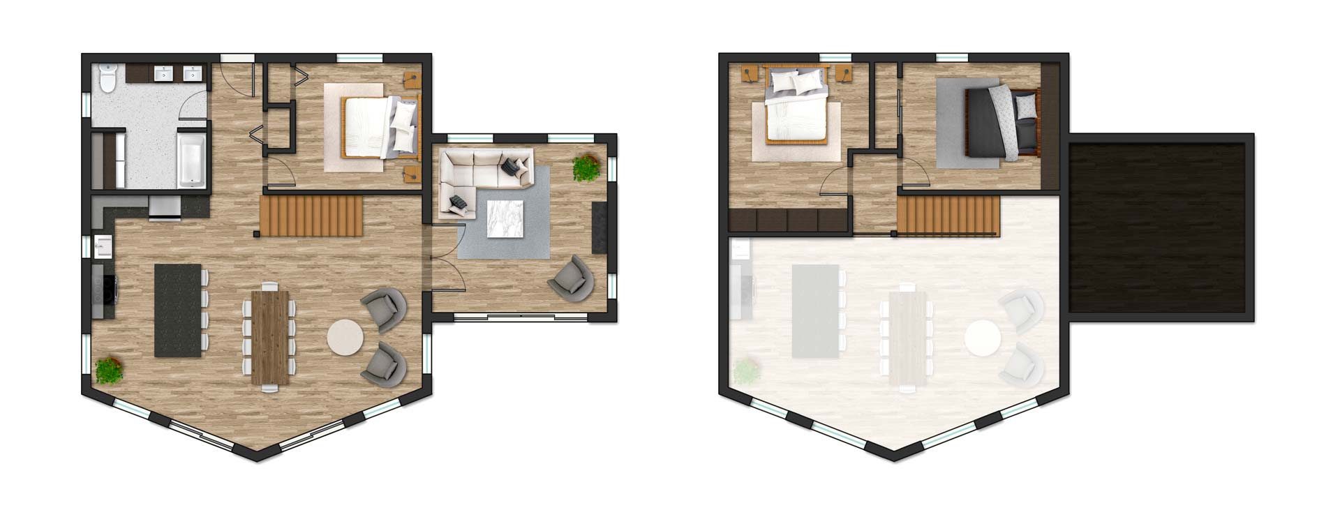 Your Boreal building will be delivered on the site of your choice. As is the case for all our kits, the basic models can be modified according to your preferences. You can therefore select the type of exterior siding you prefer: the rustic charm of the half-log or a chic flat profile.
