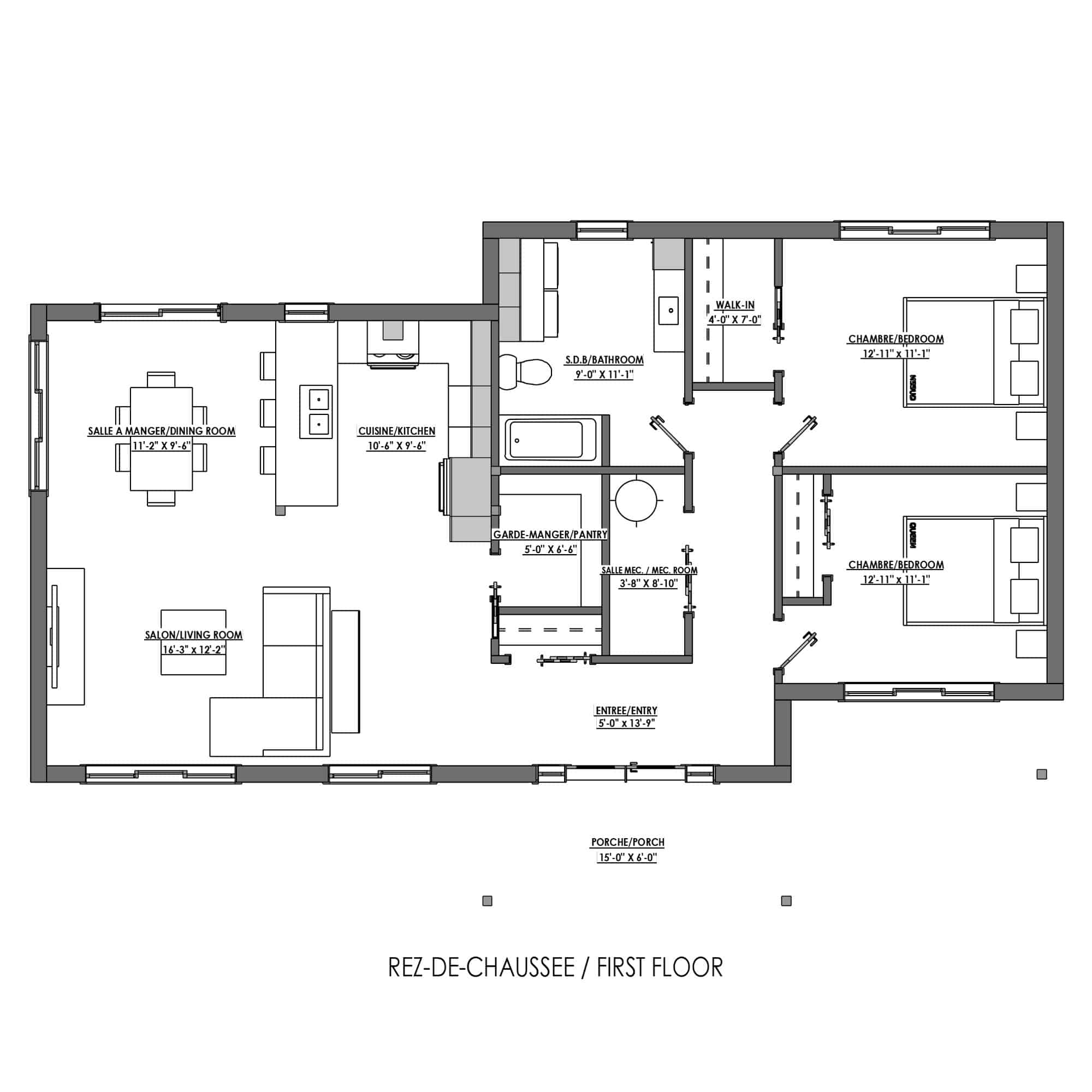 - Unique Design: Front porch 15’ x 6’.