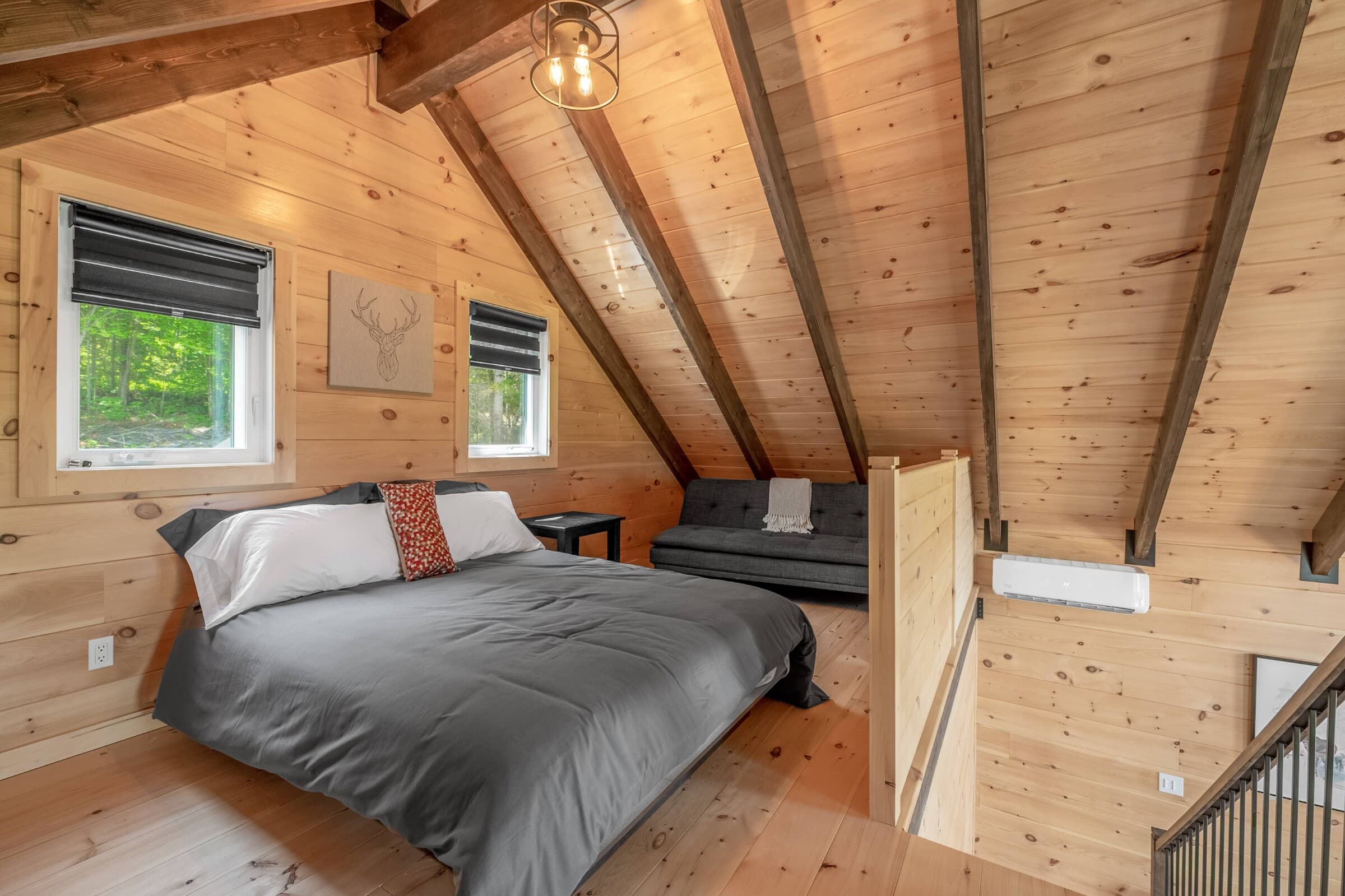 - Complete structure with exposed beams and tongue-and-groove pine ceiling.
