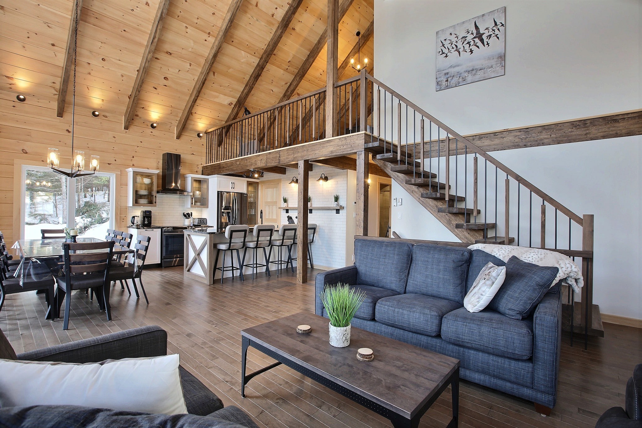 - Exposed beams, rafters, and ridge beams.