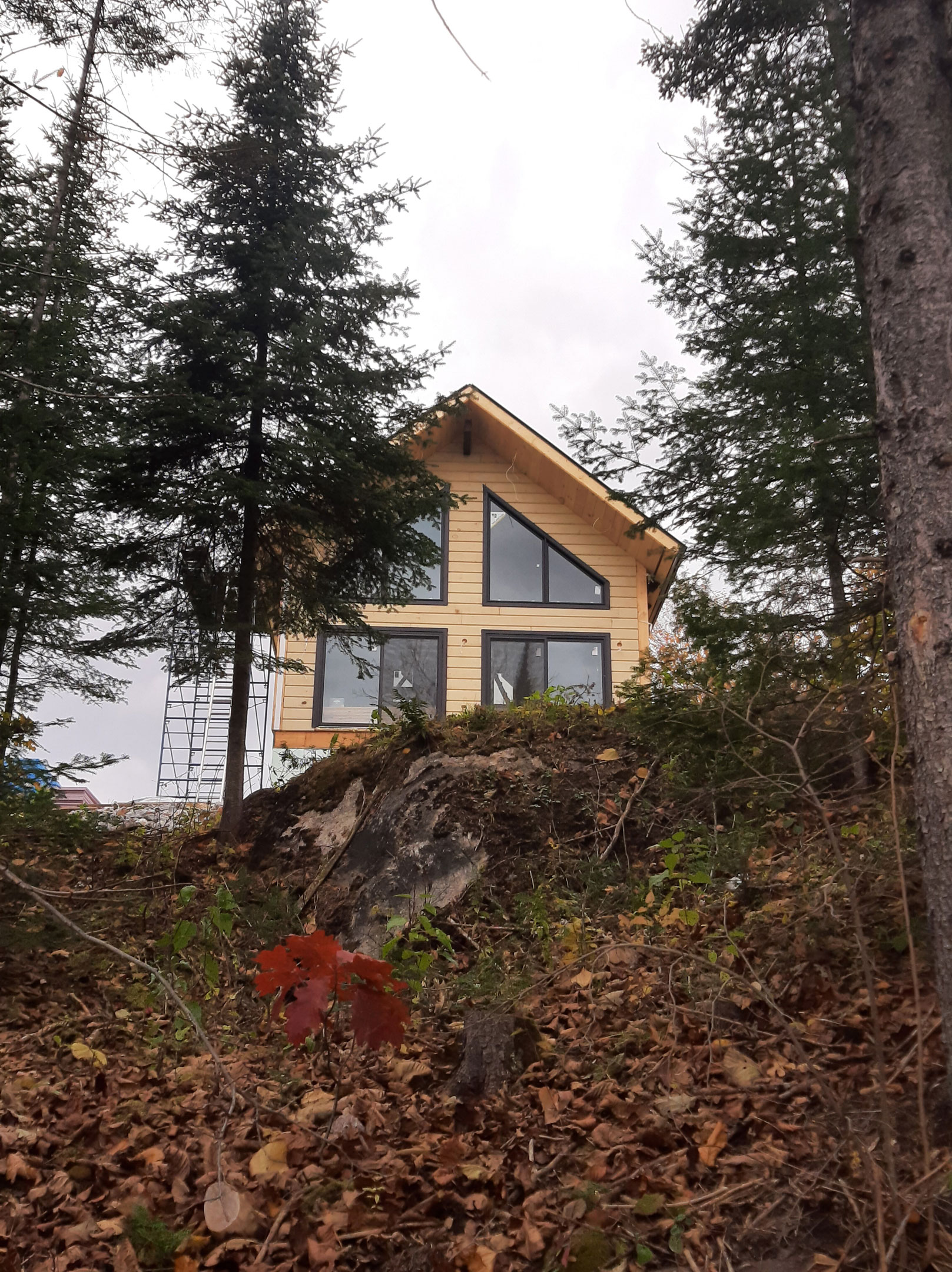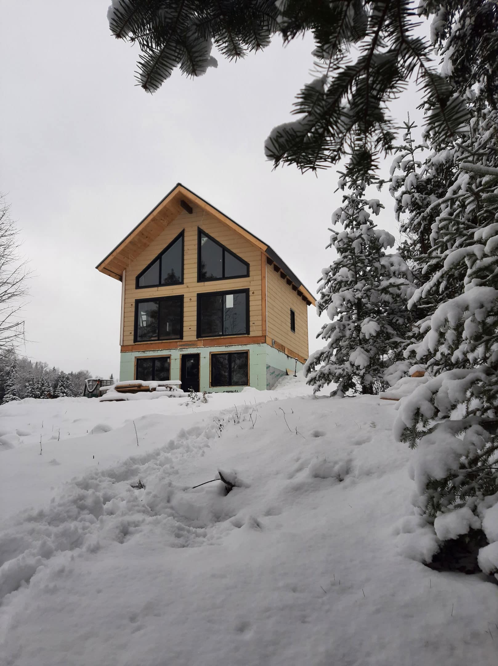 Size: 24′ x 28′ Insulation: R-24,5 Exterior finish: Flat Wall height: 12′ Timber frame: Yes