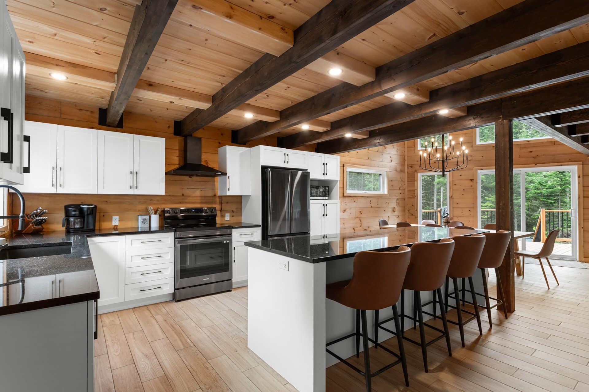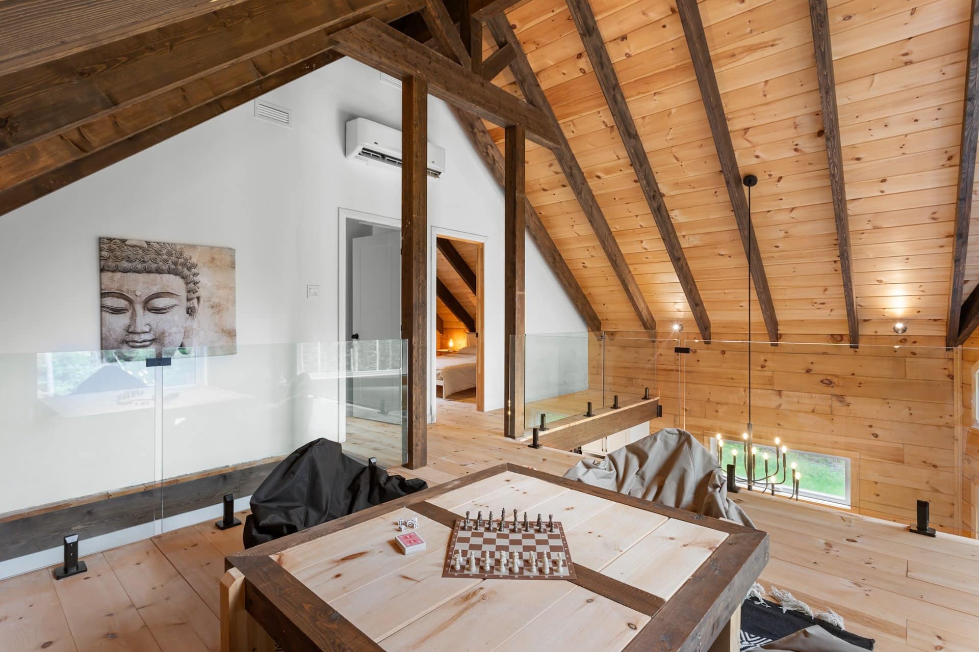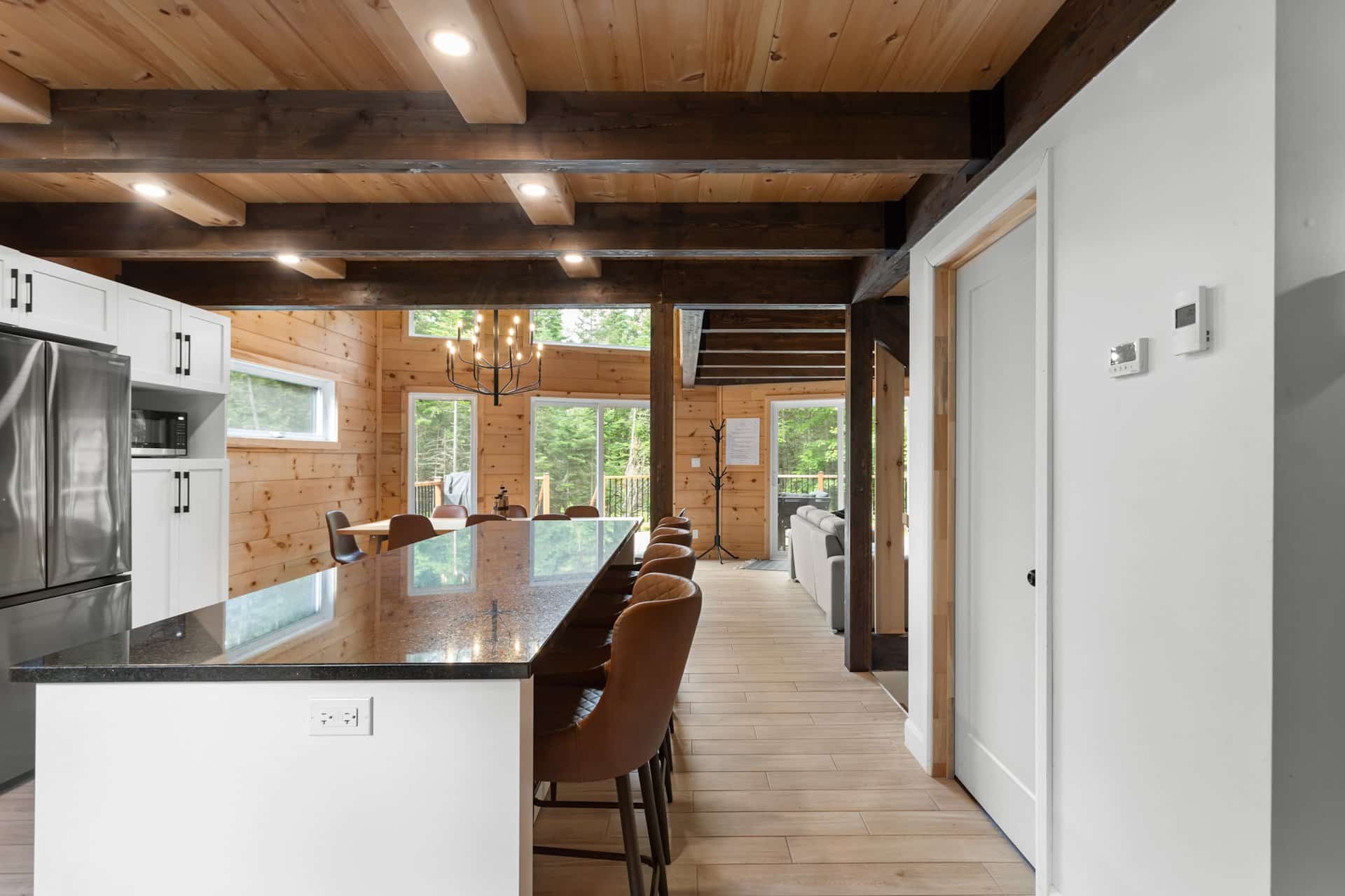 Size: 26′ x 31′ Insulation: R-24.5 Exterior finish: Plat Wall height: 11’4″ Timber frame: Oui