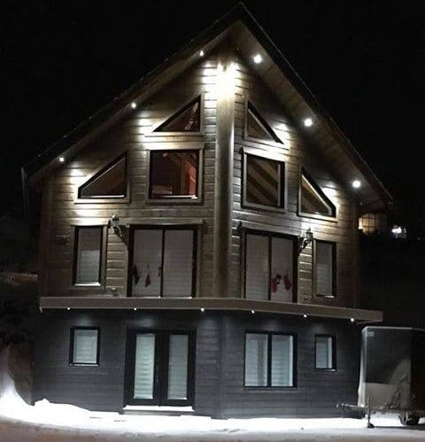 Size: 30′ x 35′ Insulation: R-30 Exterior finish: Engineered logs Wall height: 11’4” Timber frame: Yes