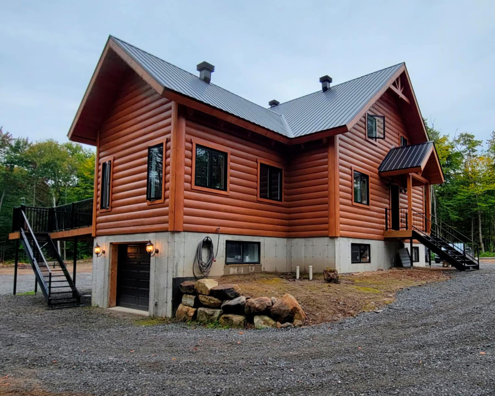 Votre bâtiment Boréal vous sera livré à l’emplacement de votre choix. Comme pour tous nos ensembles, les modèles de base peuvent être modifiés à votre image. Vous pourrez ainsi choisir le type de revêtement extérieur qui vous plait le plus soit; le charme du rustique demi-rond ou le chic profil plat.