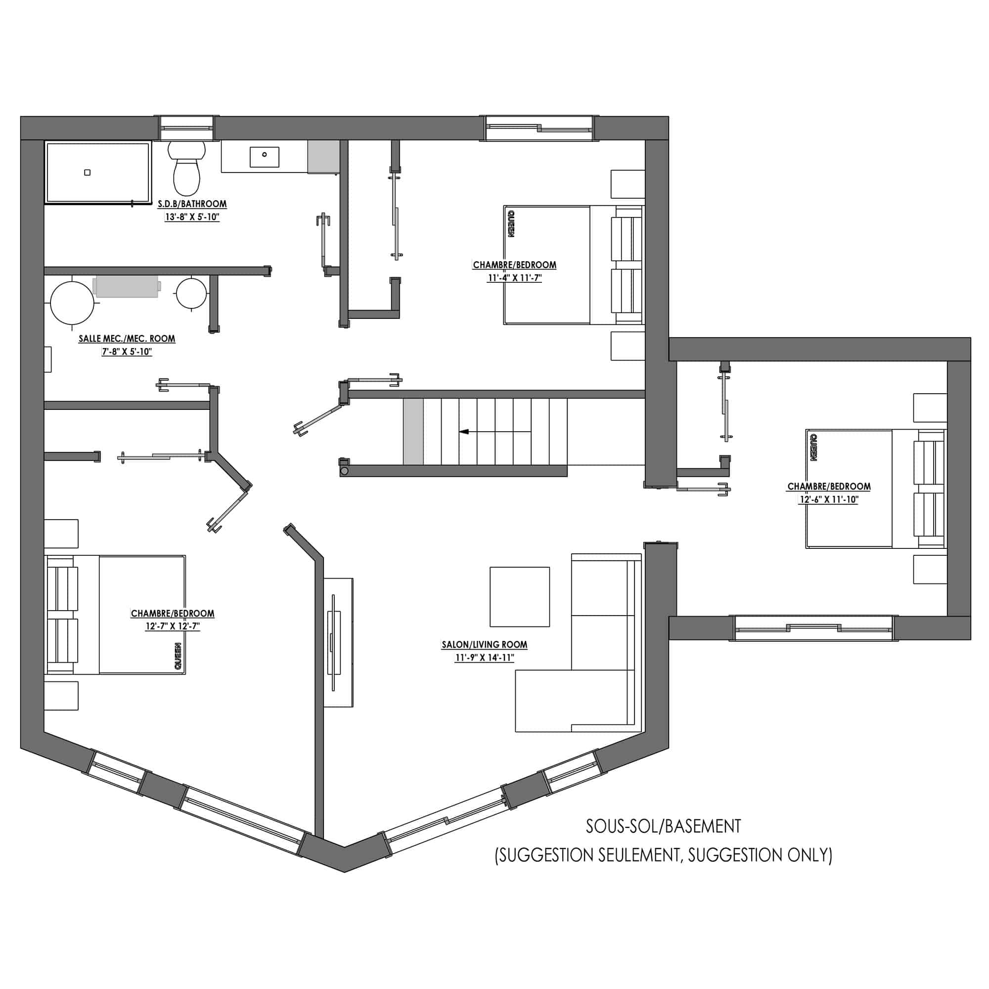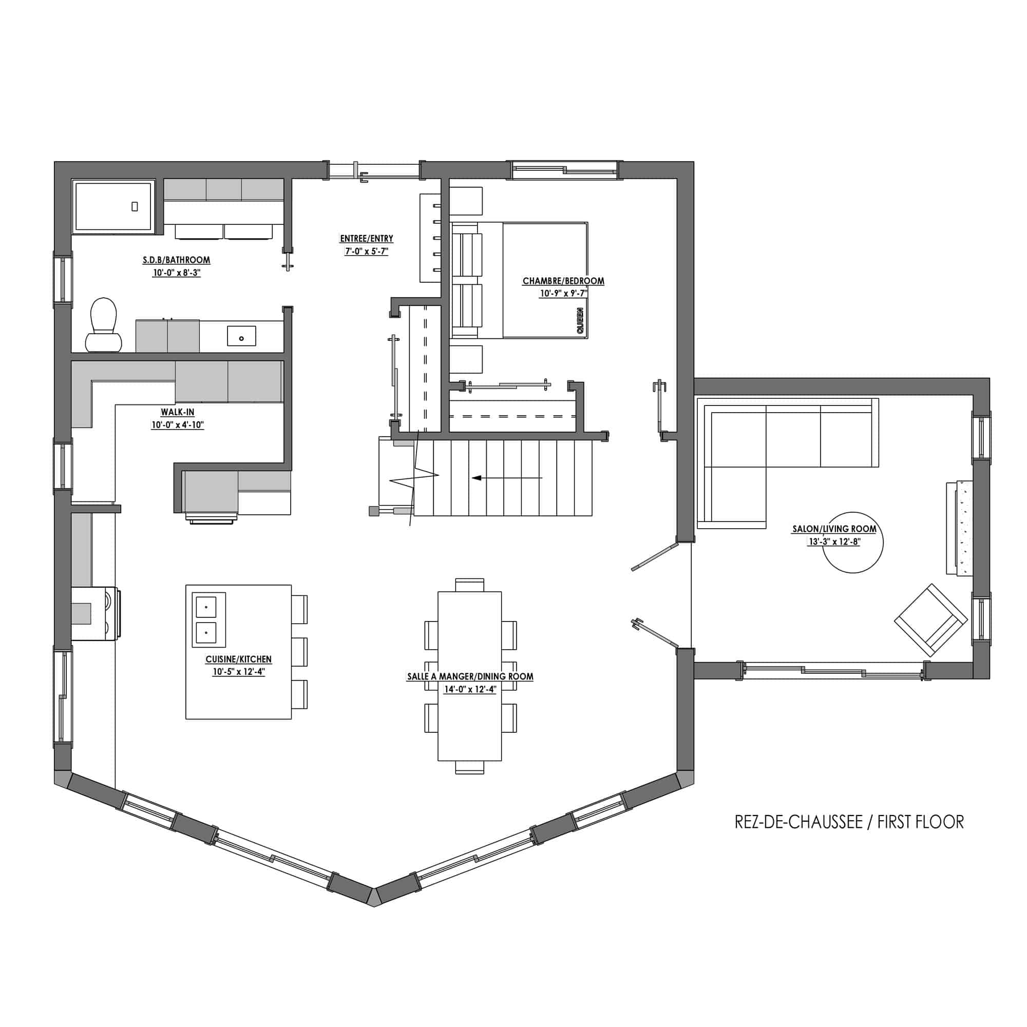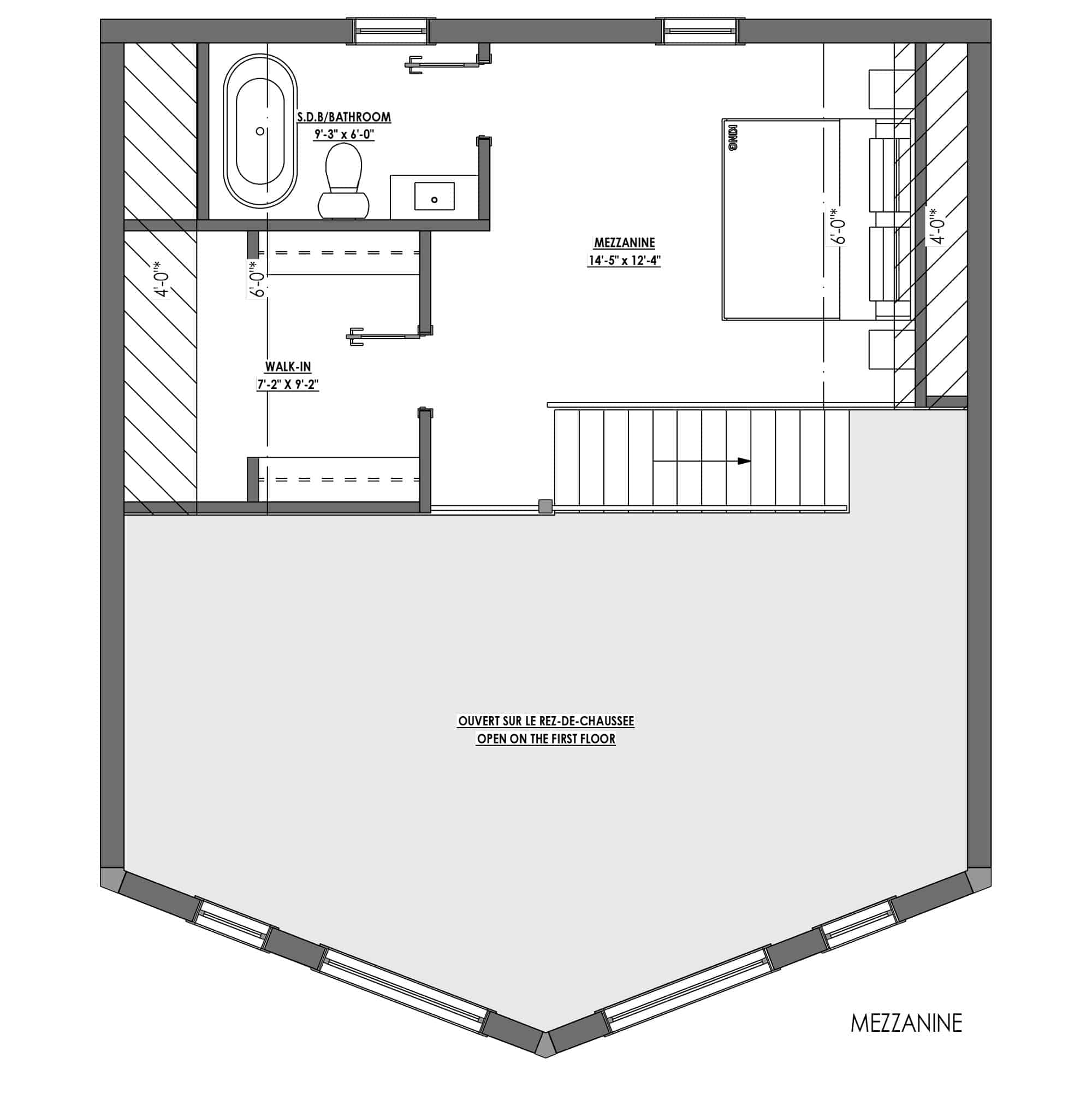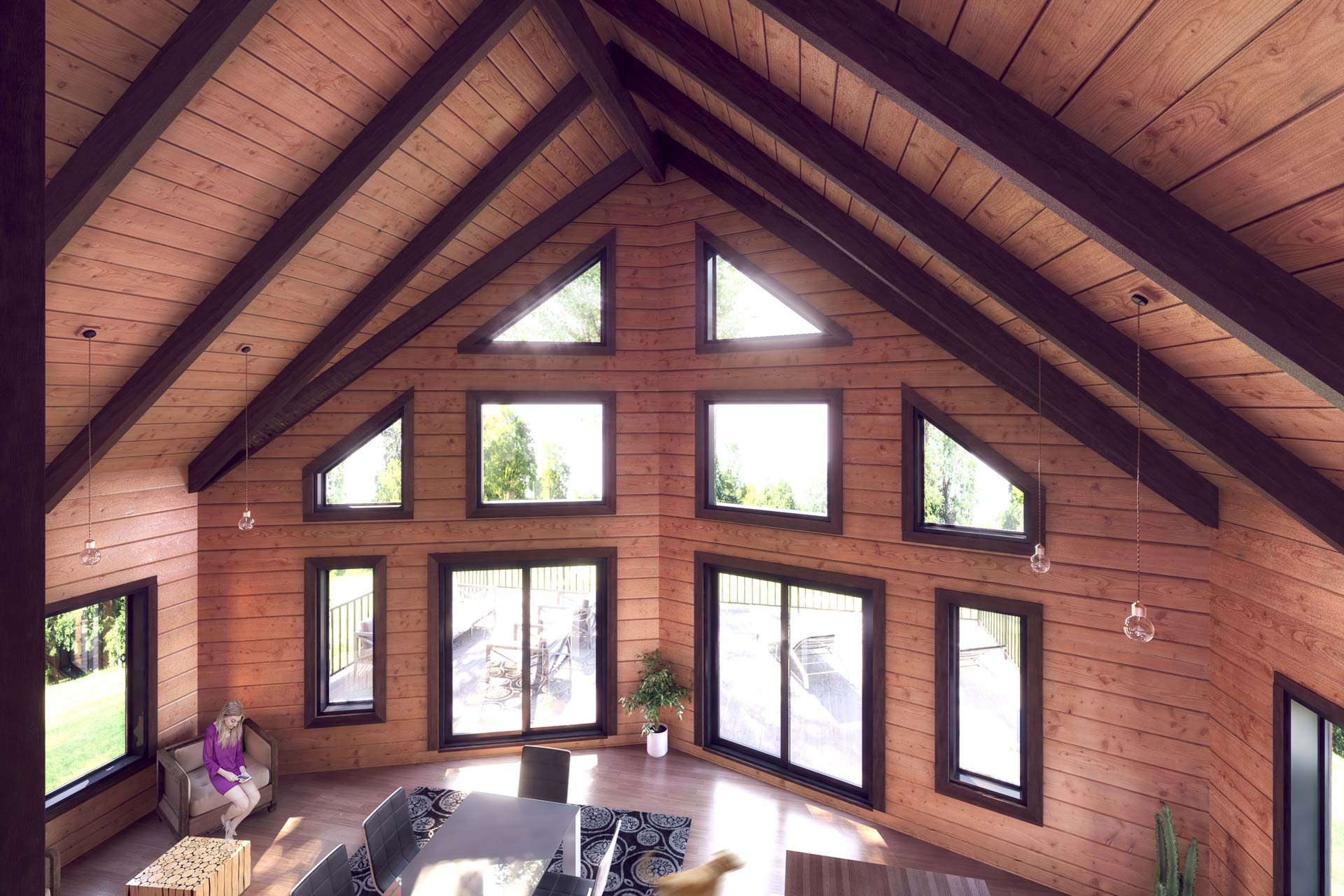 - Murs : Fini extérieur plat ou demi-rond, Hauteur de mur 10’ 7’’ pieds, Isolation R-30.