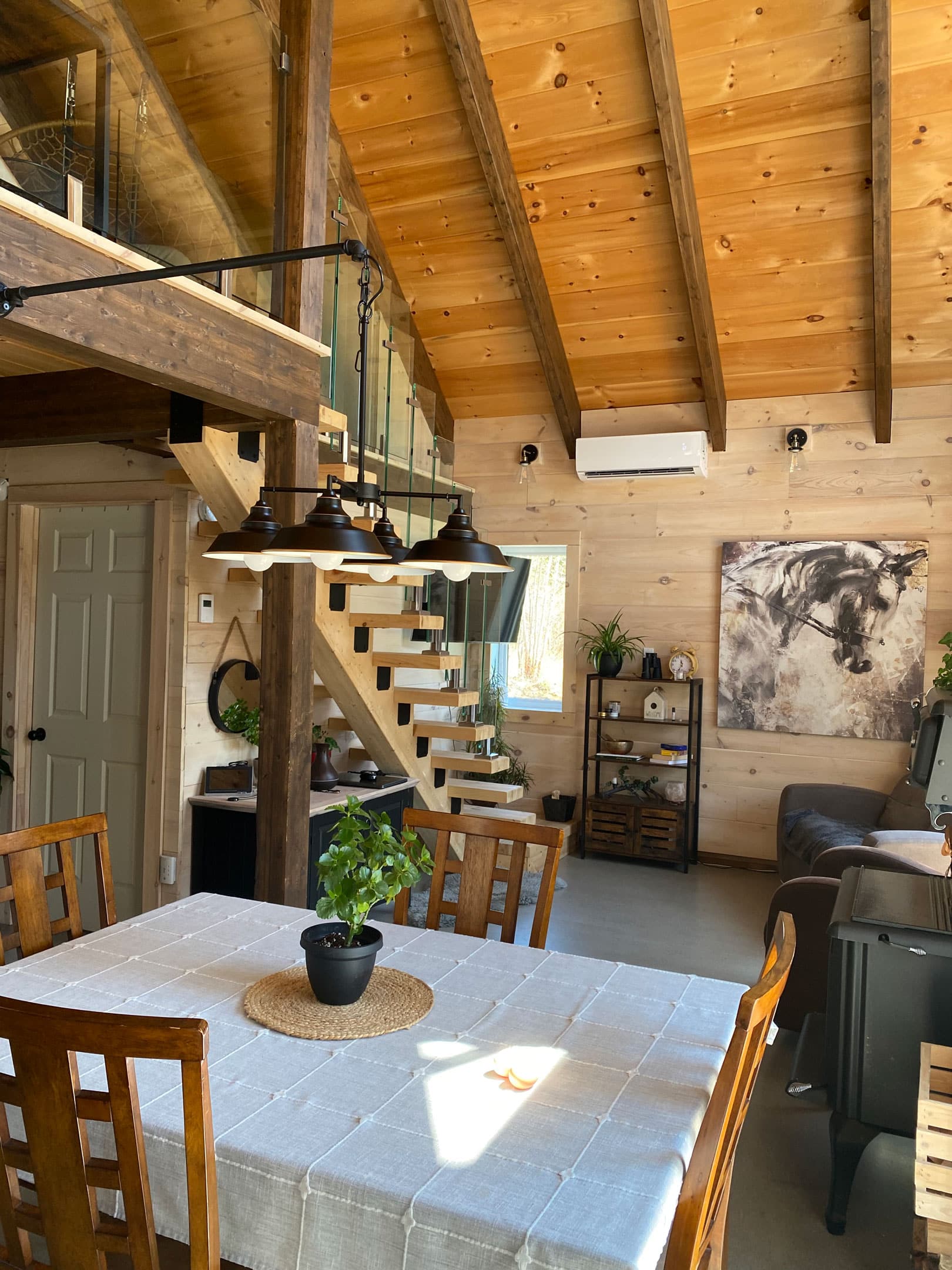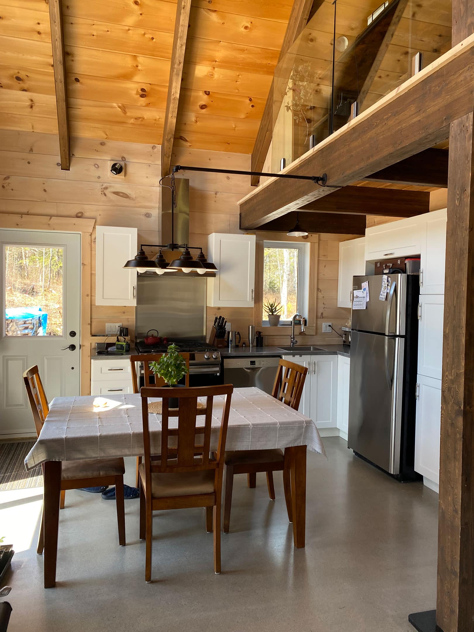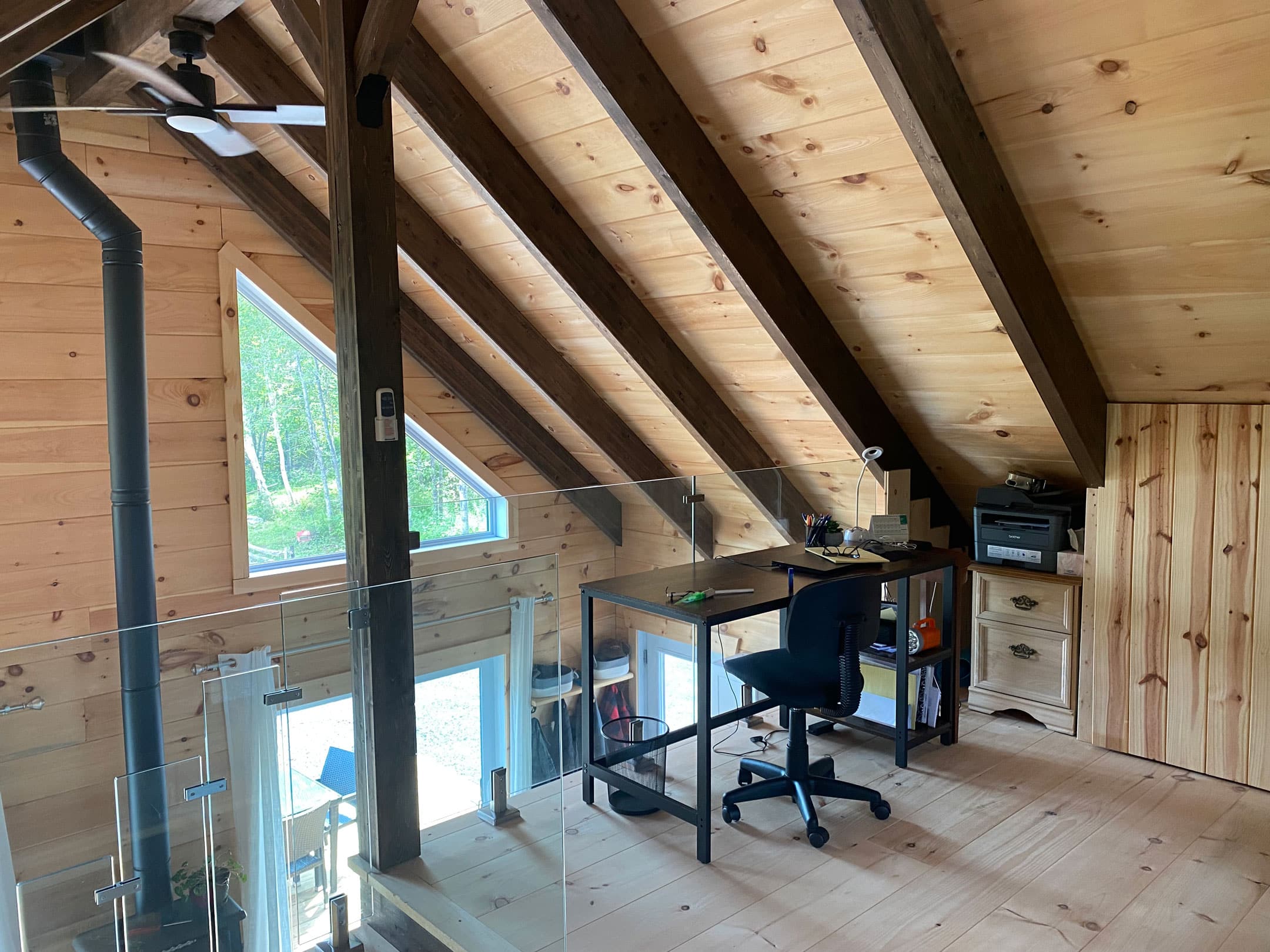 Grandeur: 24′ x 24′ Isolation: R-30 Fini extérieur: Rond Hauteur des murs: 10′ Poutre apparentes: Oui