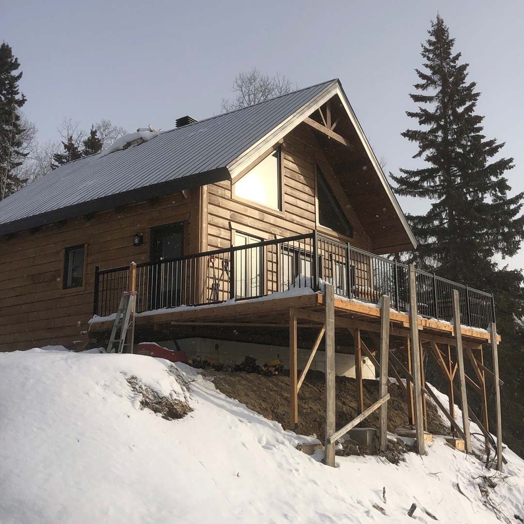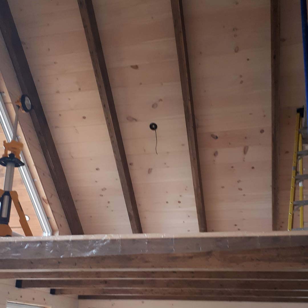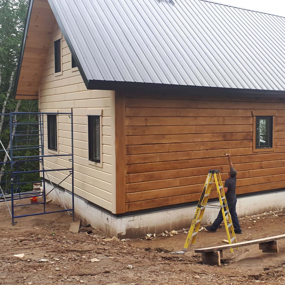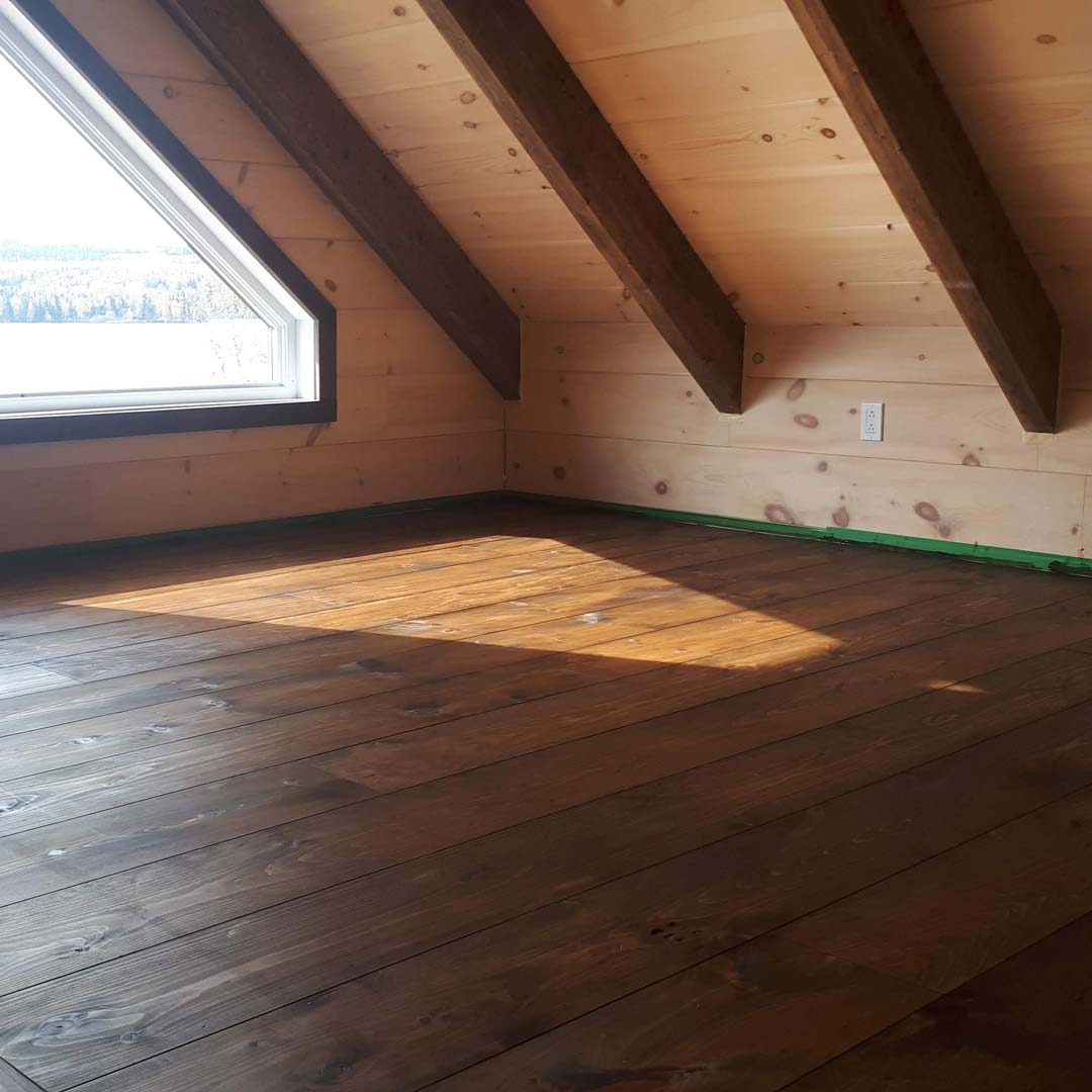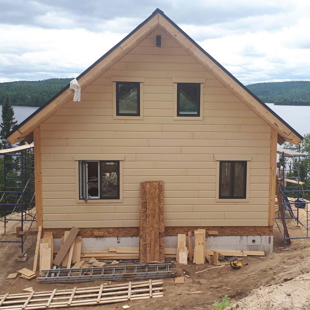 Grandeur: 24′ x 28′ Isolation: R-24,5 Fini extérieur: Plat Hauteur des murs: 9’10′′ Poutre apparentes: Oui