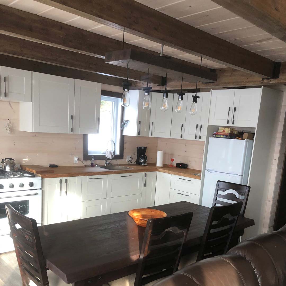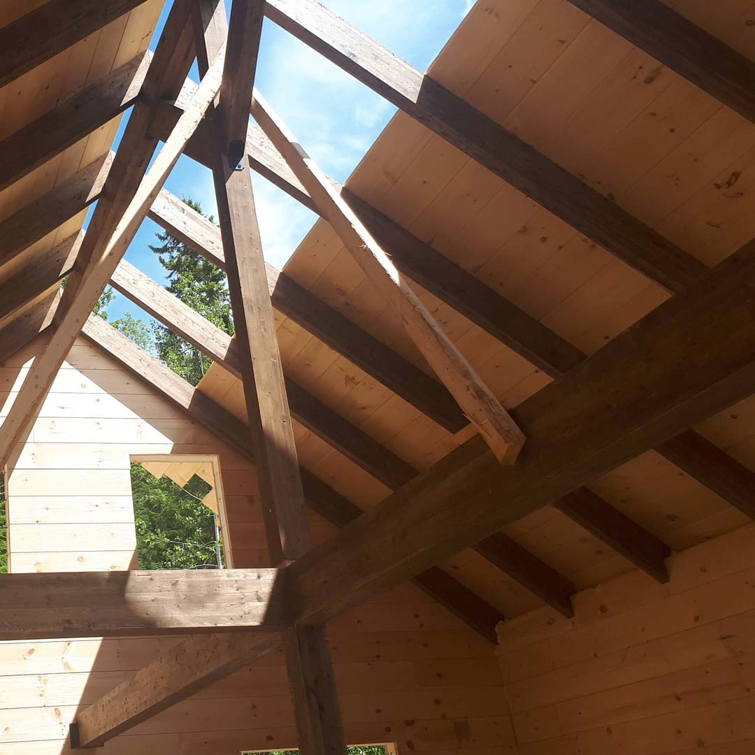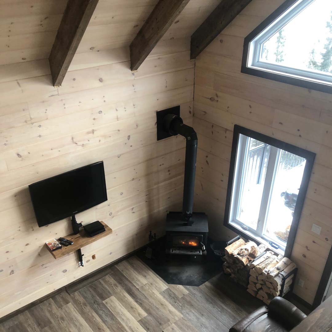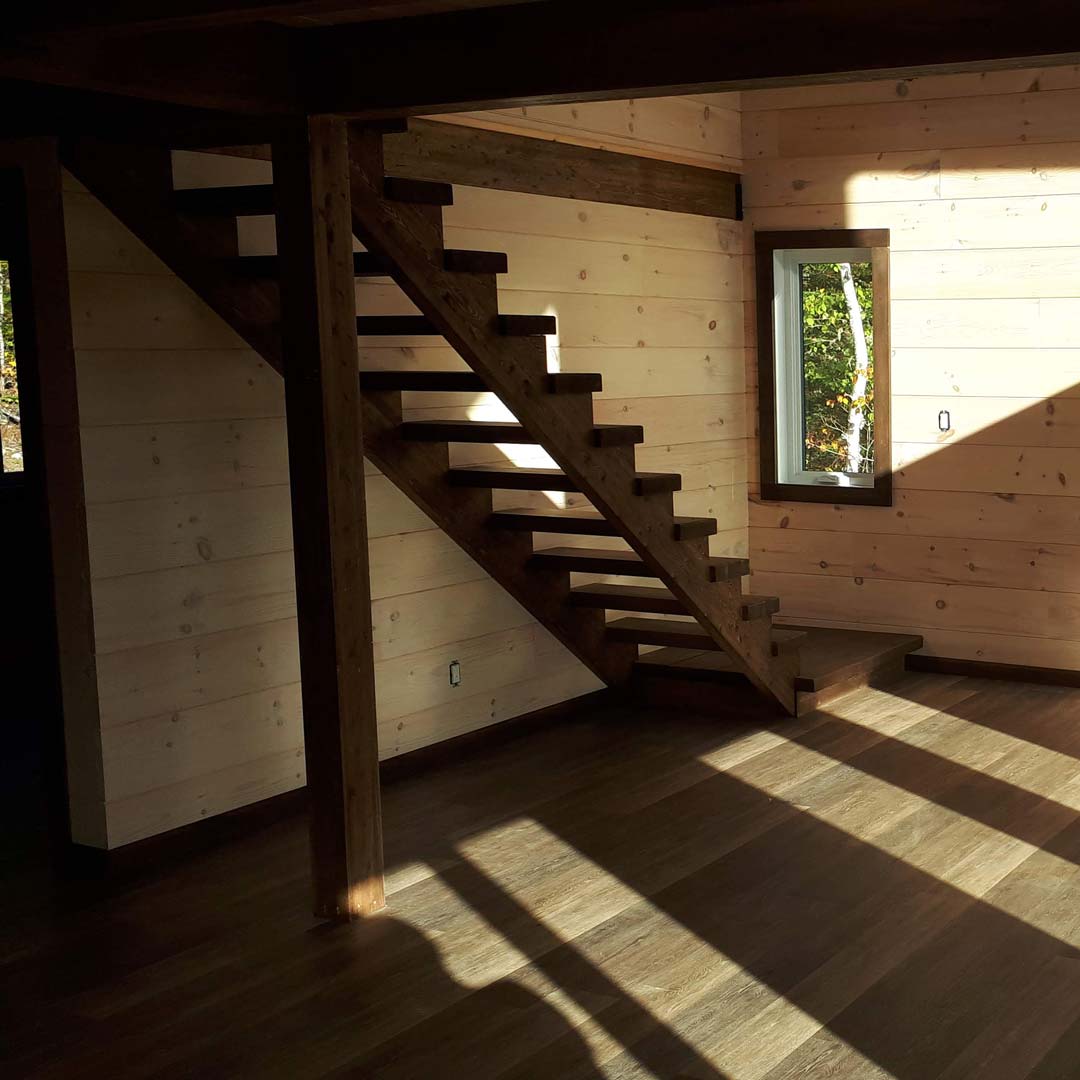 Grandeur: 24′ x 28′ Isolation: R-24,5 Fini extérieur: Plat Hauteur des murs: 9’10′′ Poutre apparentes: Oui