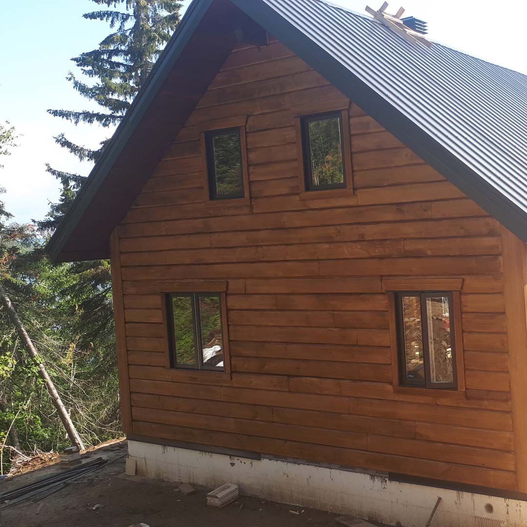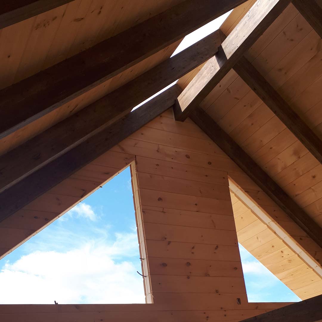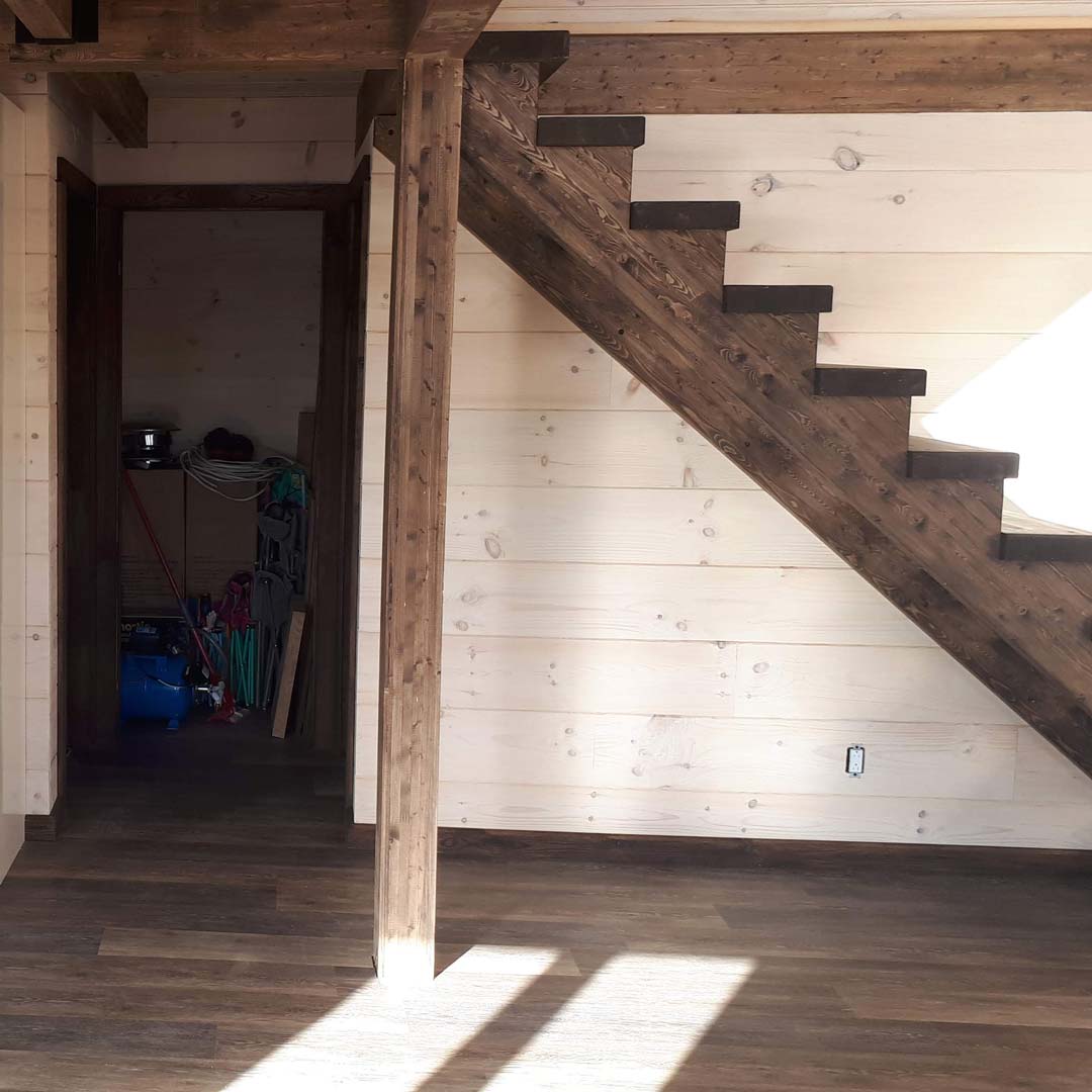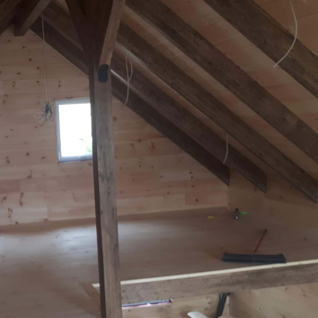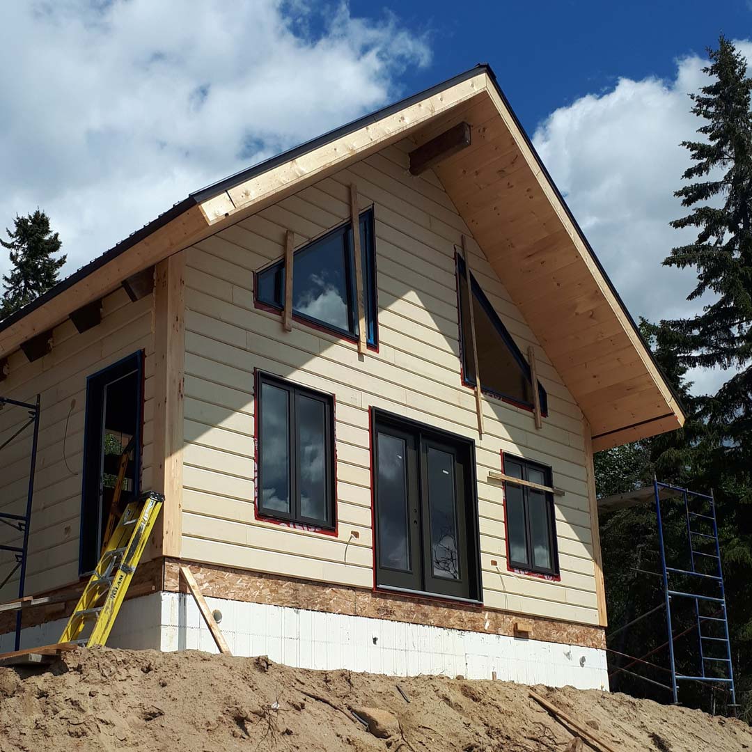 Grandeur: 24′ x 28′ Isolation: R-24,5 Fini extérieur: Plat Hauteur des murs: 9’10′′ Poutre apparentes: Oui