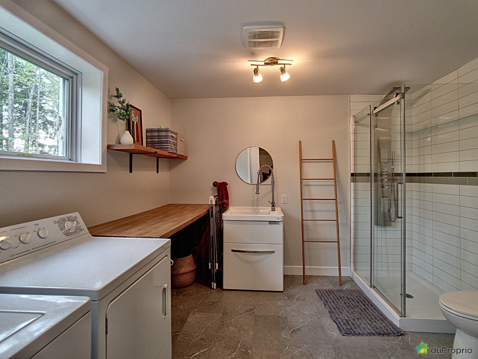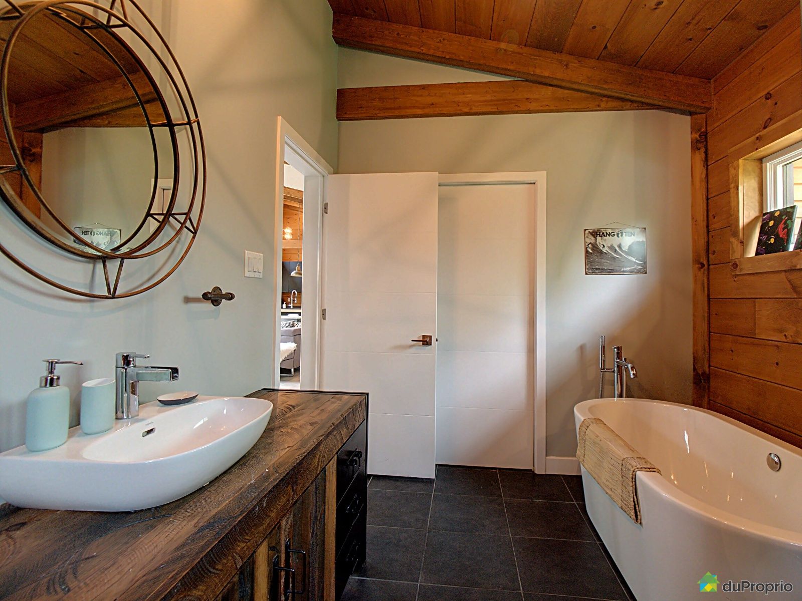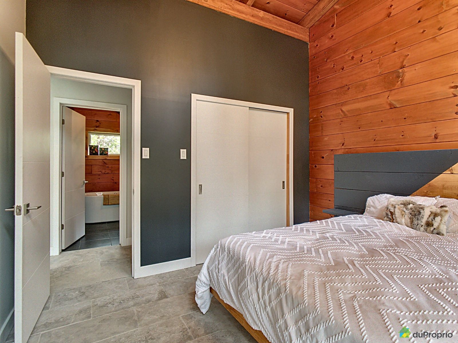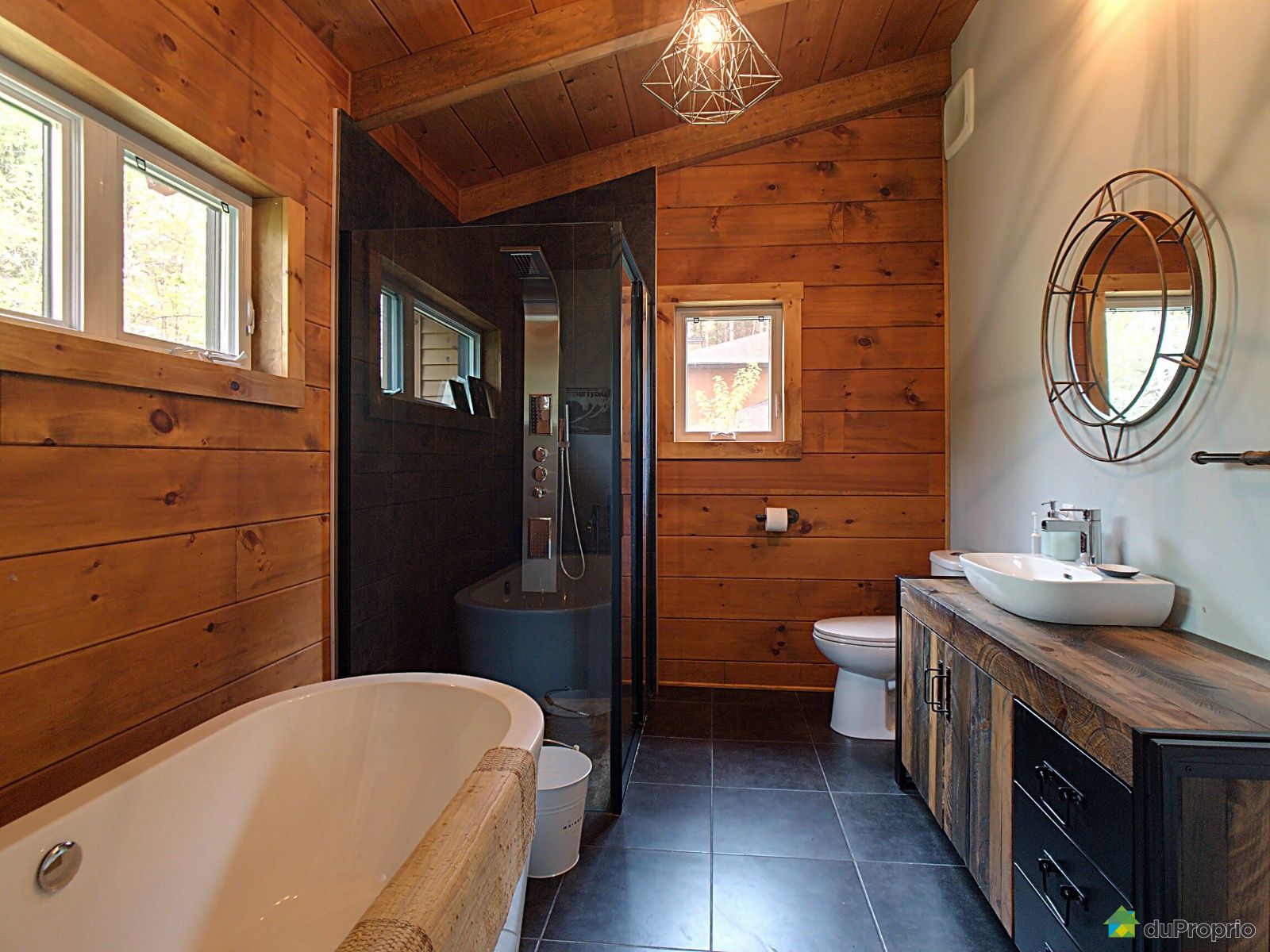 Maison écoénergétique à conception unique; charpente pièce-sur-pièce, utilisant la technologie thermalog (isolo-rondin, produits-boreal-strip.dev2.wshost.ca). Mur isolé R-30 et toiture R-45, ossature avec poutre apparente en bois massif, plafond cathédrale de 20 pieds, aire ouverte spacieuse, grande fenestration dirigée vers la cour arrière. Style intérieur d’inspiration scandinave.