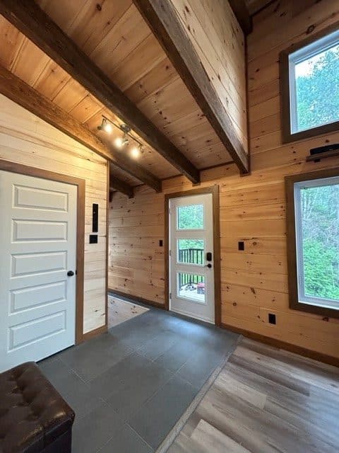 Grandeur: 28′ x 30′ Isolation: R-24.5 Fini extérieur: Plat Hauteur des murs: 10′ Poutre apparentes: Oui