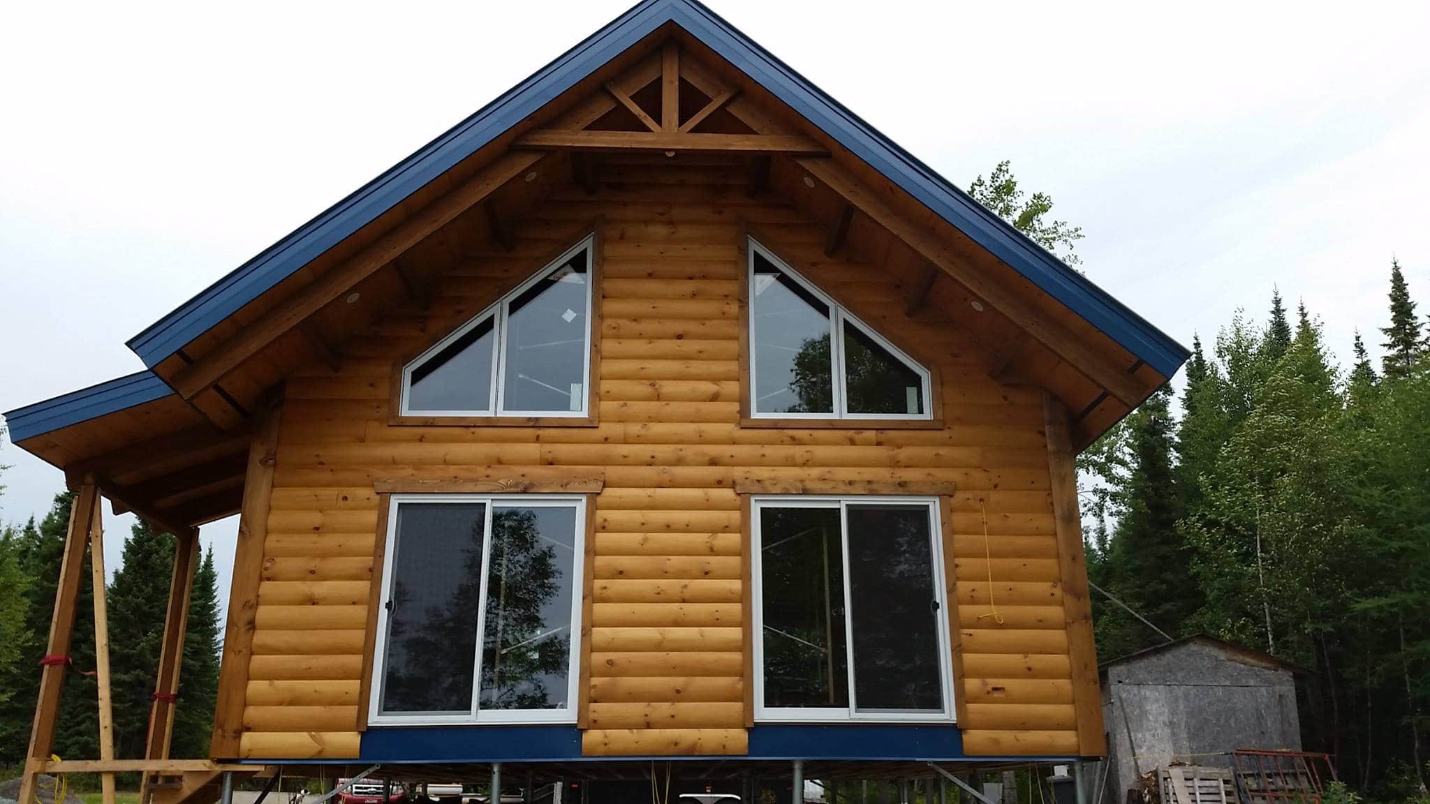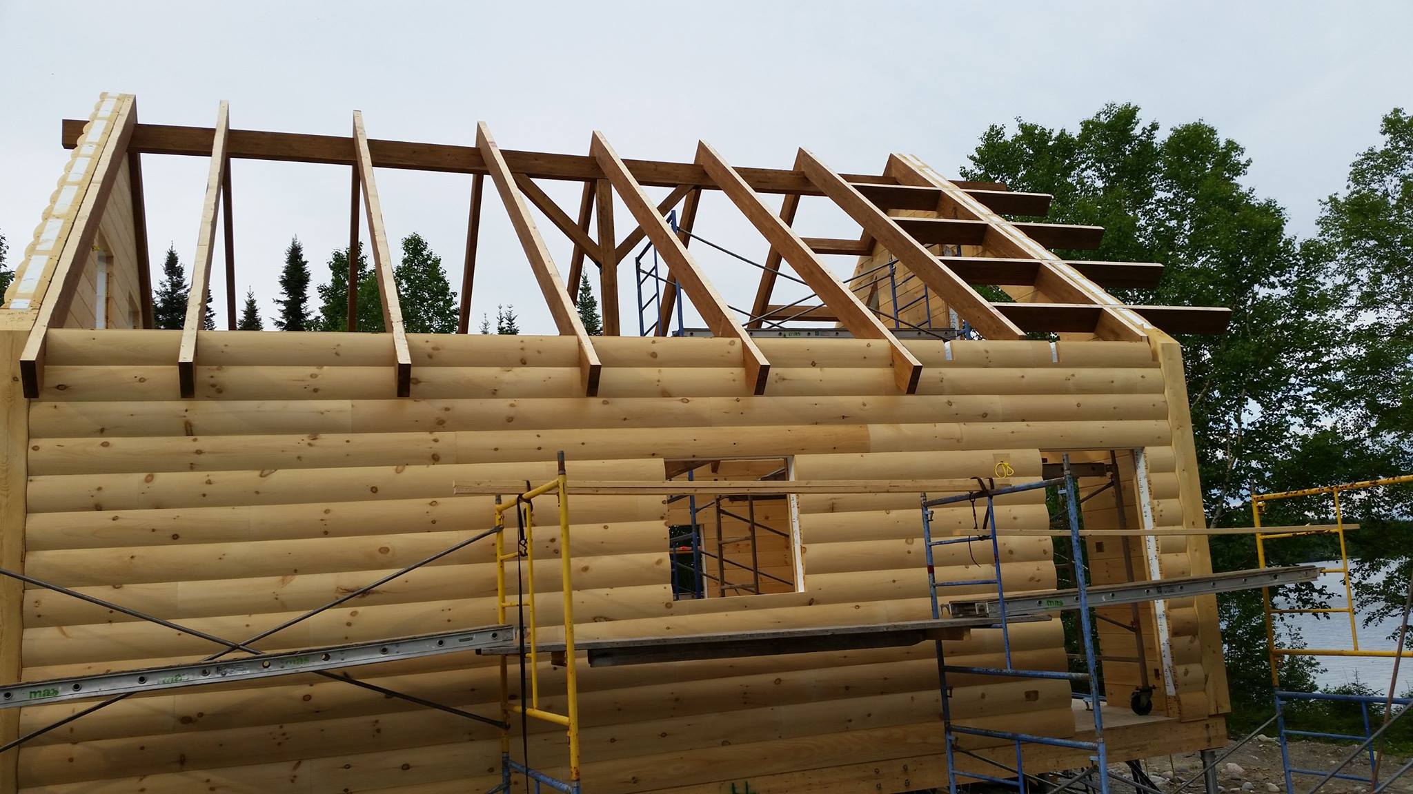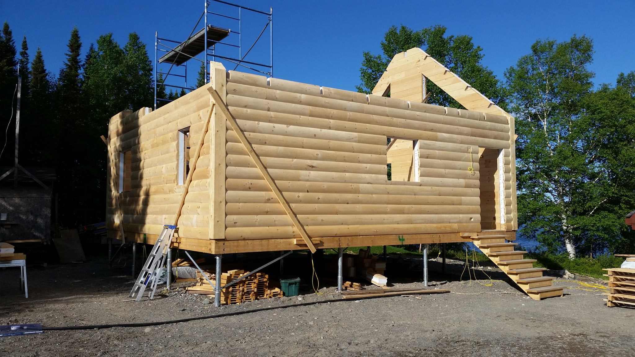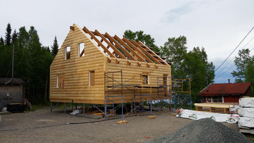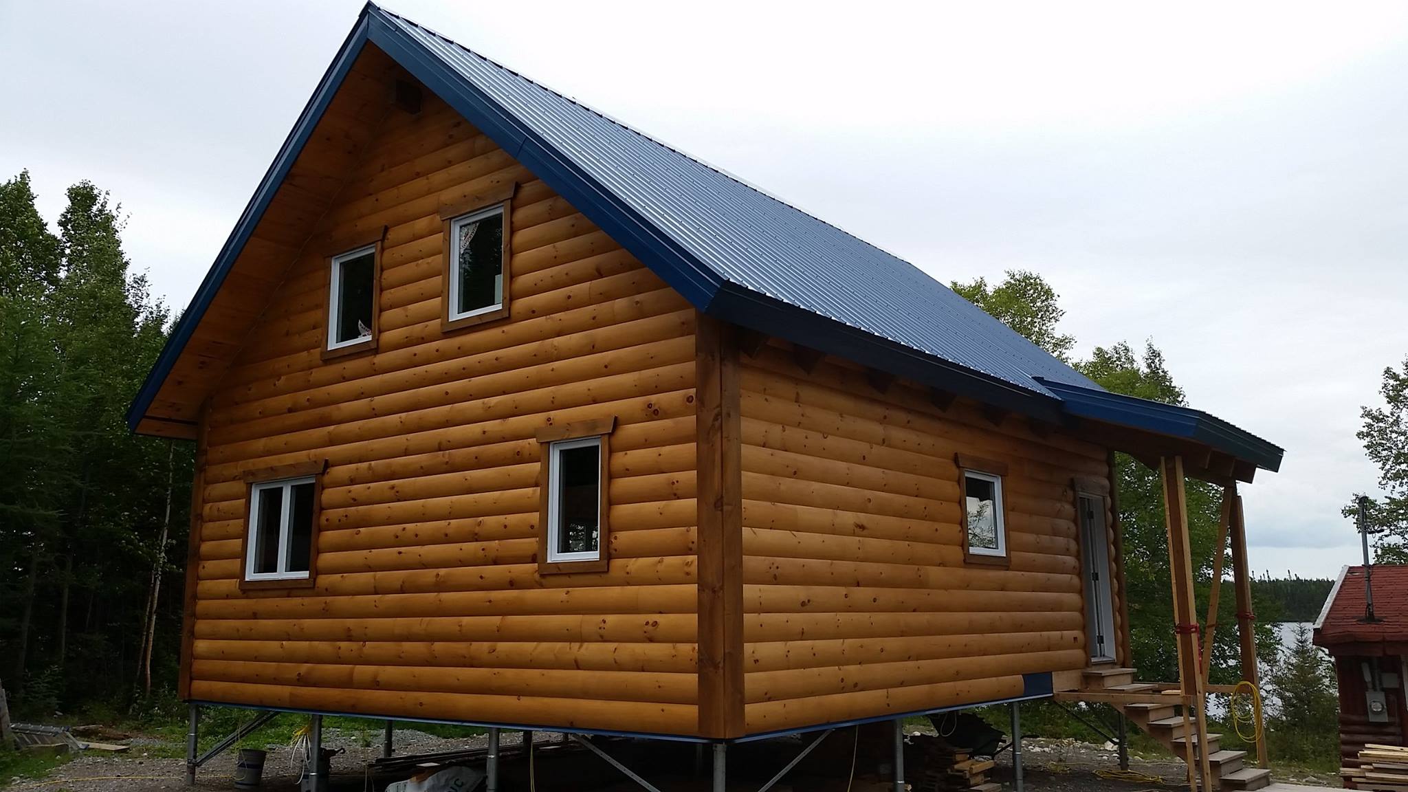 Grandeur: 25′ x 28′ Fini extérieur: Rond Hauteur des murs: 10′ Poutre apparentes: Oui