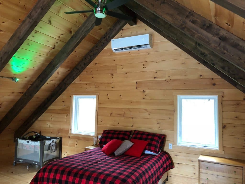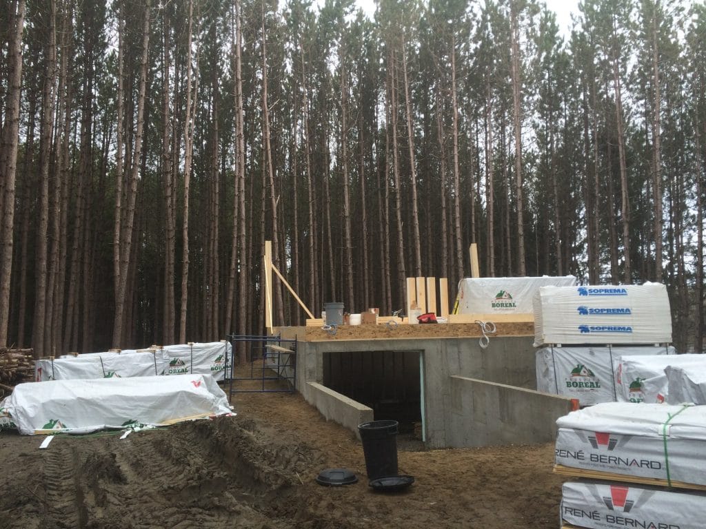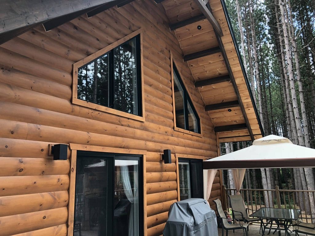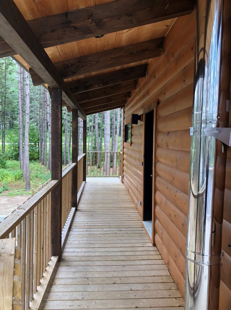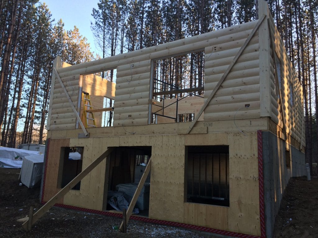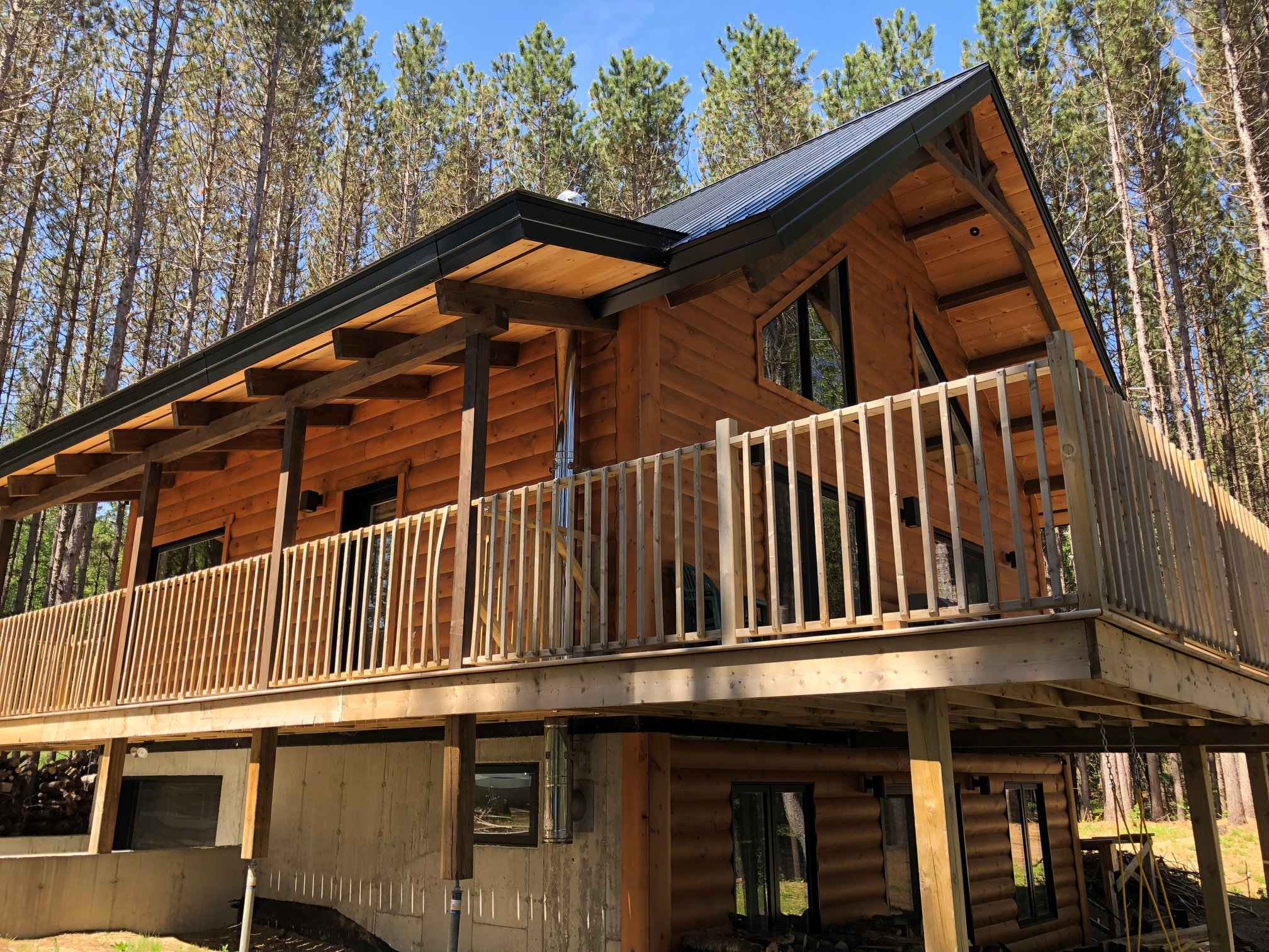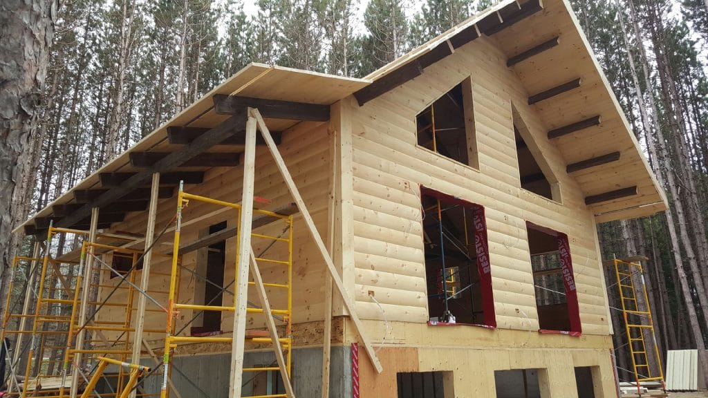 Grandeur: 28′ x 28′ Fini extérieur: Rond Hauteur des murs: 10′ Poutre apparentes: Oui Extra: Mezzanine 1/2
