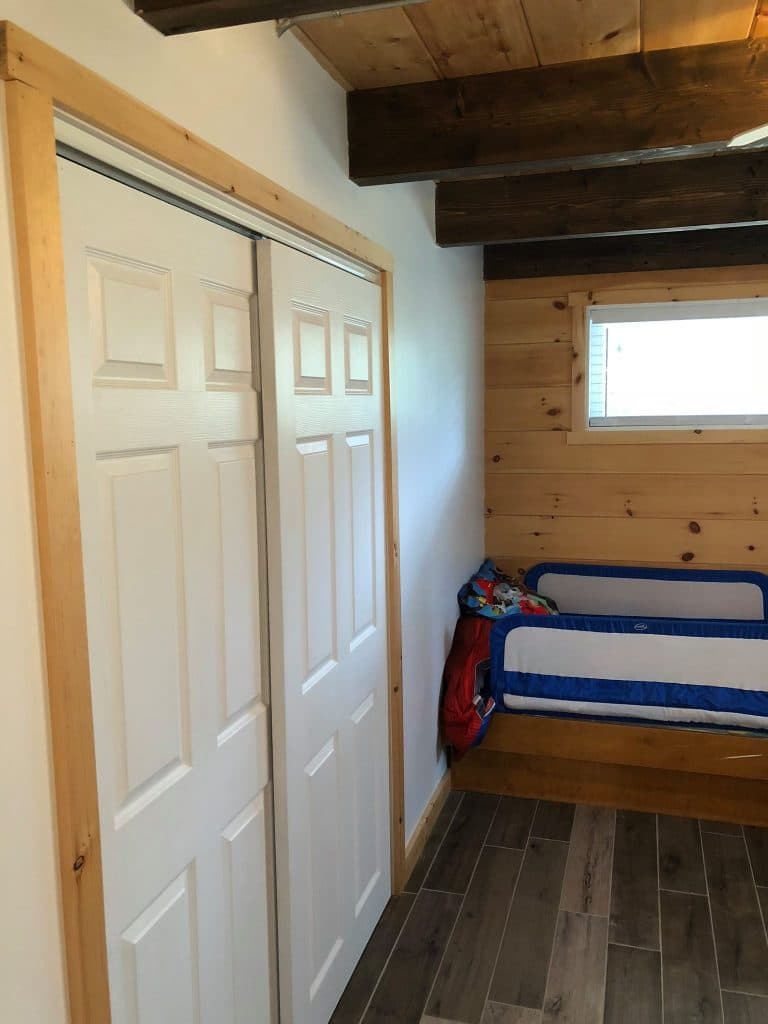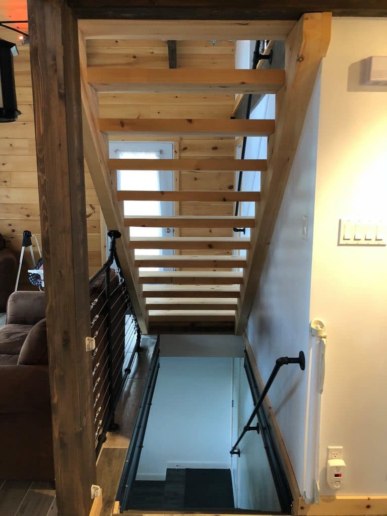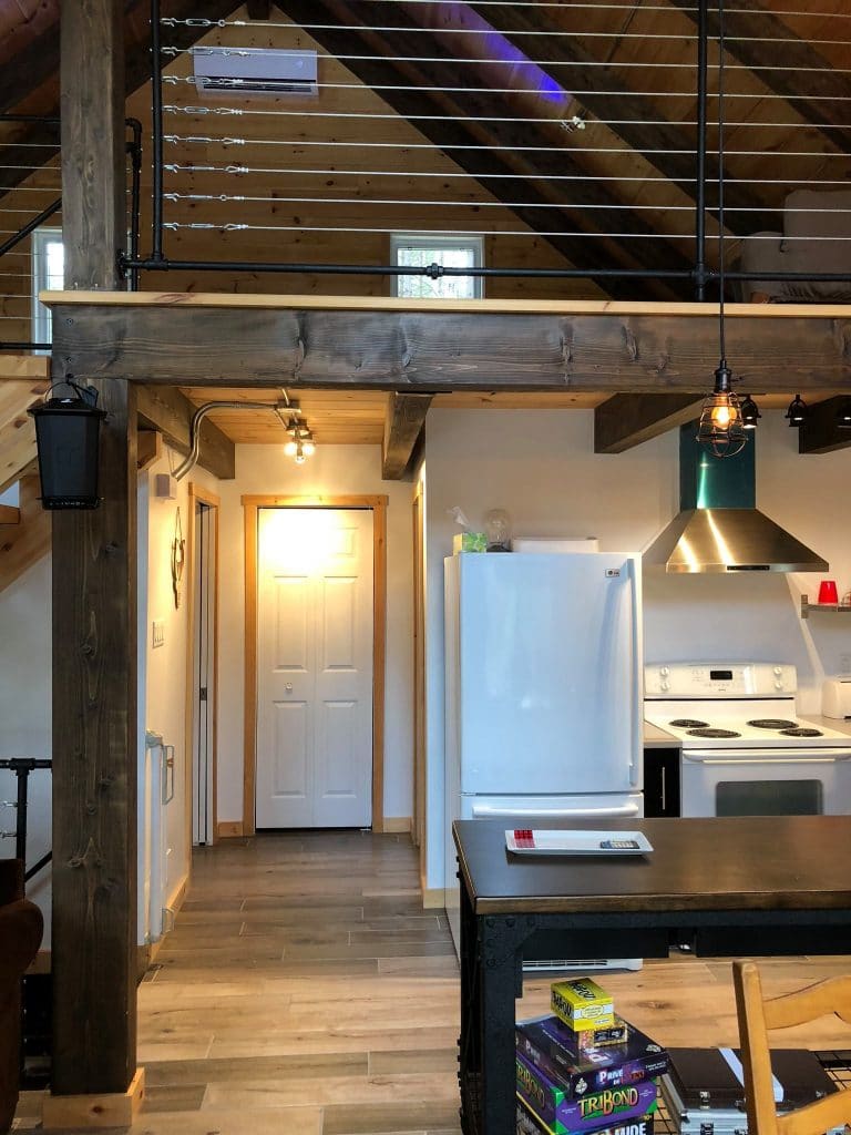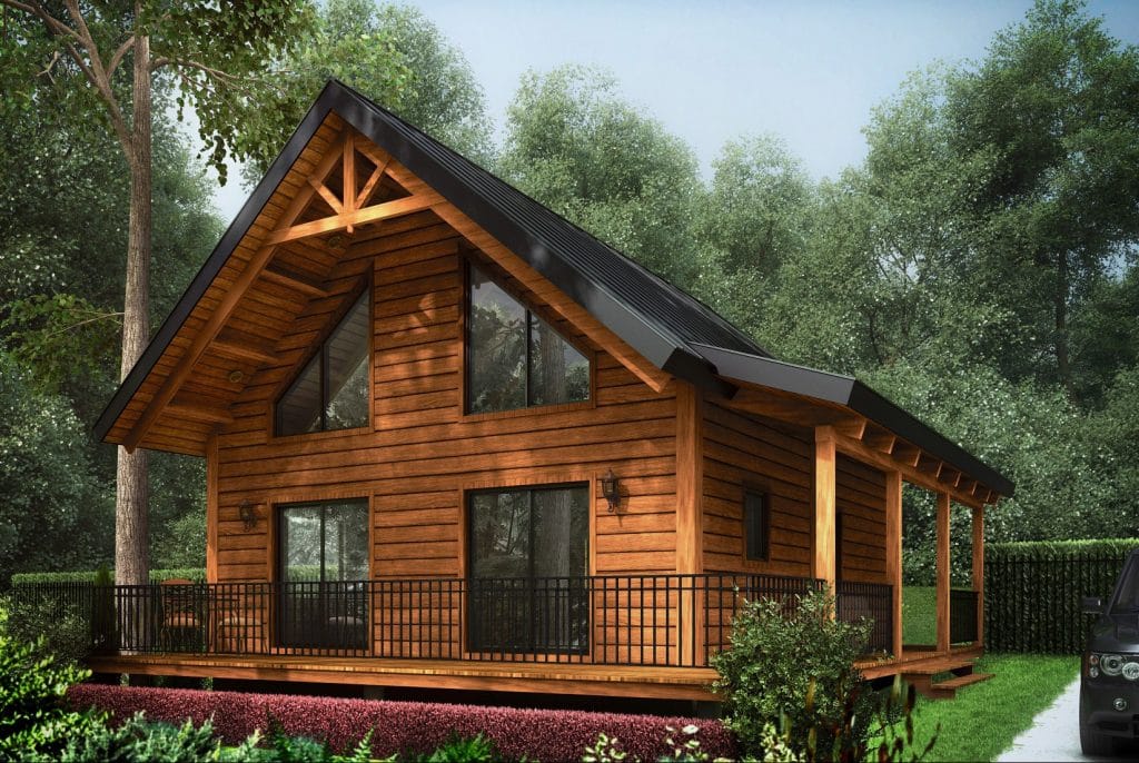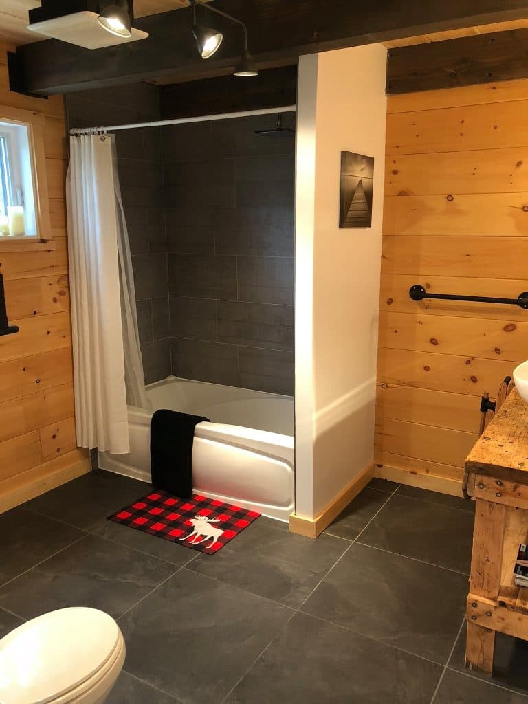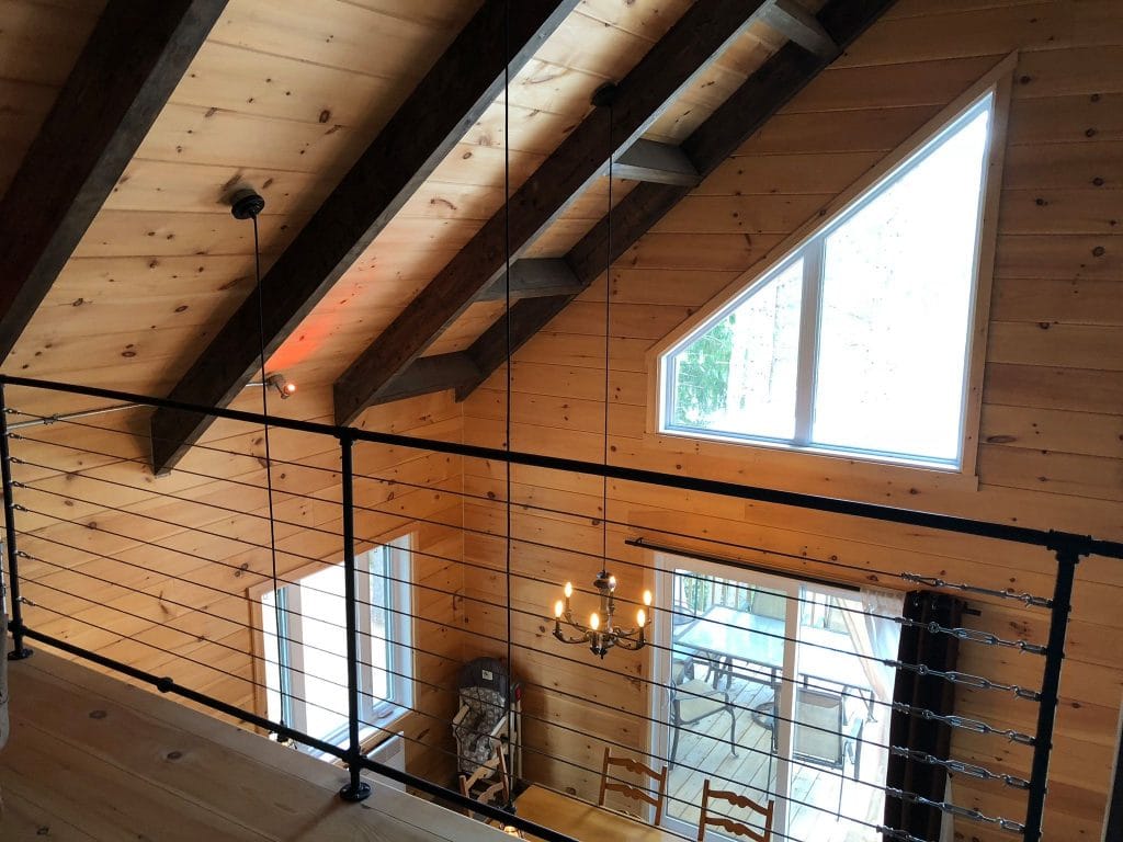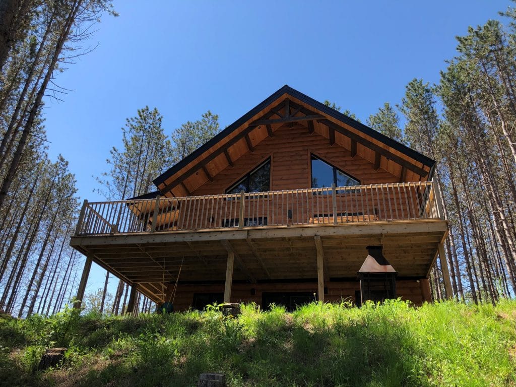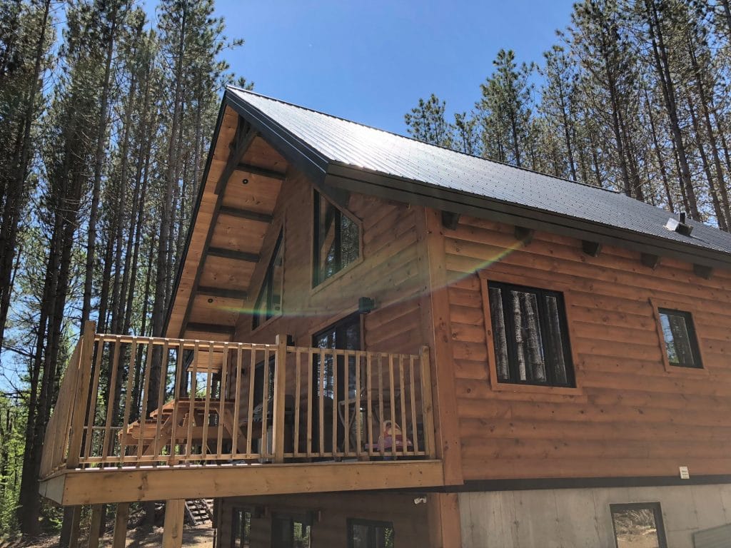 Grandeur: 28′ x 28′ Fini extérieur: Rond Hauteur des murs: 10′ Poutre apparentes: Oui Extra: Mezzanine 1/2