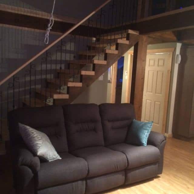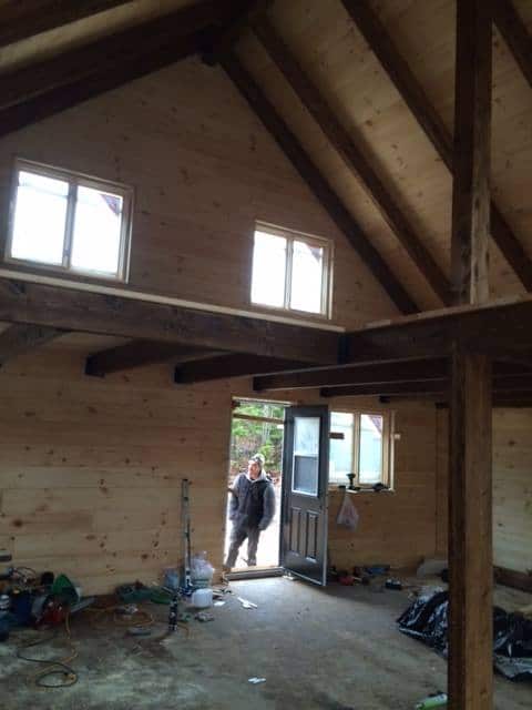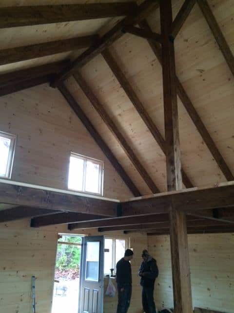 Grandeur: 28′ x 28′ Fini extérieur: Plat Hauteur des murs: 10′ Poutre apparentes: Oui