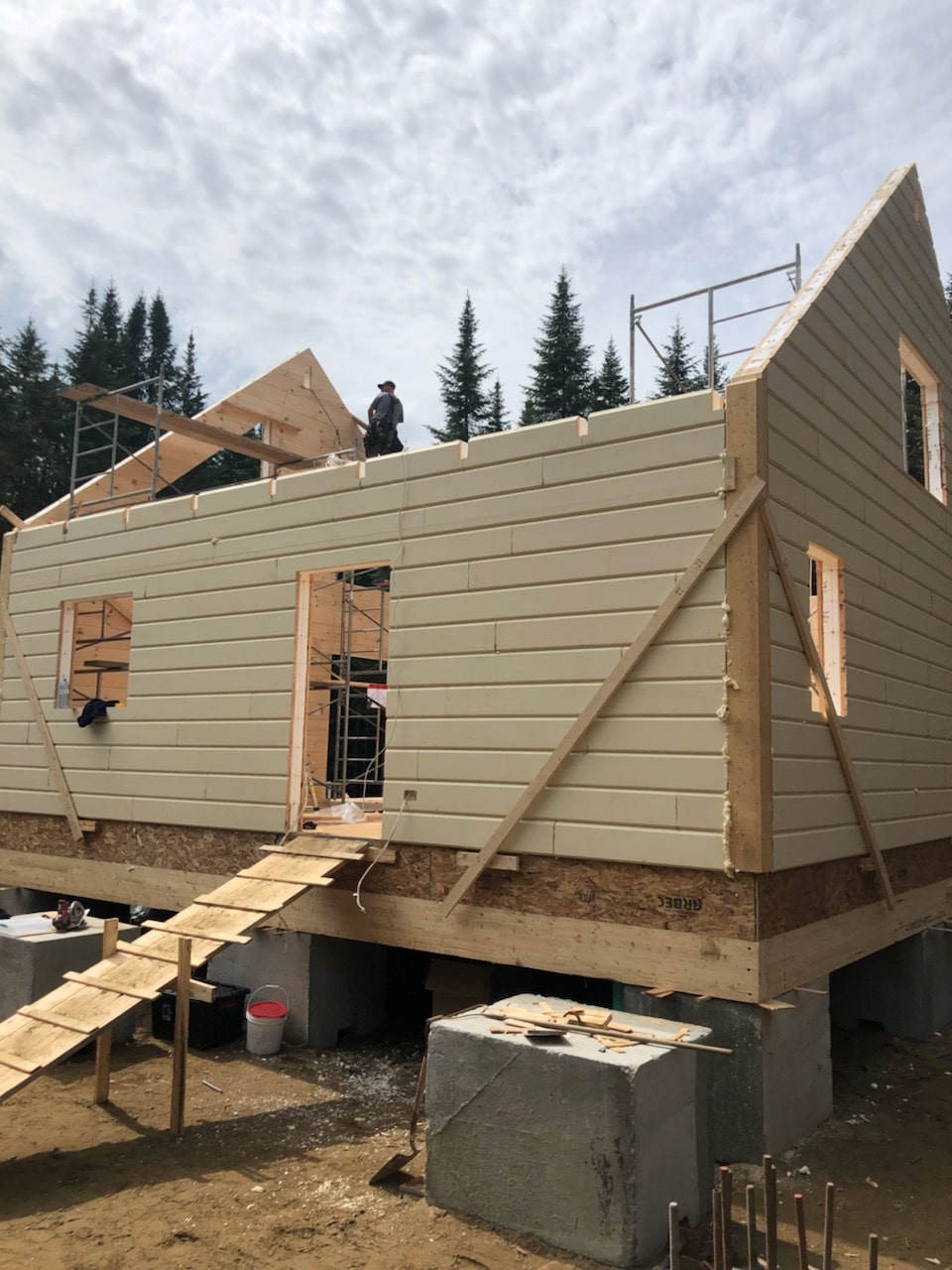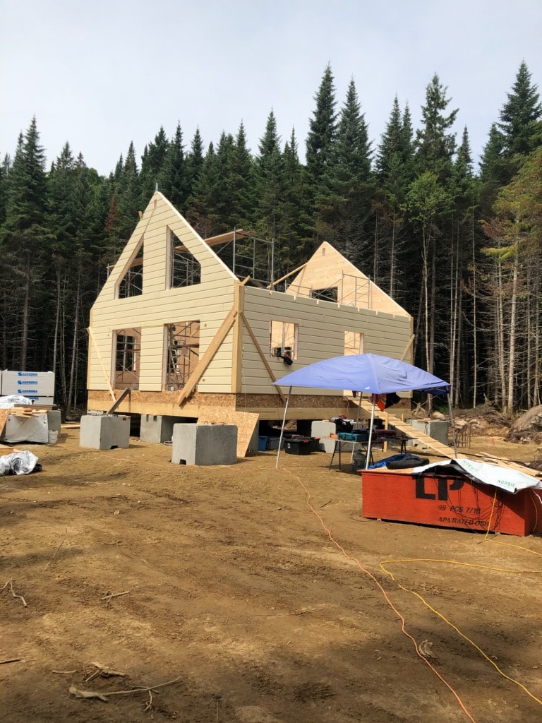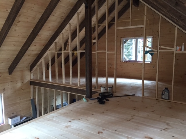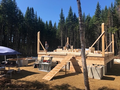 Grandeur: 28′ x 28′ Isolation: R-24,5 Fini extérieur: Plat Hauteur des murs: 9’10′′ Poutre apparentes: Oui