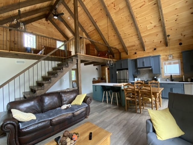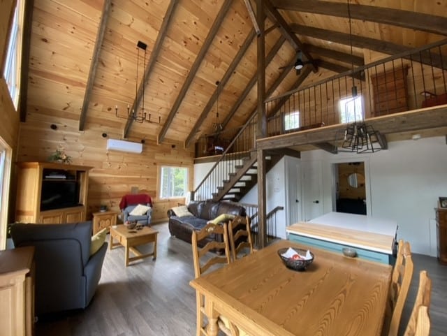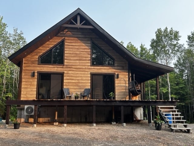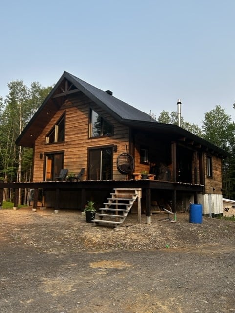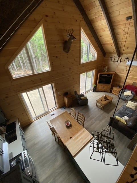 Grandeur: 28′ x 28′ Isolation: R-24.5 Fini extérieur: Plat Hauteur des murs: 10′ Poutre apparentes: Oui
