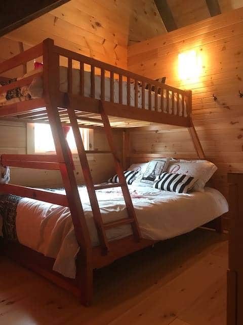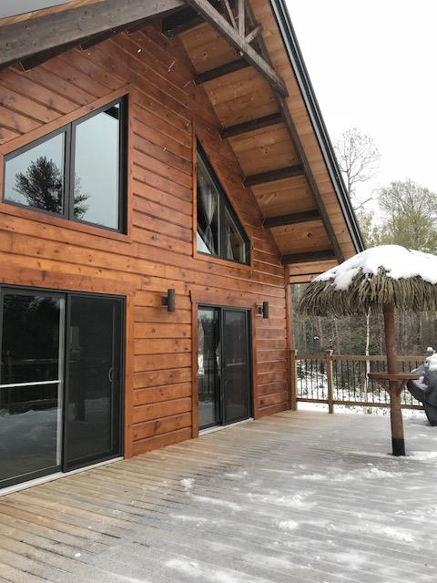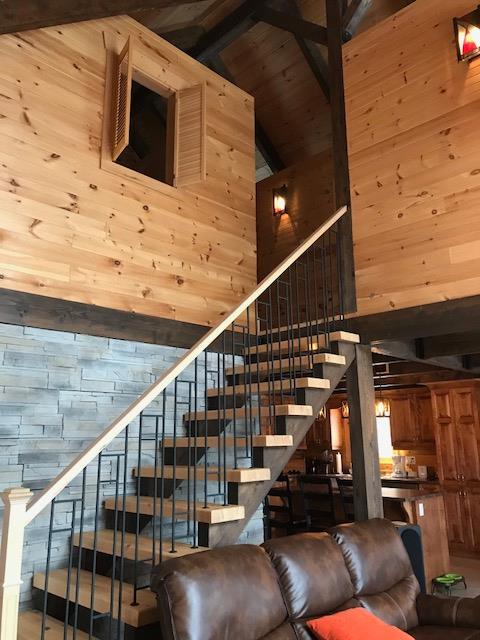 Grandeur: 26′ x 31′ Fini extérieur: Plat Hauteur des murs: 10′ Poutre apparentes: Oui Extra: Mezzanine 3/4