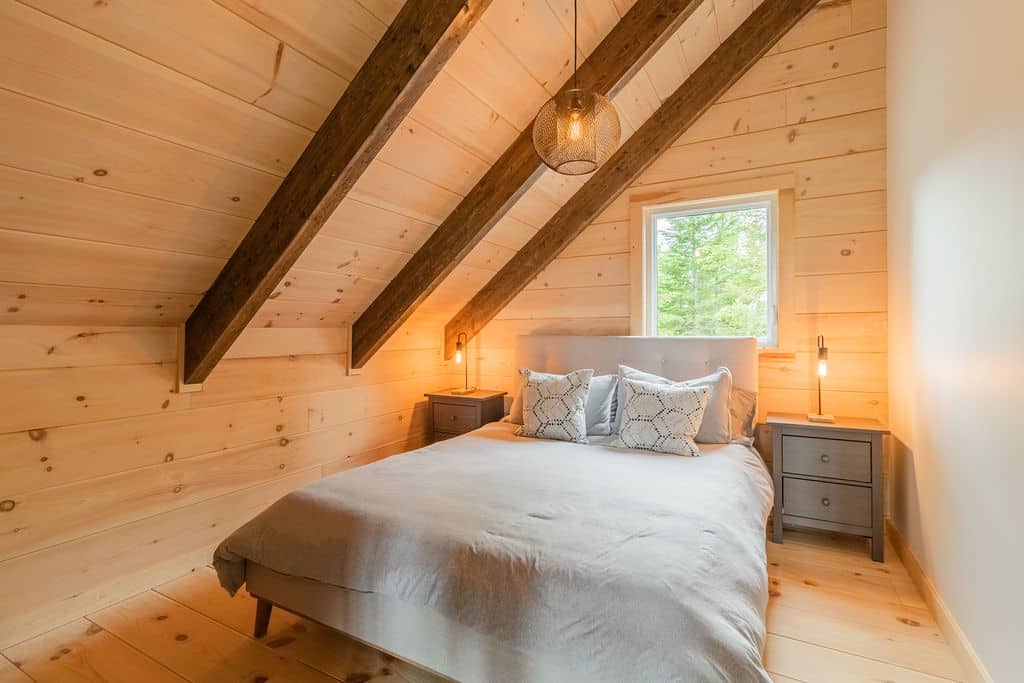 Grandeur: 30′ x 37′ Isolation: R-24.5 Fini extérieur: Plat Hauteur des murs: 10′ Poutre apparentes: Oui