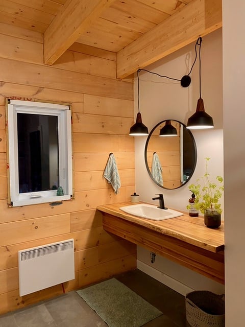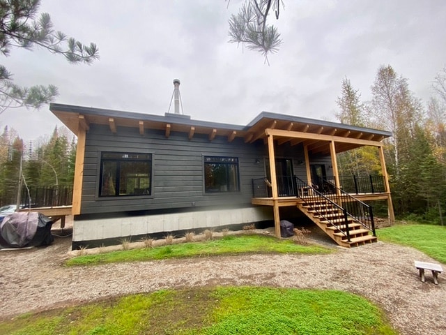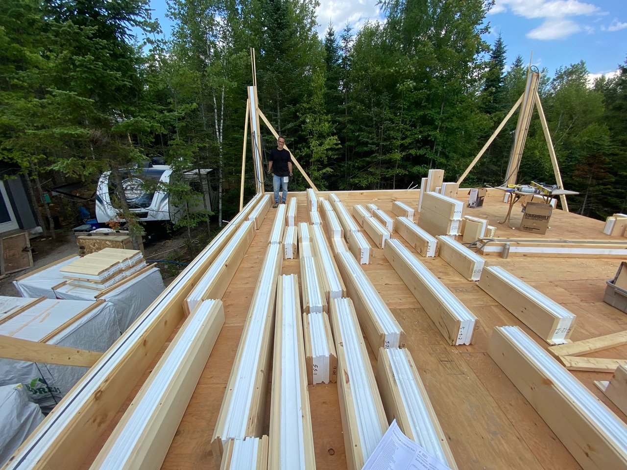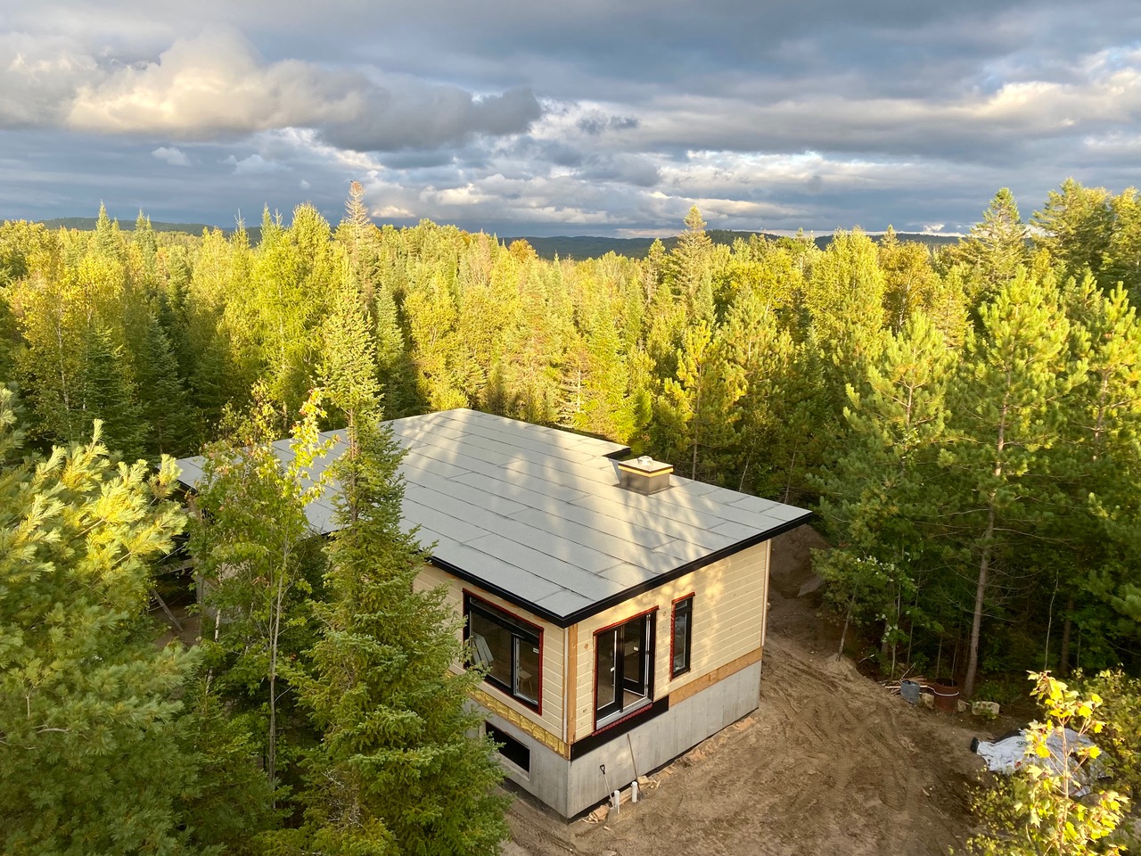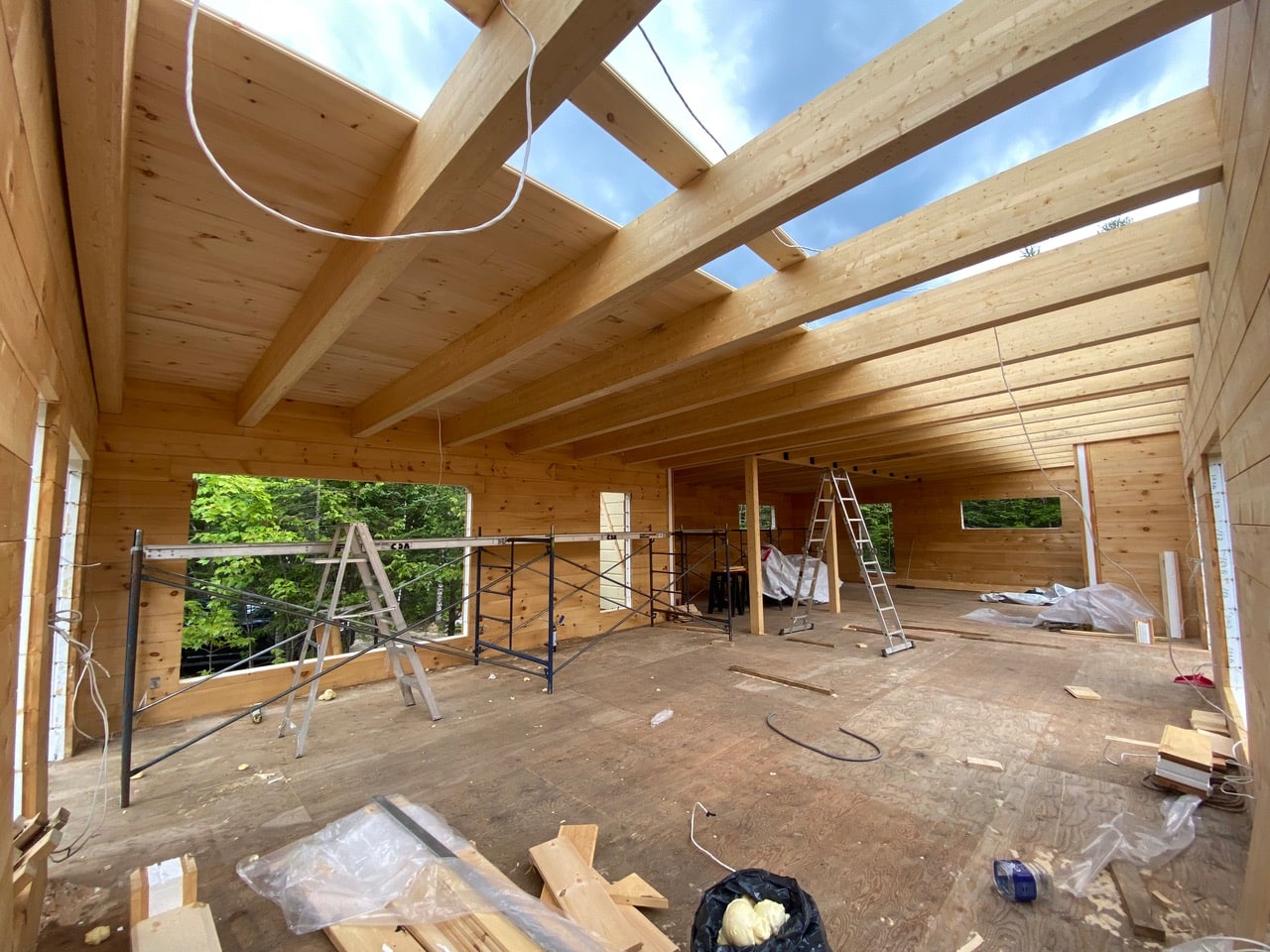 Grandeur: 50′ x 22′ Isolation: R-24.5 Fini extérieur: Plat Hauteur des murs: 10′ 4″ Poutre apparentes: Oui
