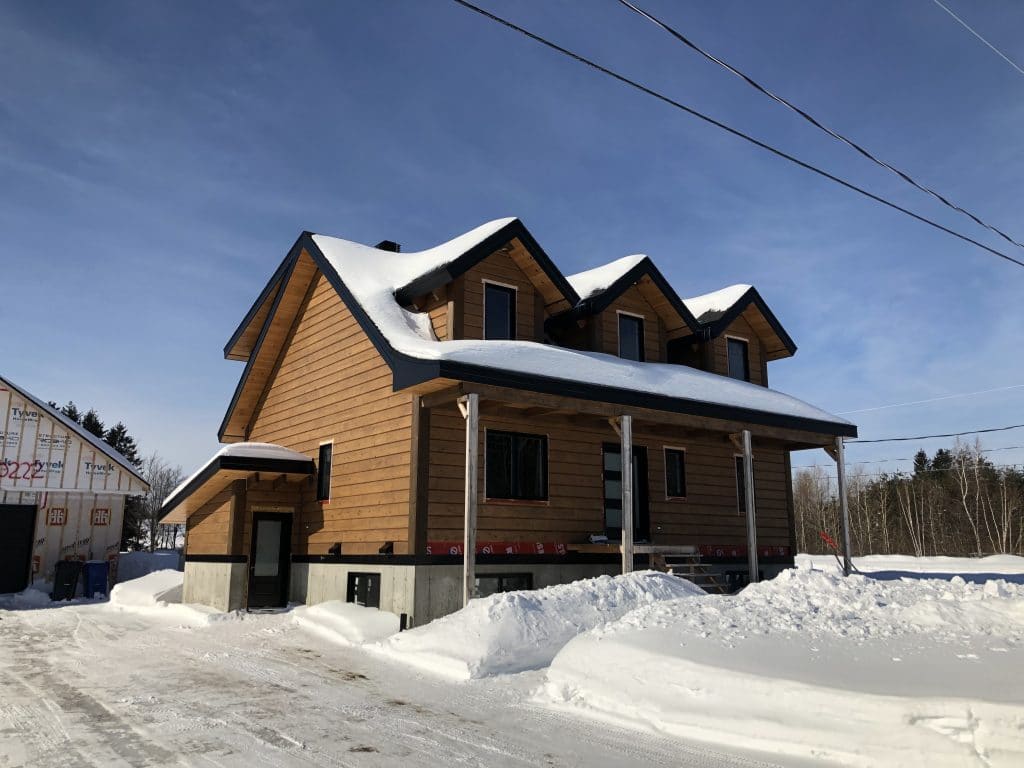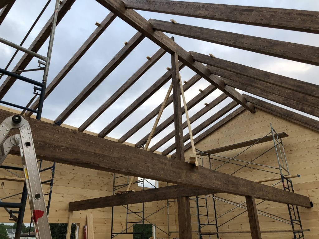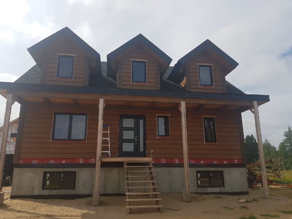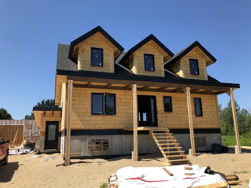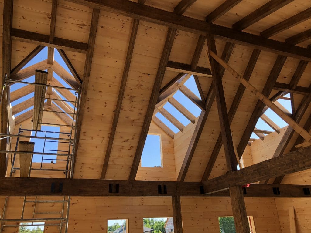 Grandeur: 36′ x 30′ Fini extérieur: Plat Hauteur des murs: 9’10” Poutre apparentes: Oui Extra: 3 lucarnes en façade