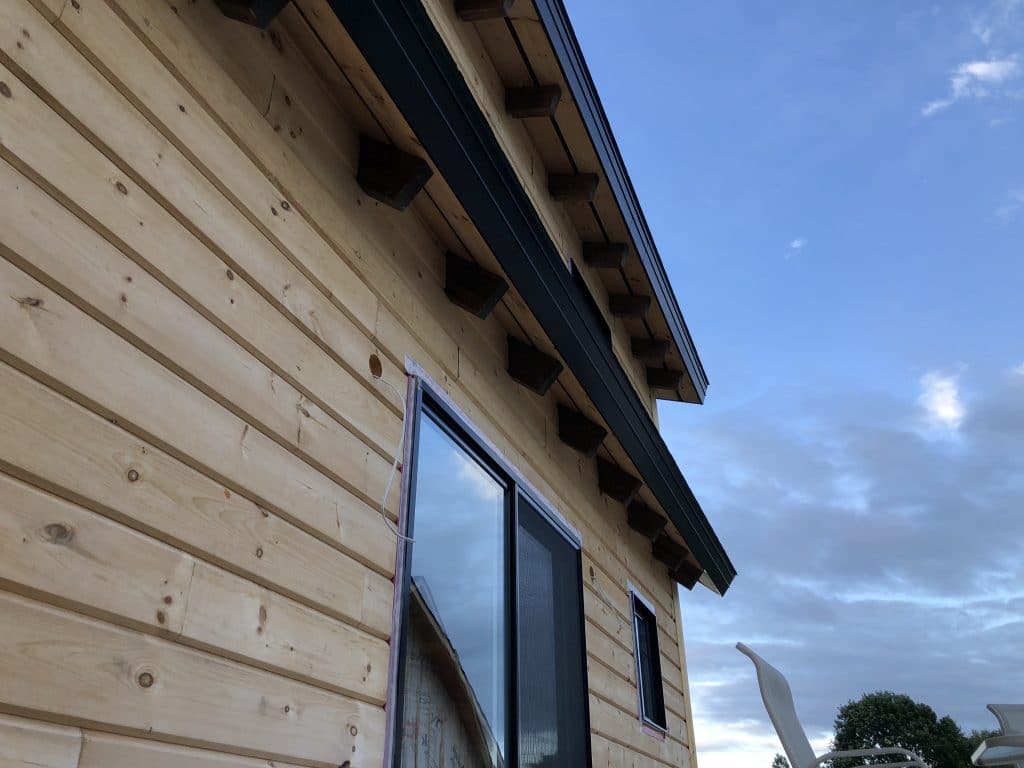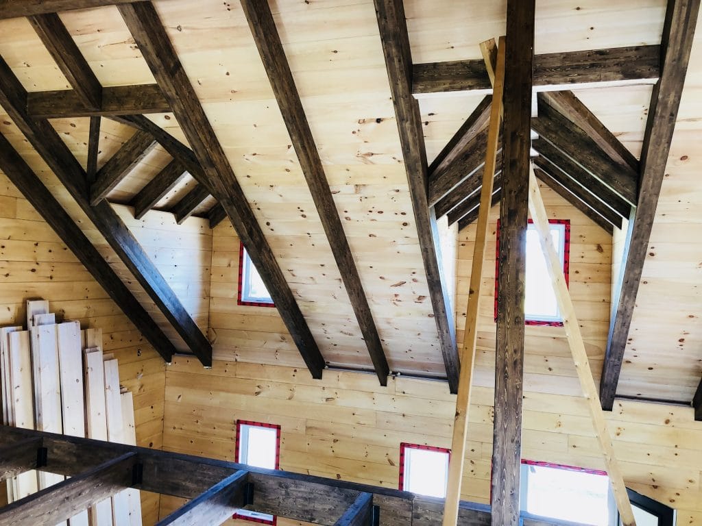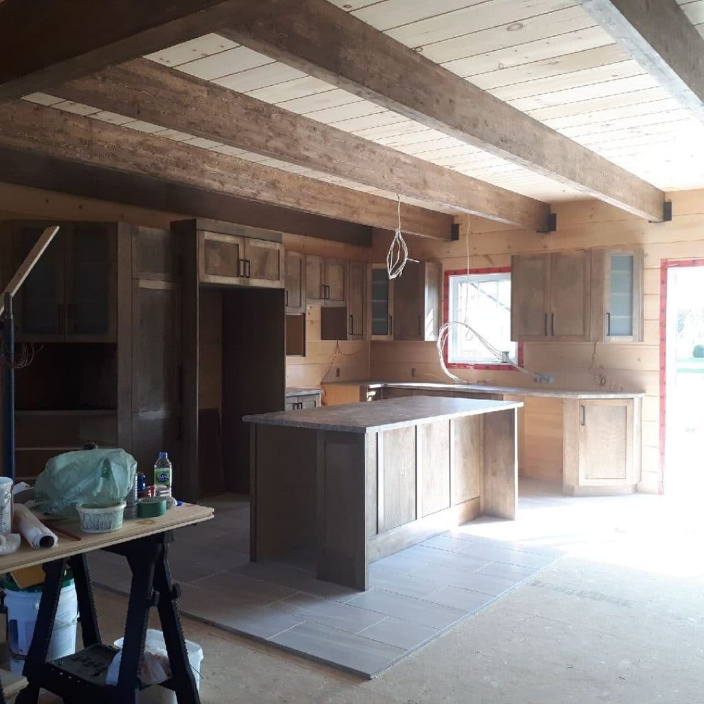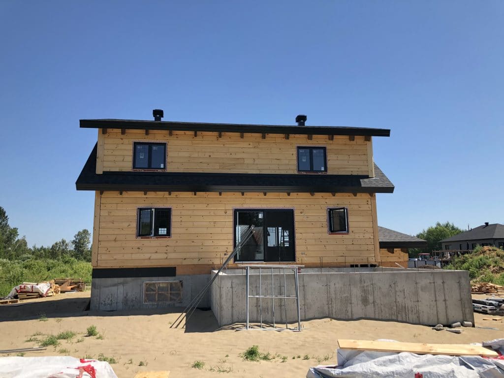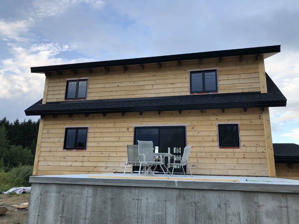 Grandeur: 36′ x 30′ Fini extérieur: Plat Hauteur des murs: 9’10” Poutre apparentes: Oui Extra: 3 lucarnes en façade