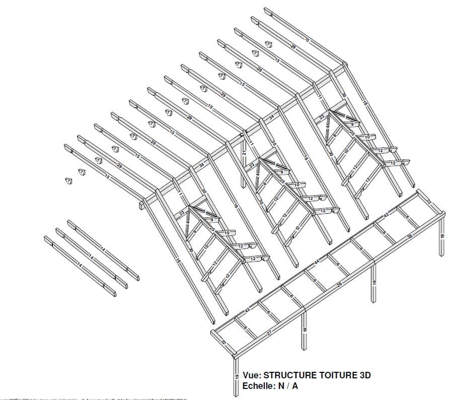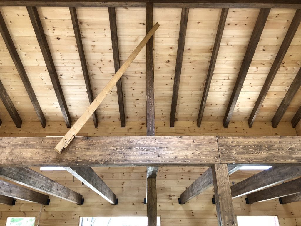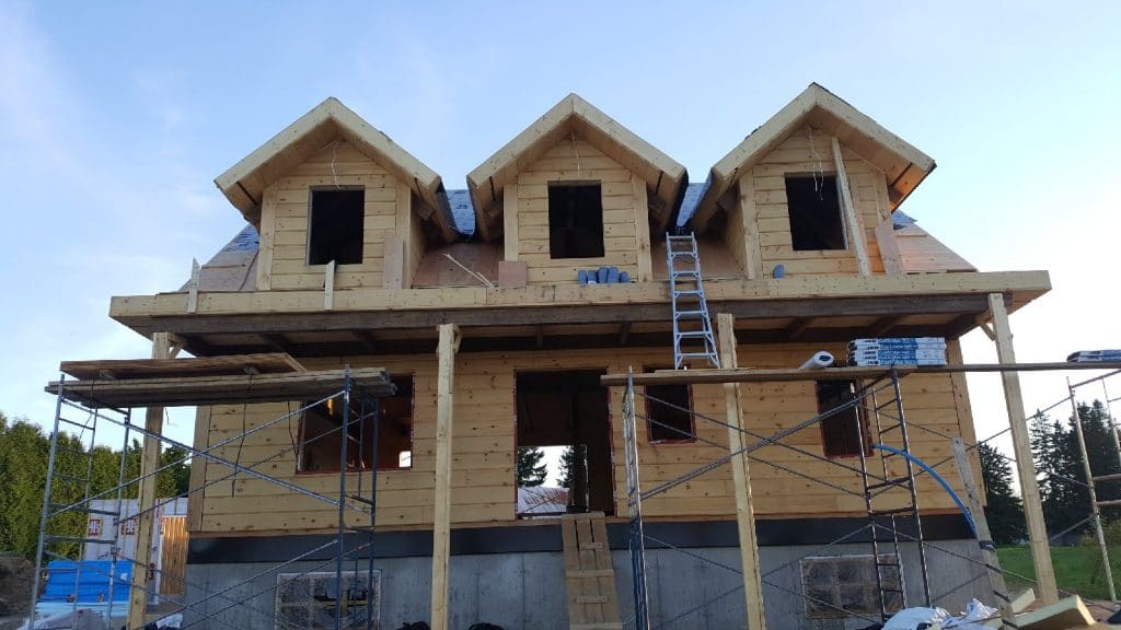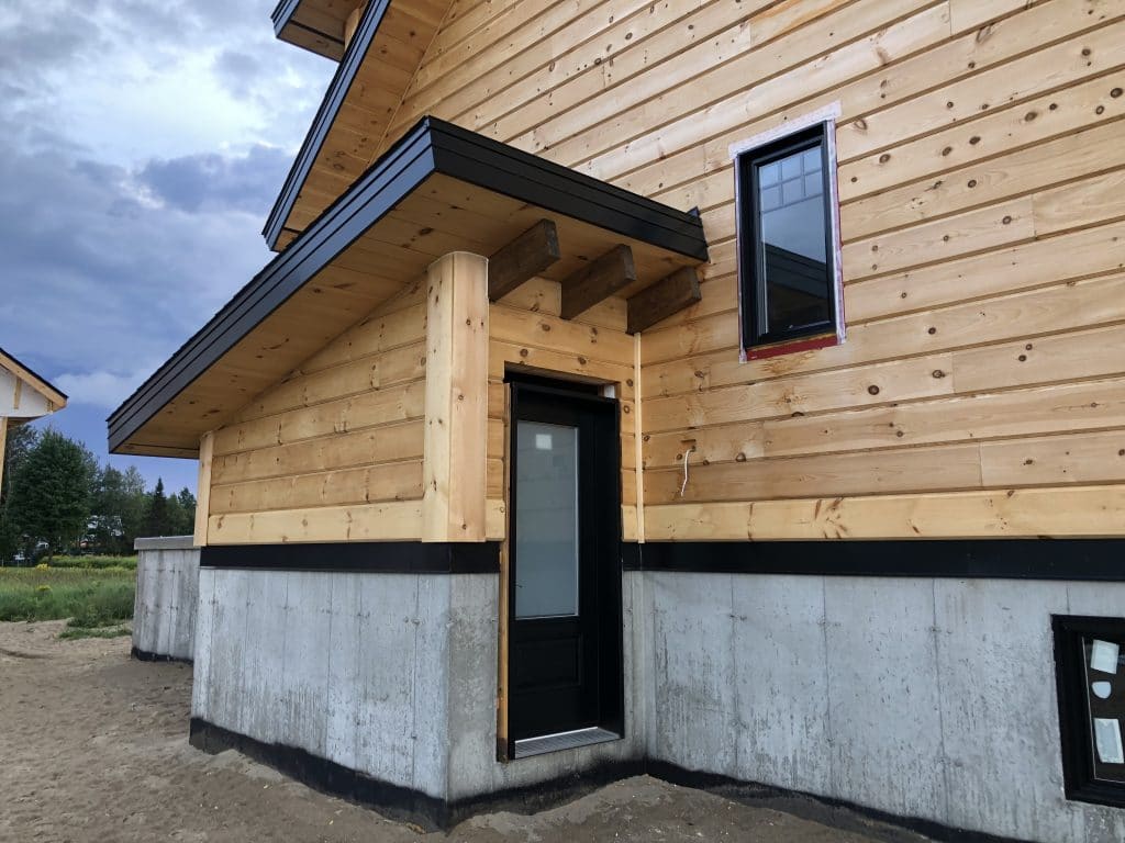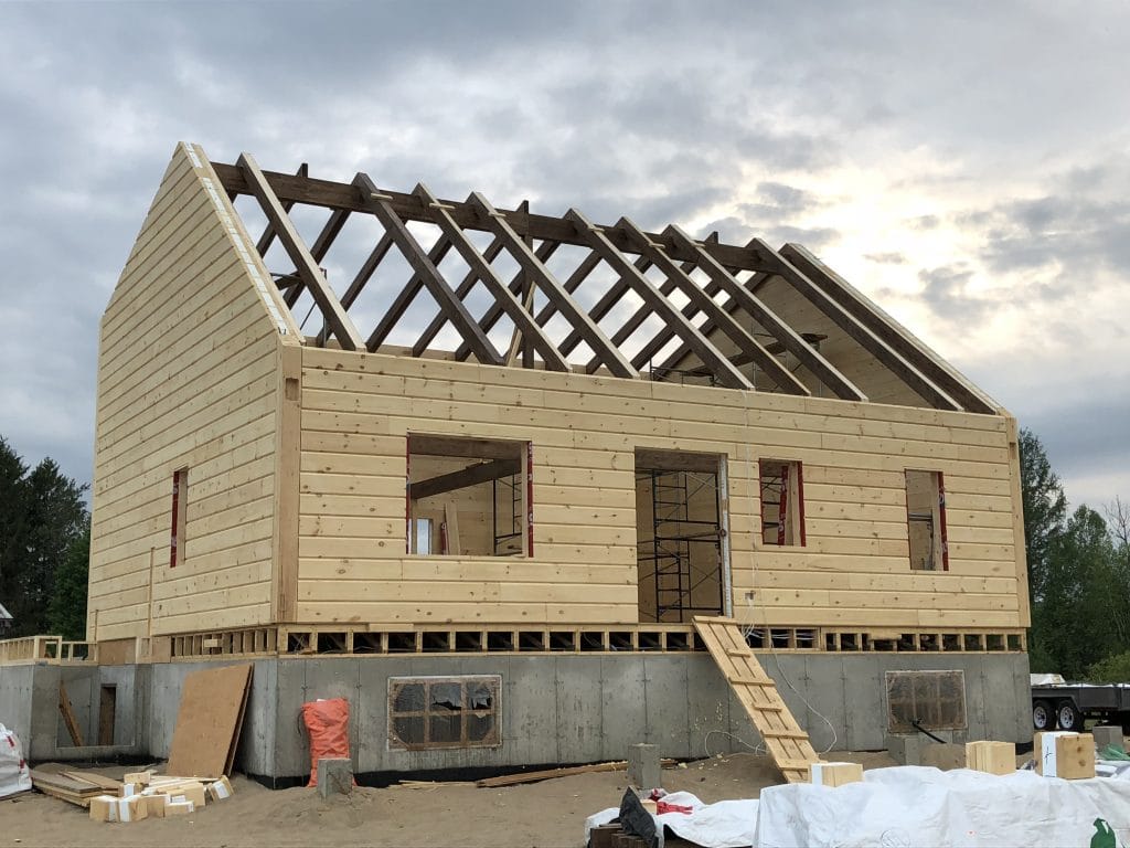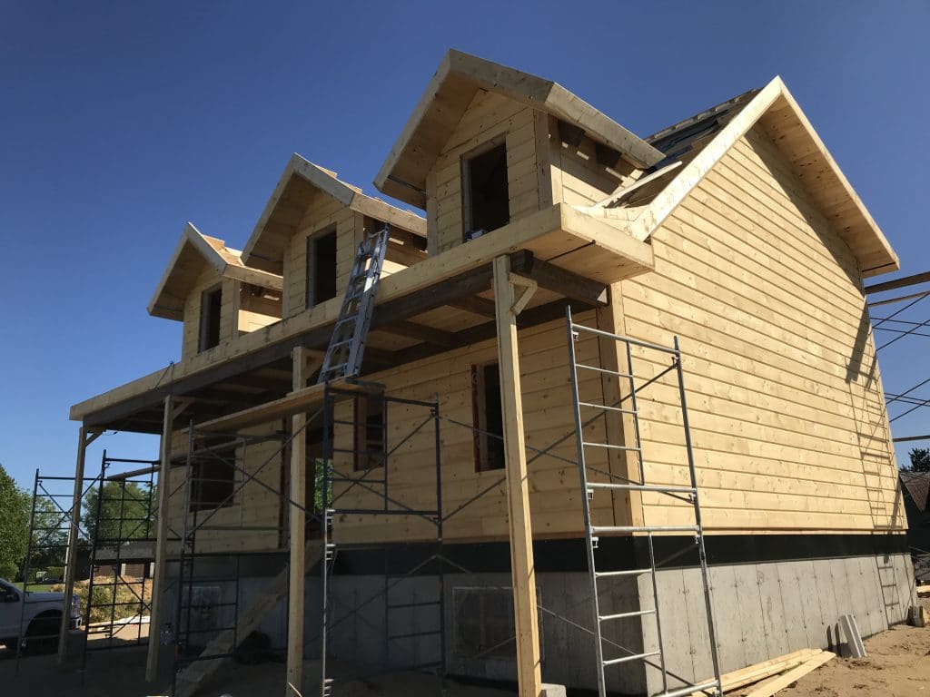 Grandeur: 36′ x 30′ Fini extérieur: Plat Hauteur des murs: 9’10” Poutre apparentes: Oui Extra: 3 lucarnes en façade