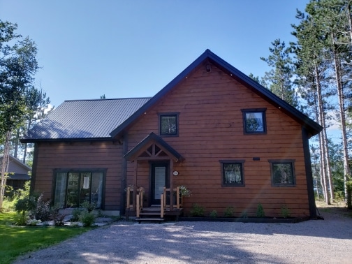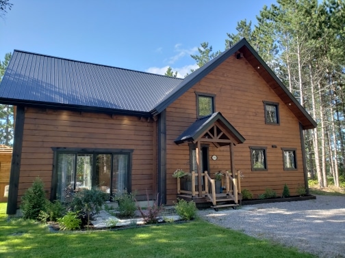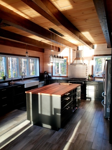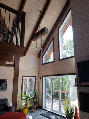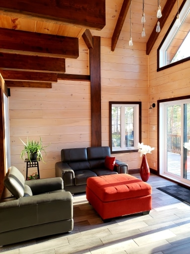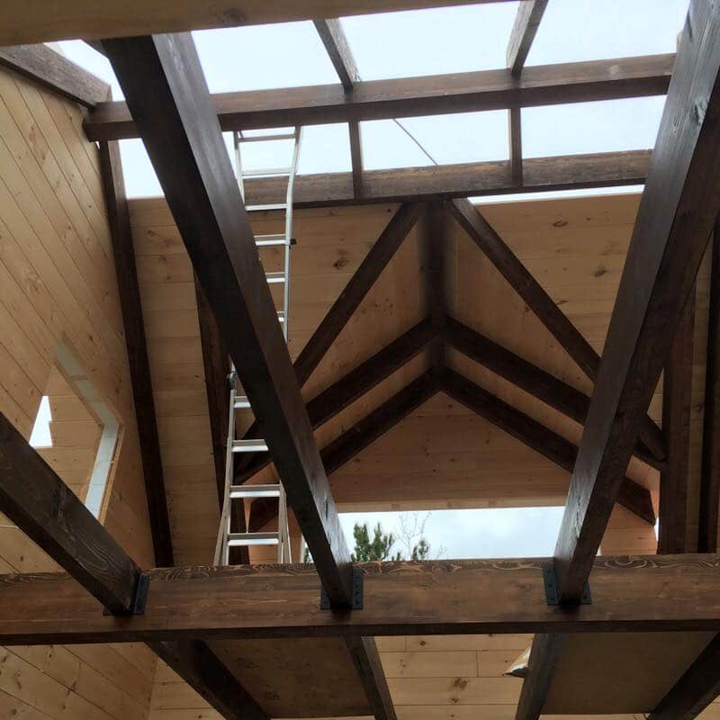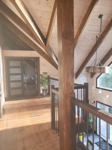 Grandeur: 30′ x 32′ Fini extérieur: Plat Hauteur des murs: 12′ Poutre apparentes: Oui Extra: Mezzanine 1/2 Annexe 20′ x 24′ avec étage complet