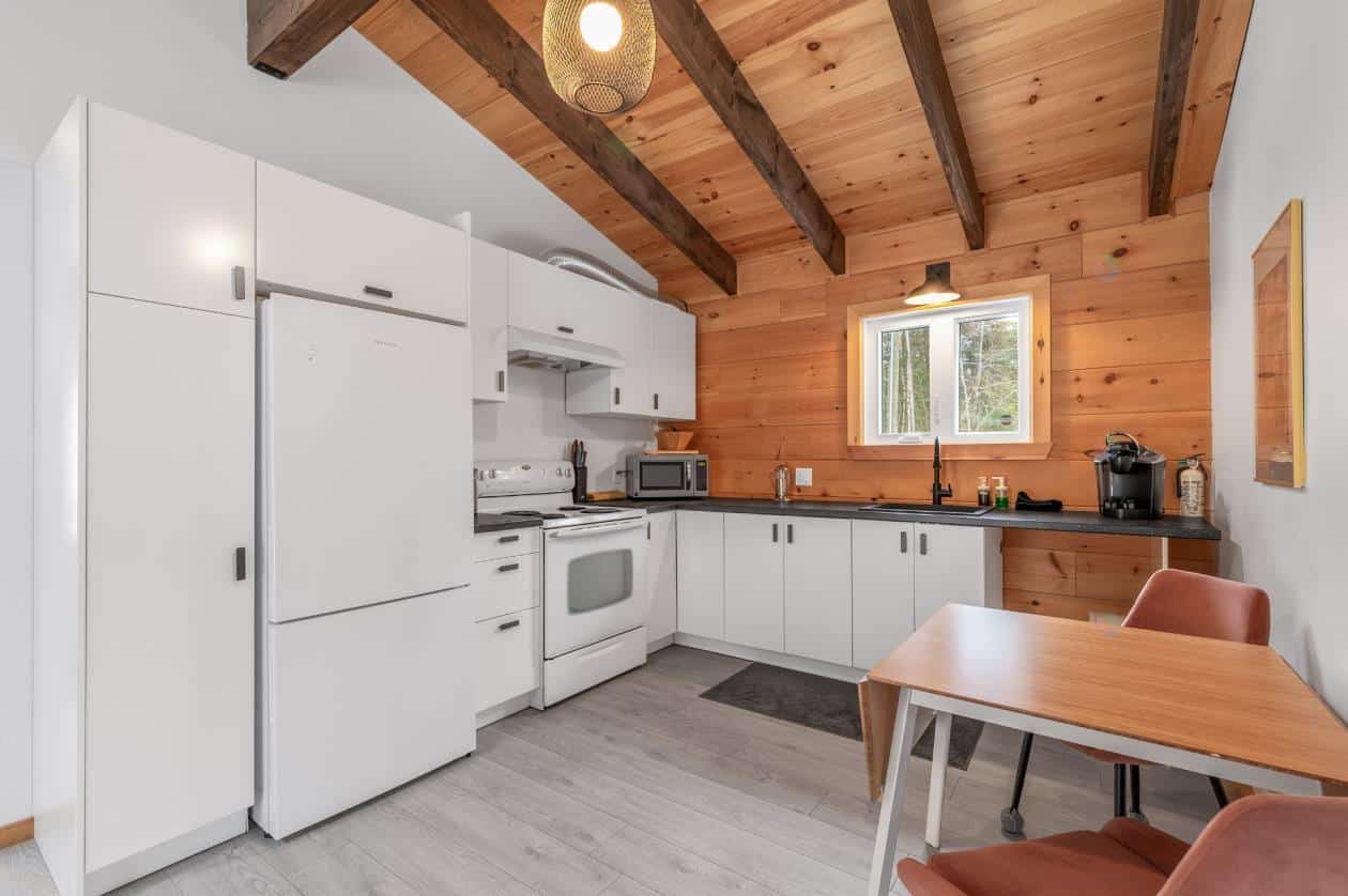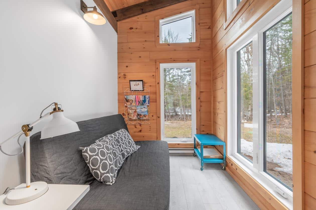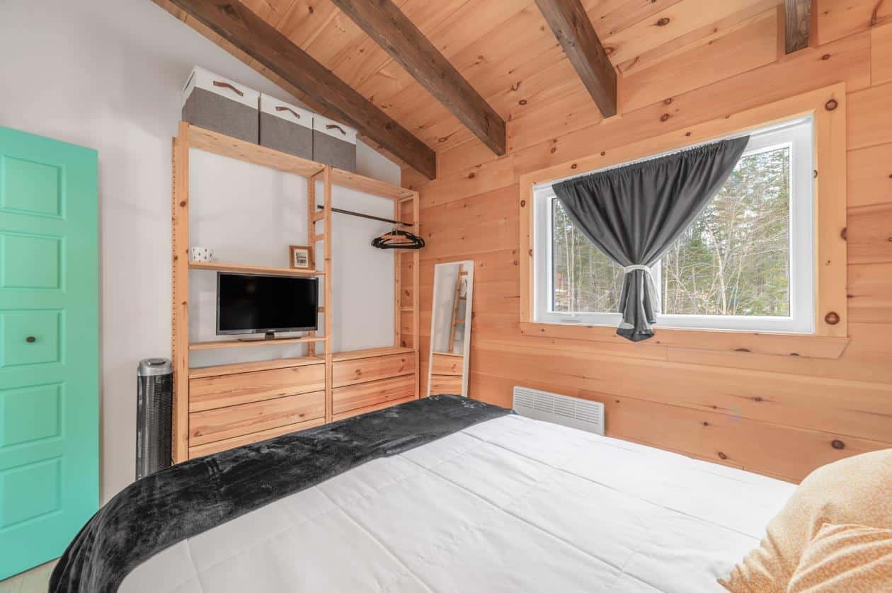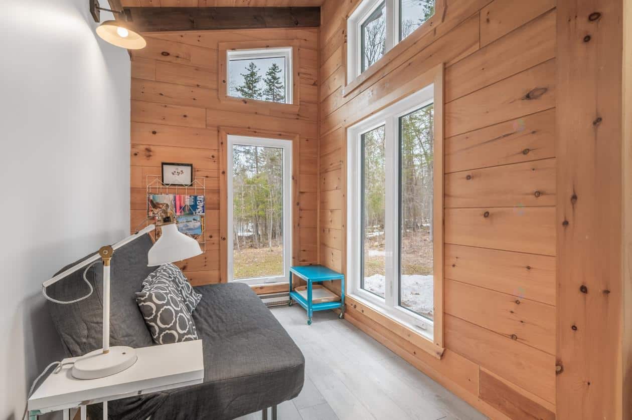 Grandeur: 32′ x 20′ Isolation: R-24.5 Fini extérieur: Plat Hauteur des murs: 14′ Facade, 8’3″ Arrière Poutre apparentes: Oui