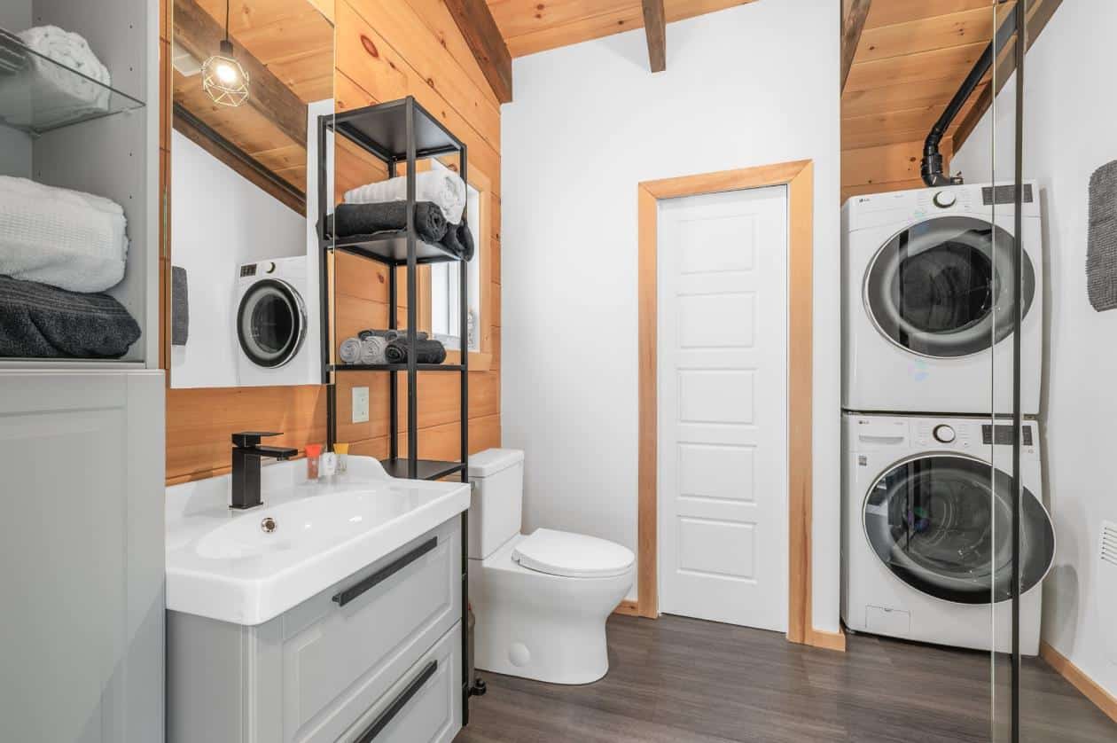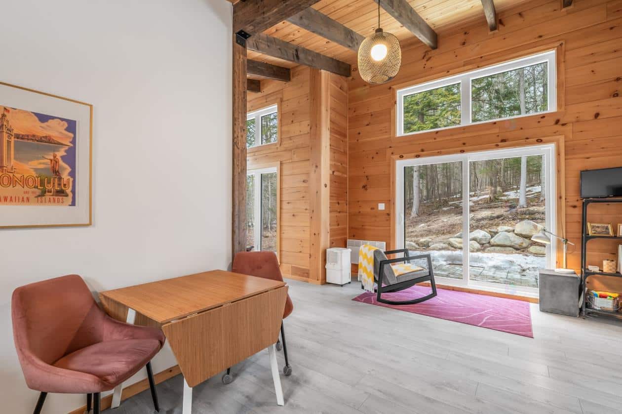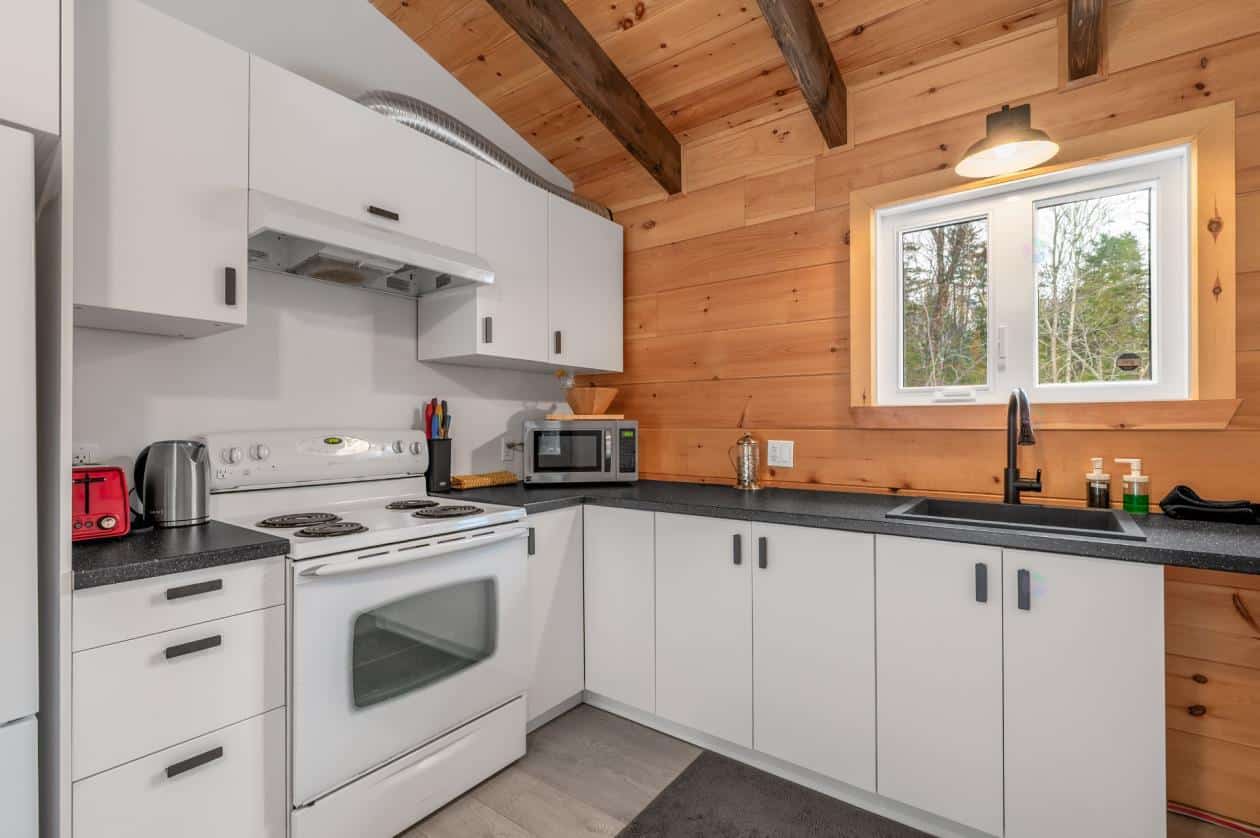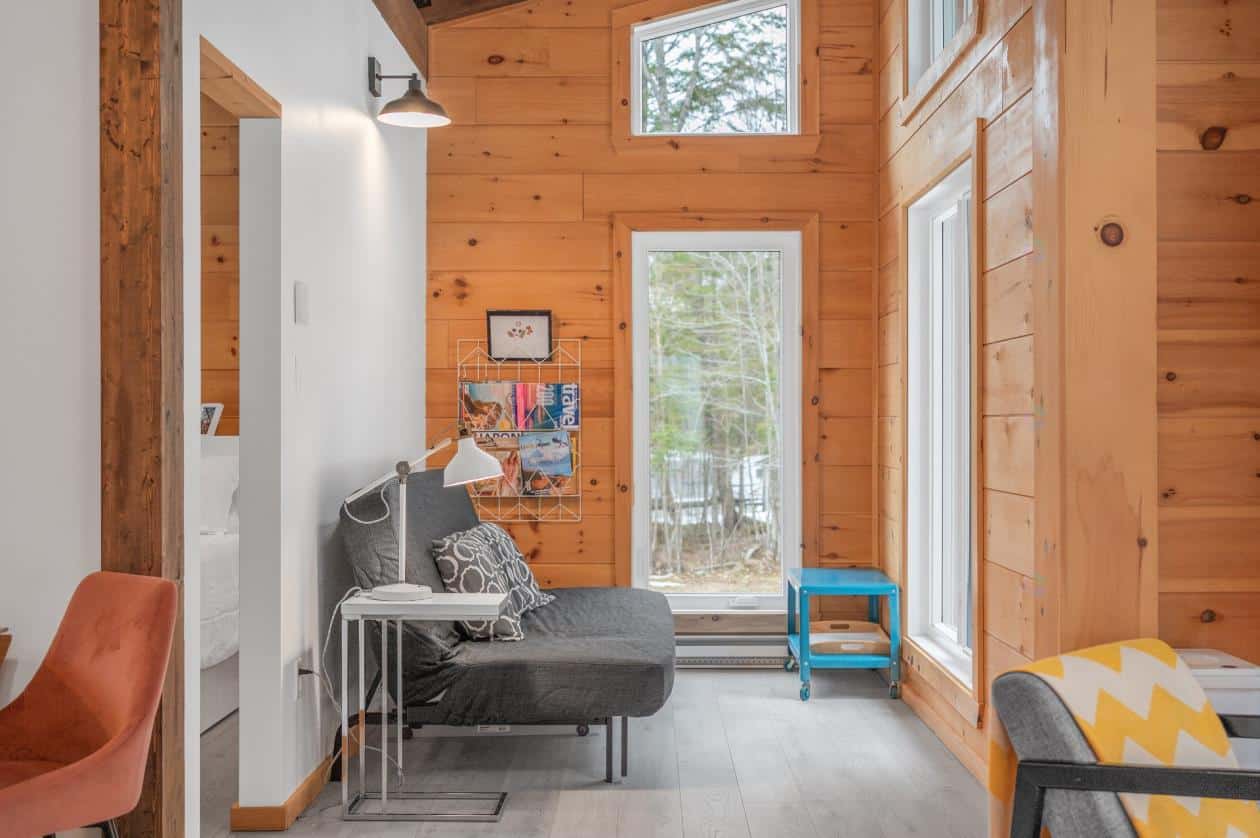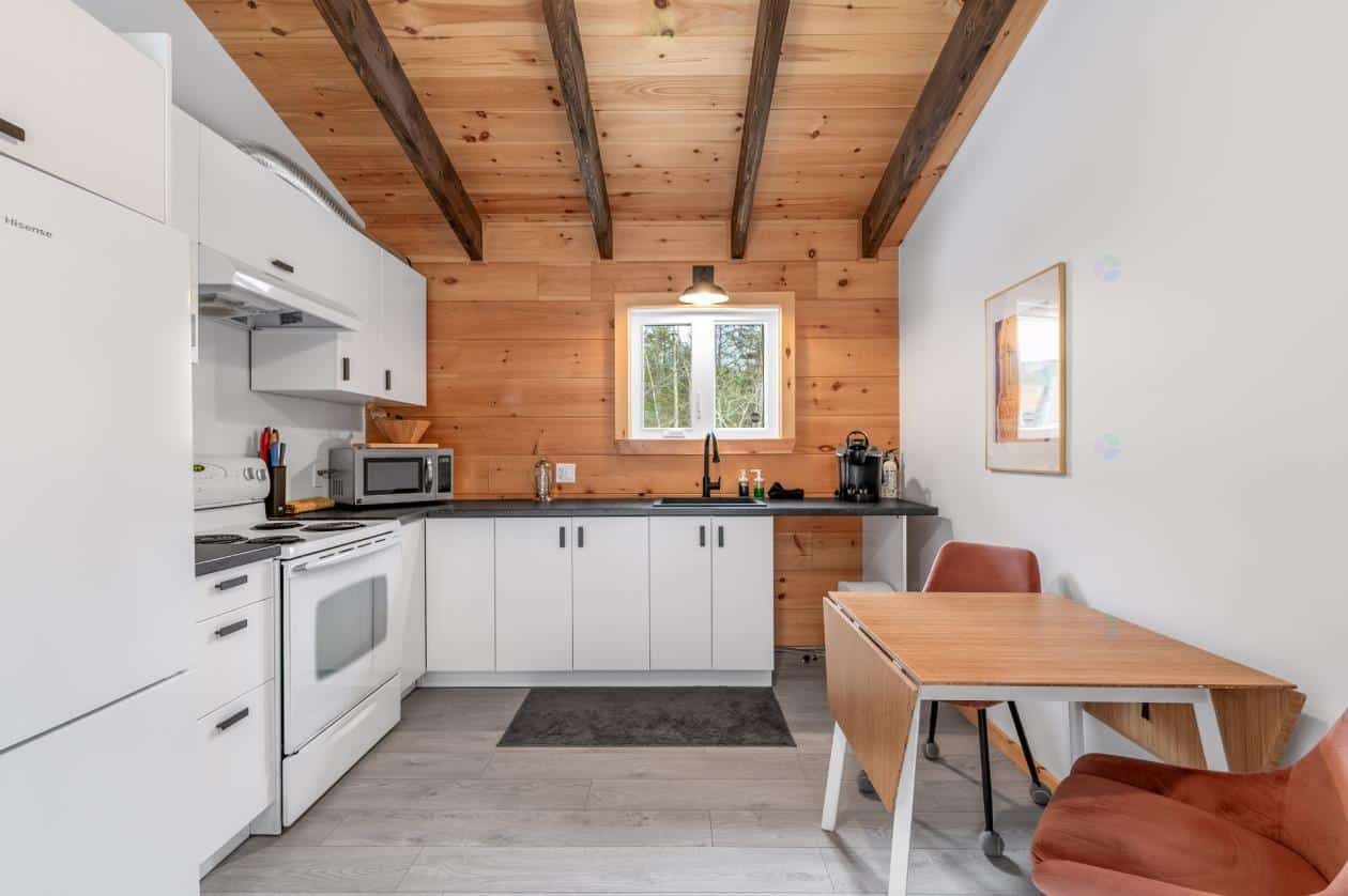 Grandeur: 32′ x 20′ Isolation: R-24.5 Fini extérieur: Plat Hauteur des murs: 14′ Facade, 8’3″ Arrière Poutre apparentes: Oui