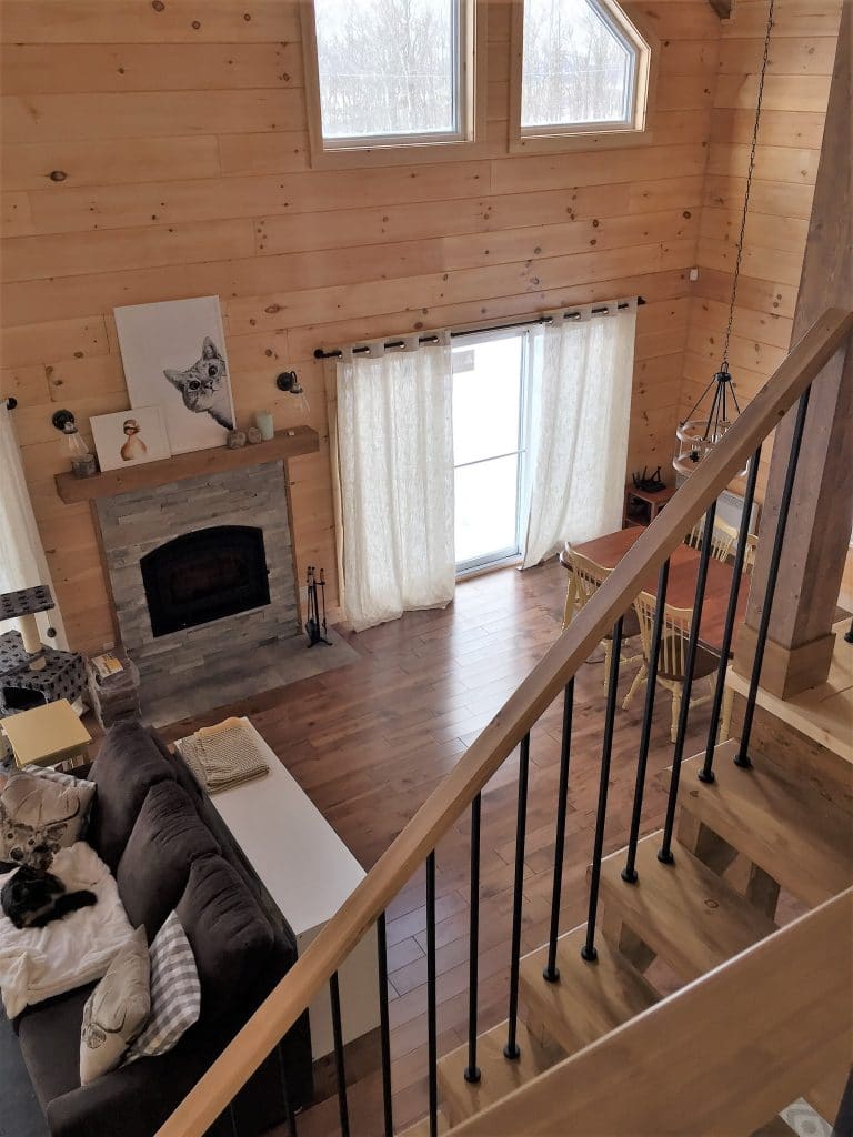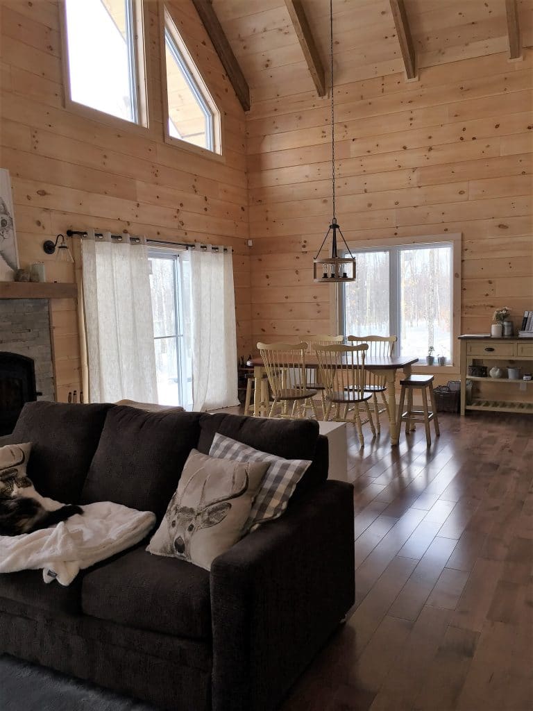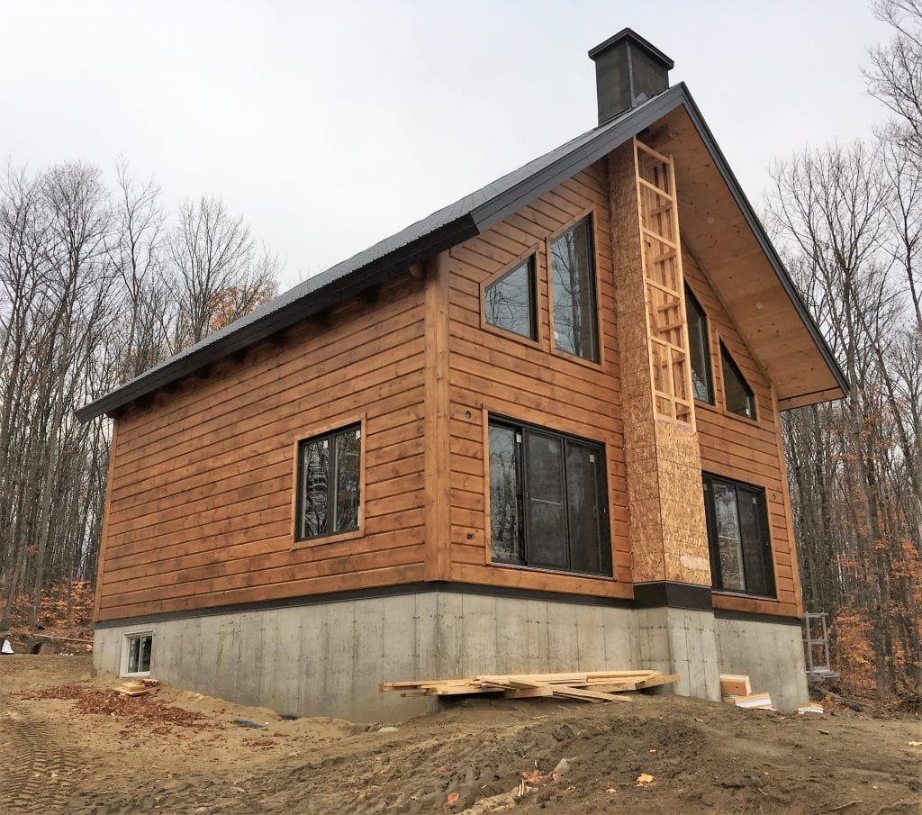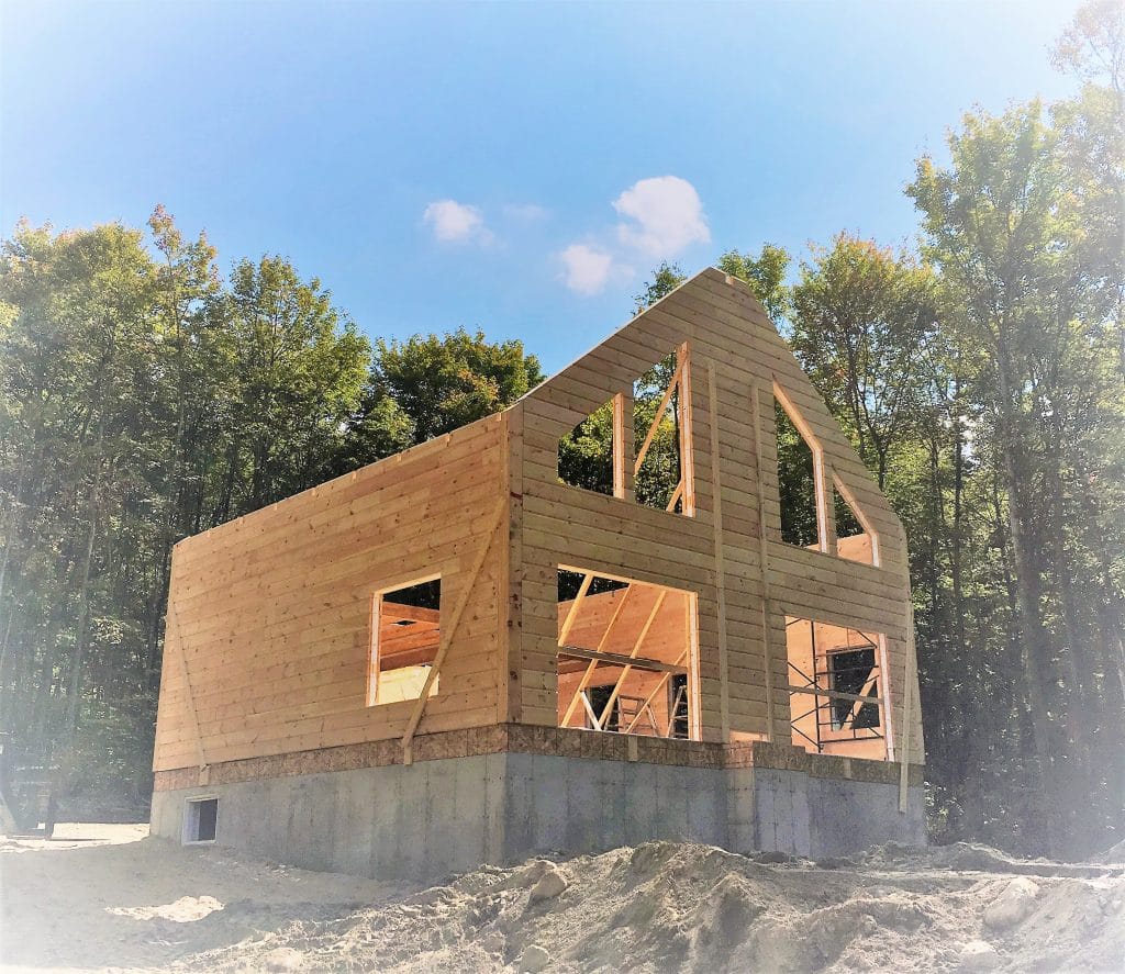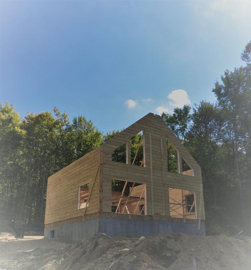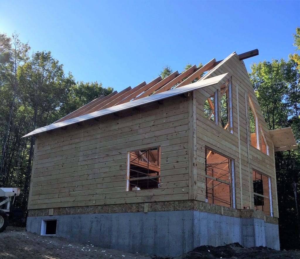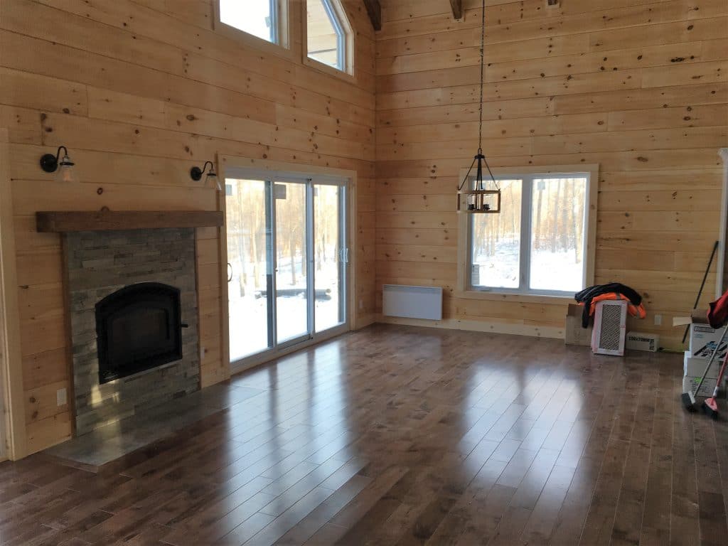 Grandeur: 30′ x 32′ Fini extérieur: Plat Hauteur des murs: 14′ Poutre apparentes: Oui