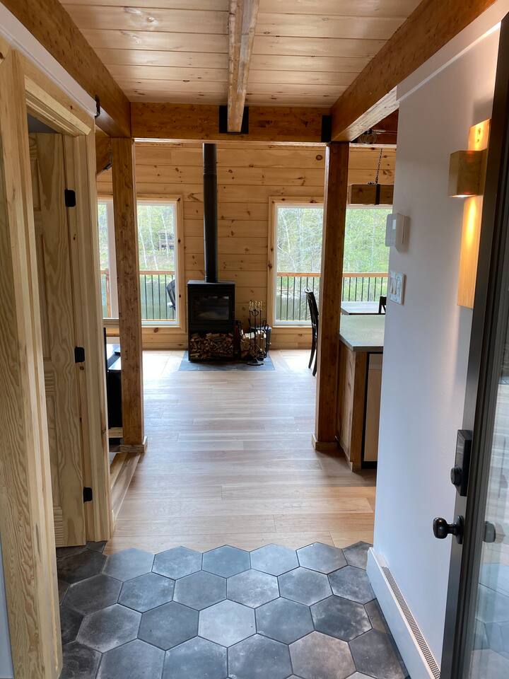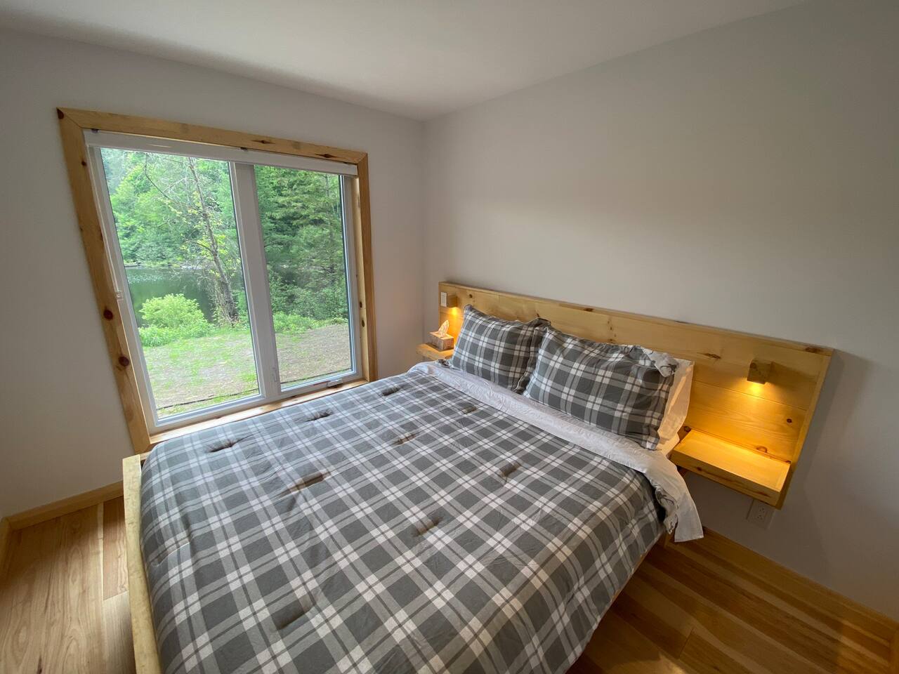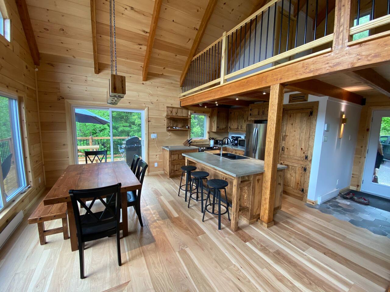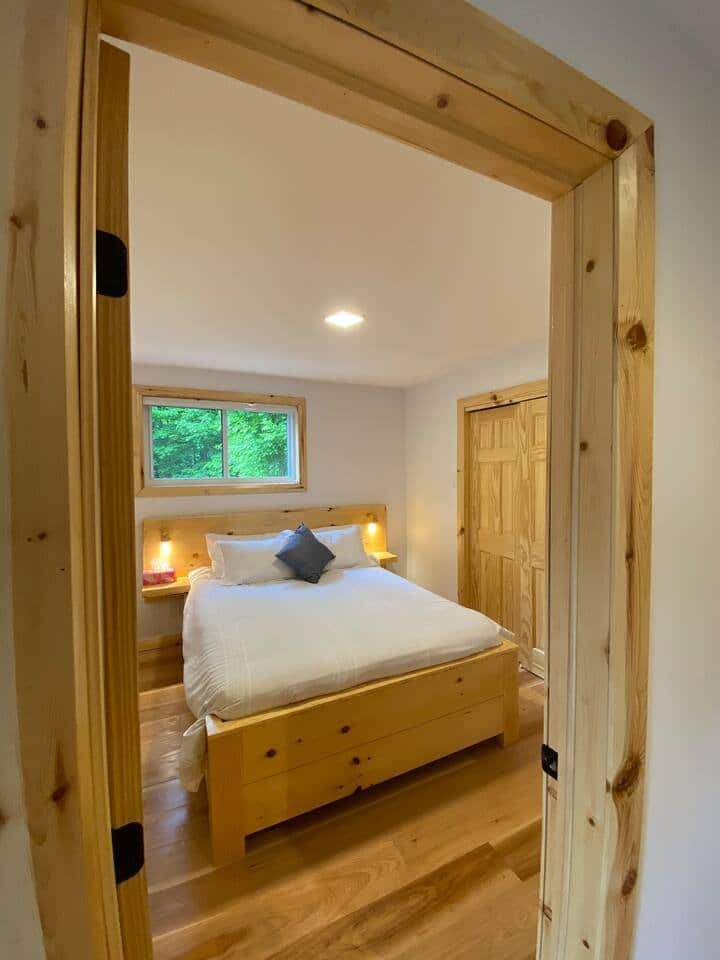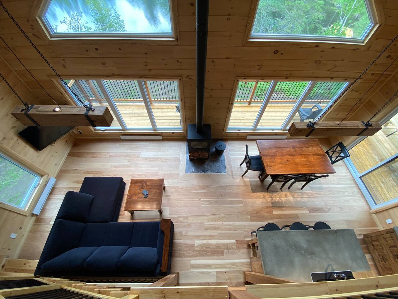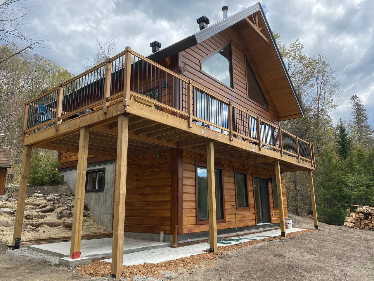 Grandeur: 28′ x 24′ Isolation: R-24.5 Fini extérieur: Plat Hauteur des murs: 10′ Poutre apparentes: Oui