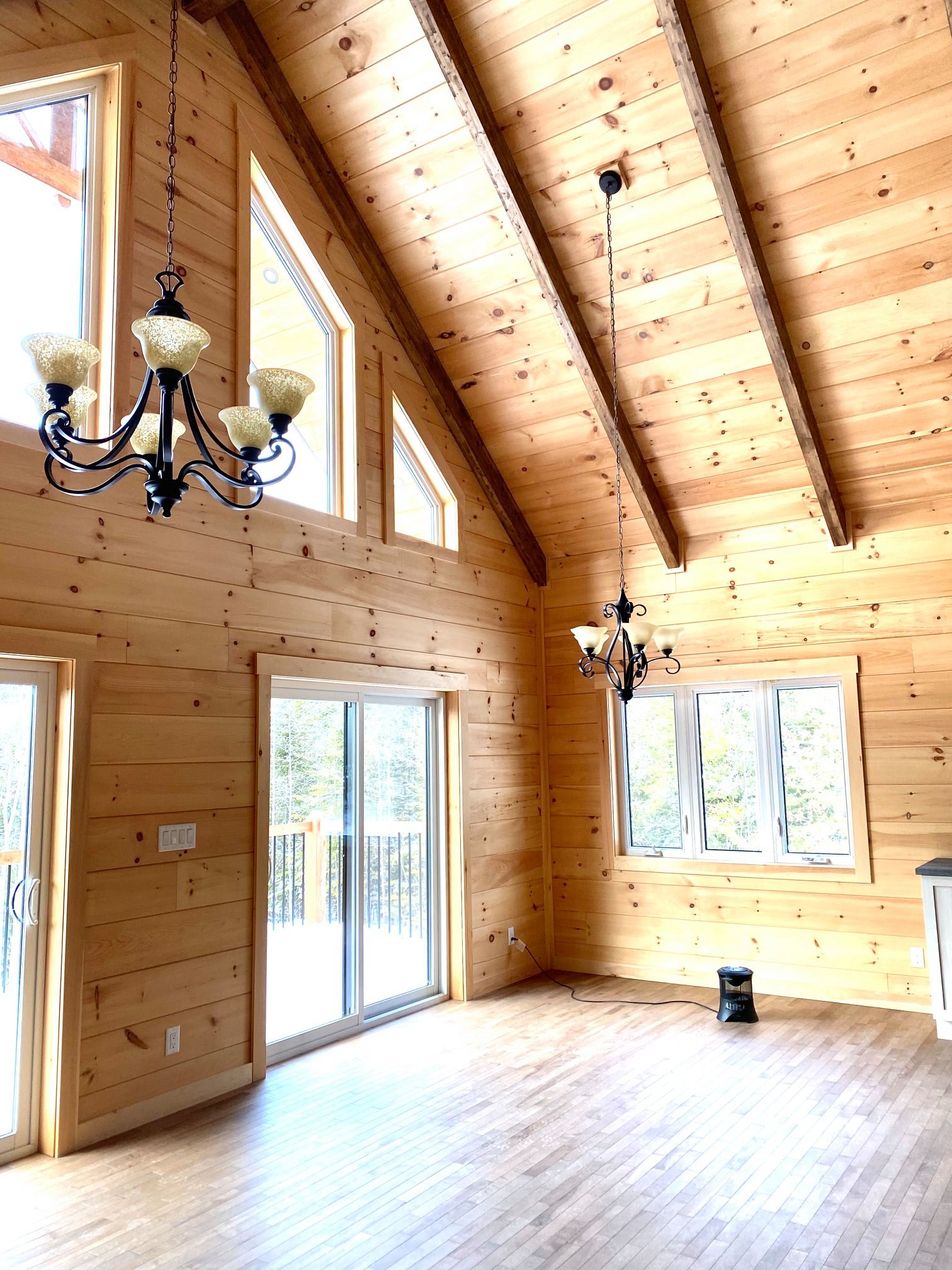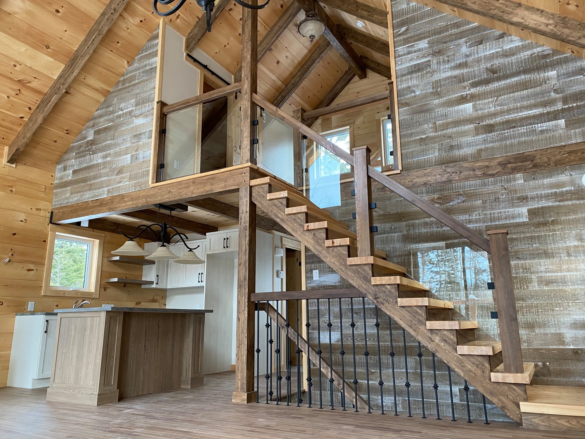 Structure de mezzanine et toit en poutres apparentes