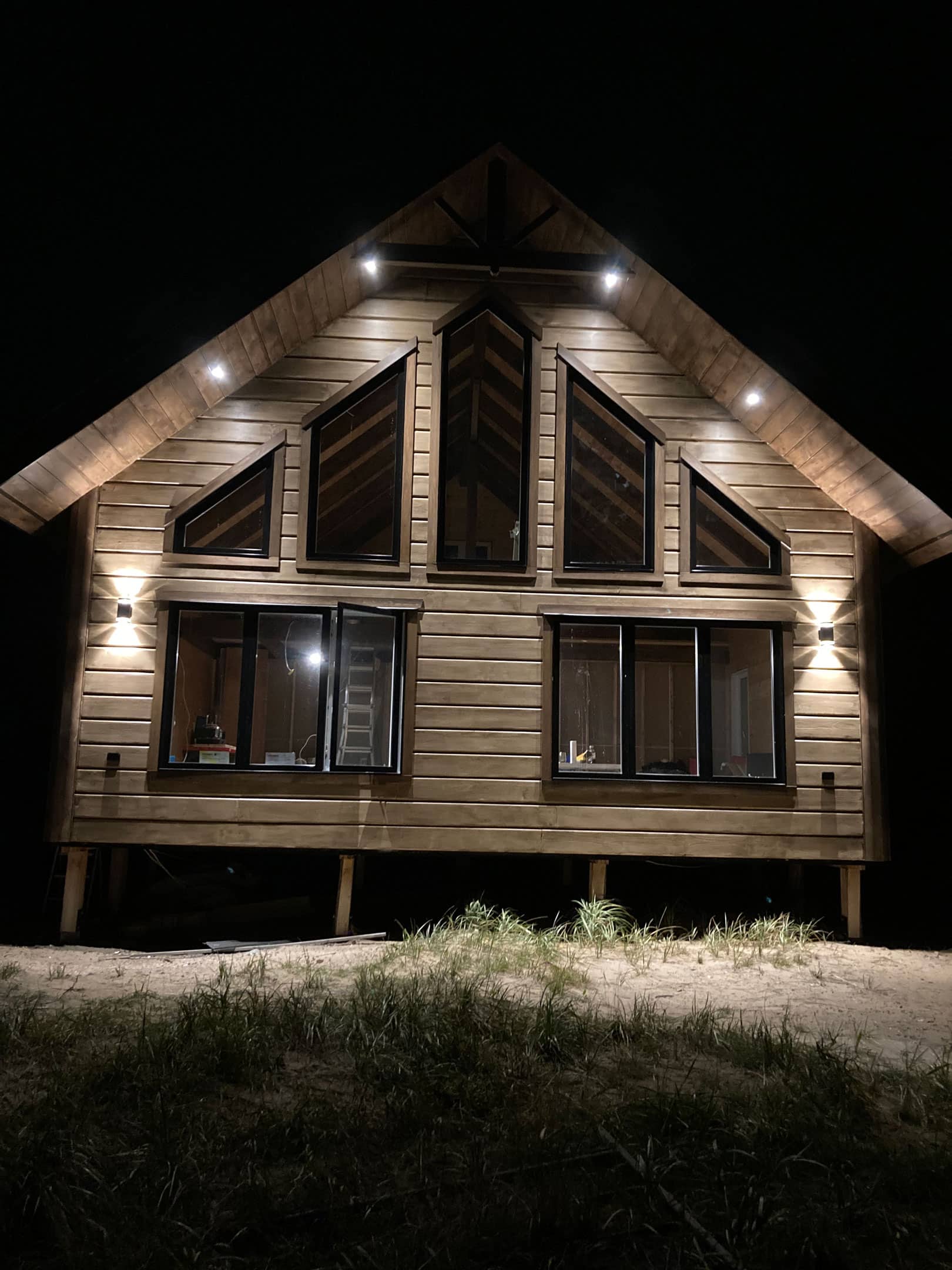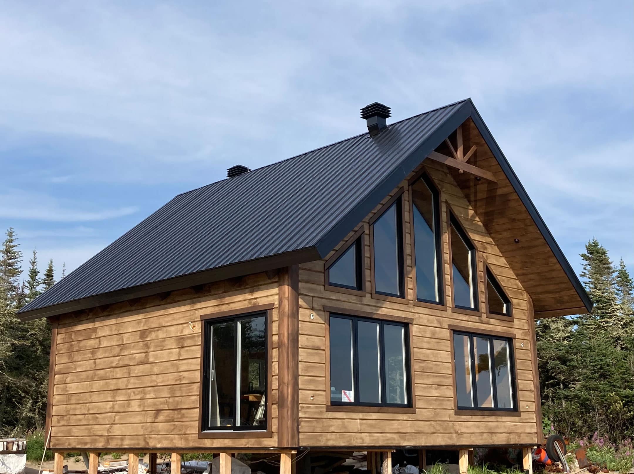 Grandeur: 26′ x 26′ Isolation: R-24.5 Fini extérieur: Plat Hauteur des murs: 10′ Poutre apparentes: Oui