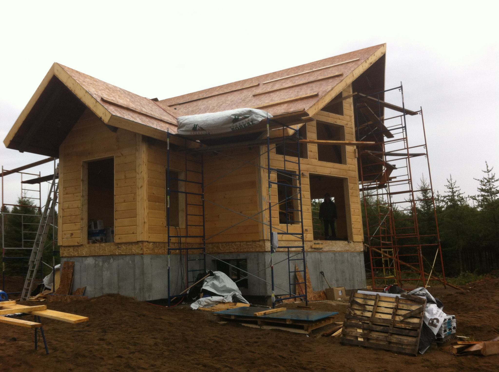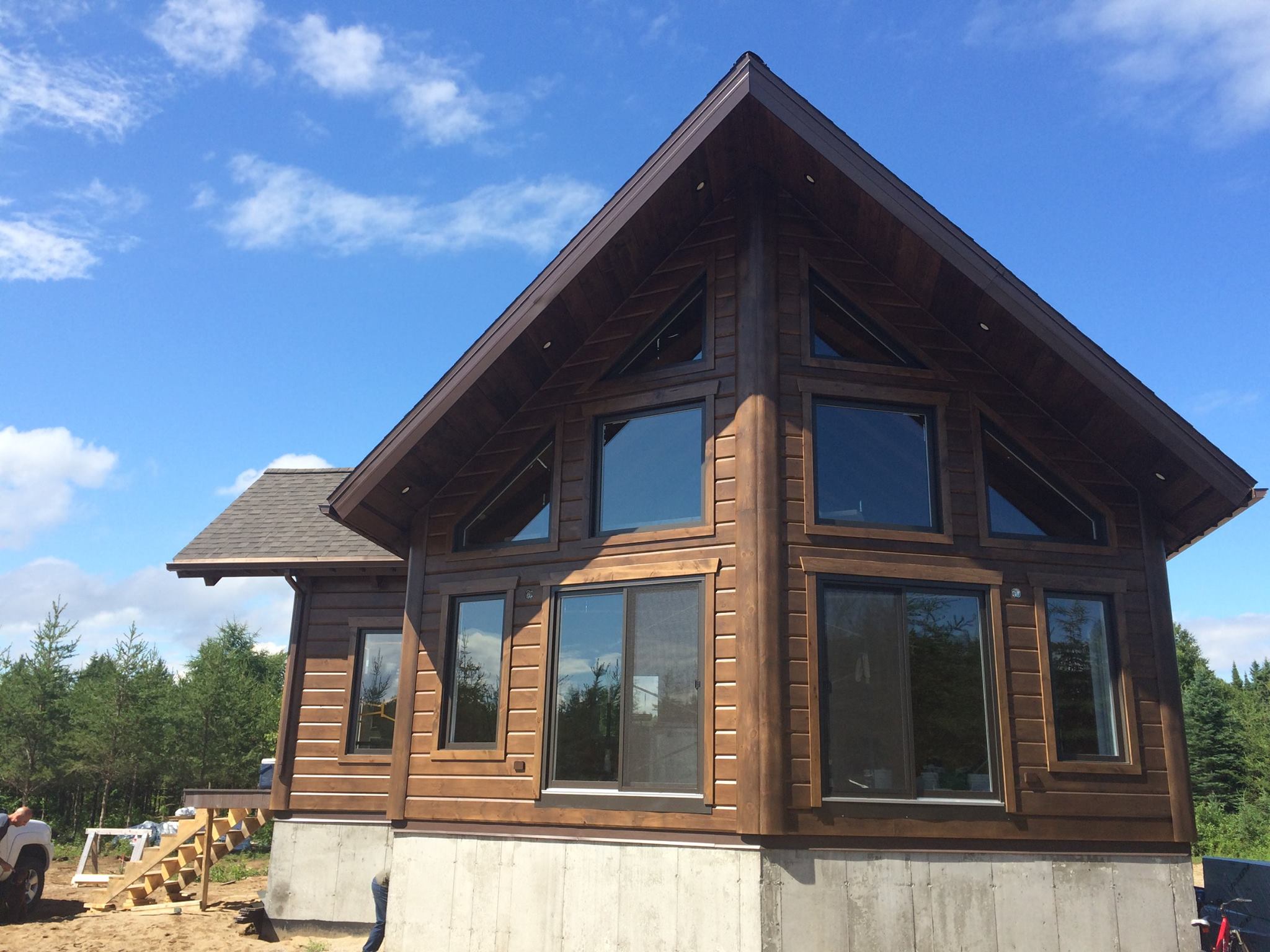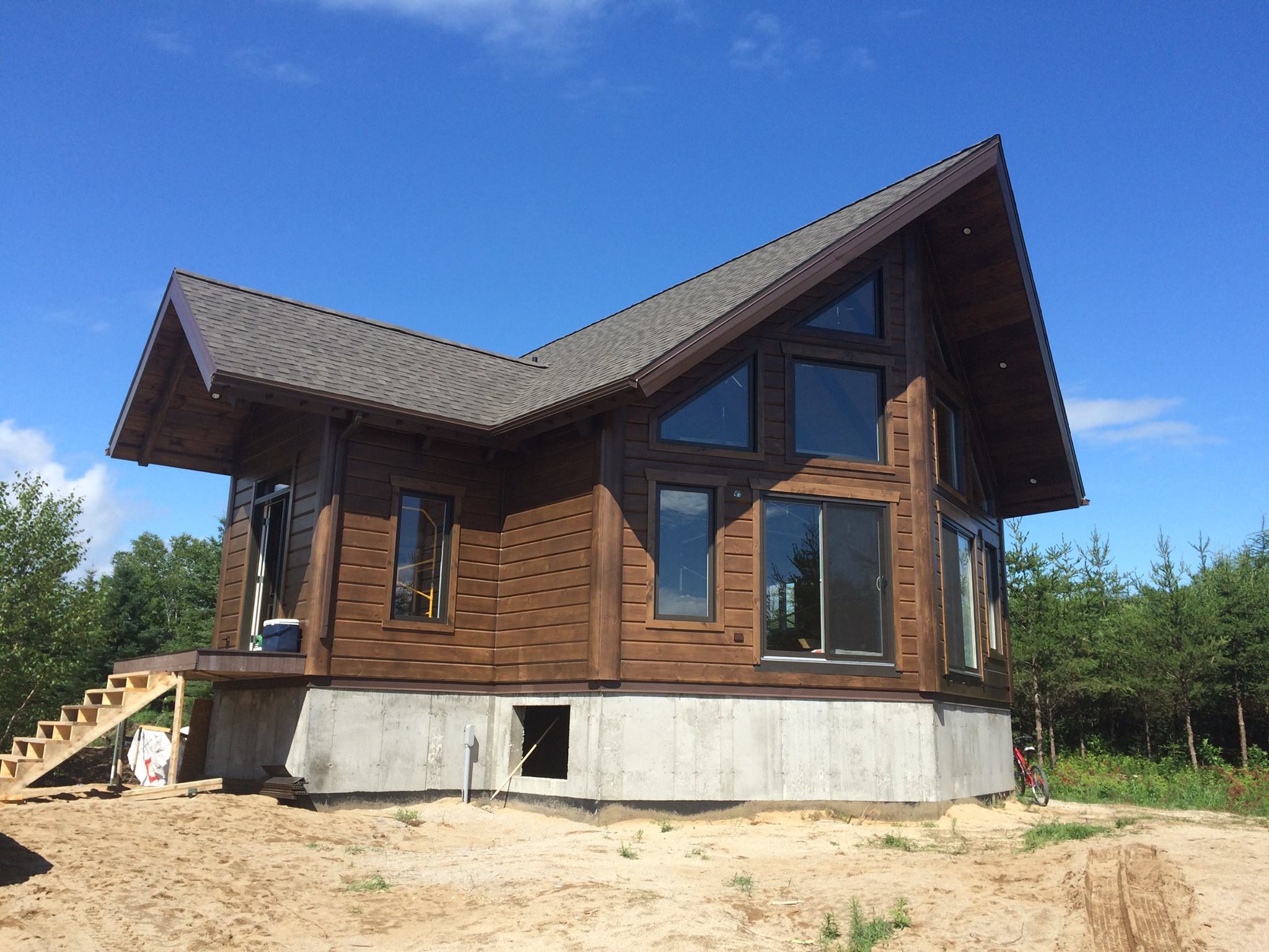 Grandeur: 26′ x 31′ Fini extérieur: Plat Hauteur des murs: 10′ Poutre apparentes: Oui