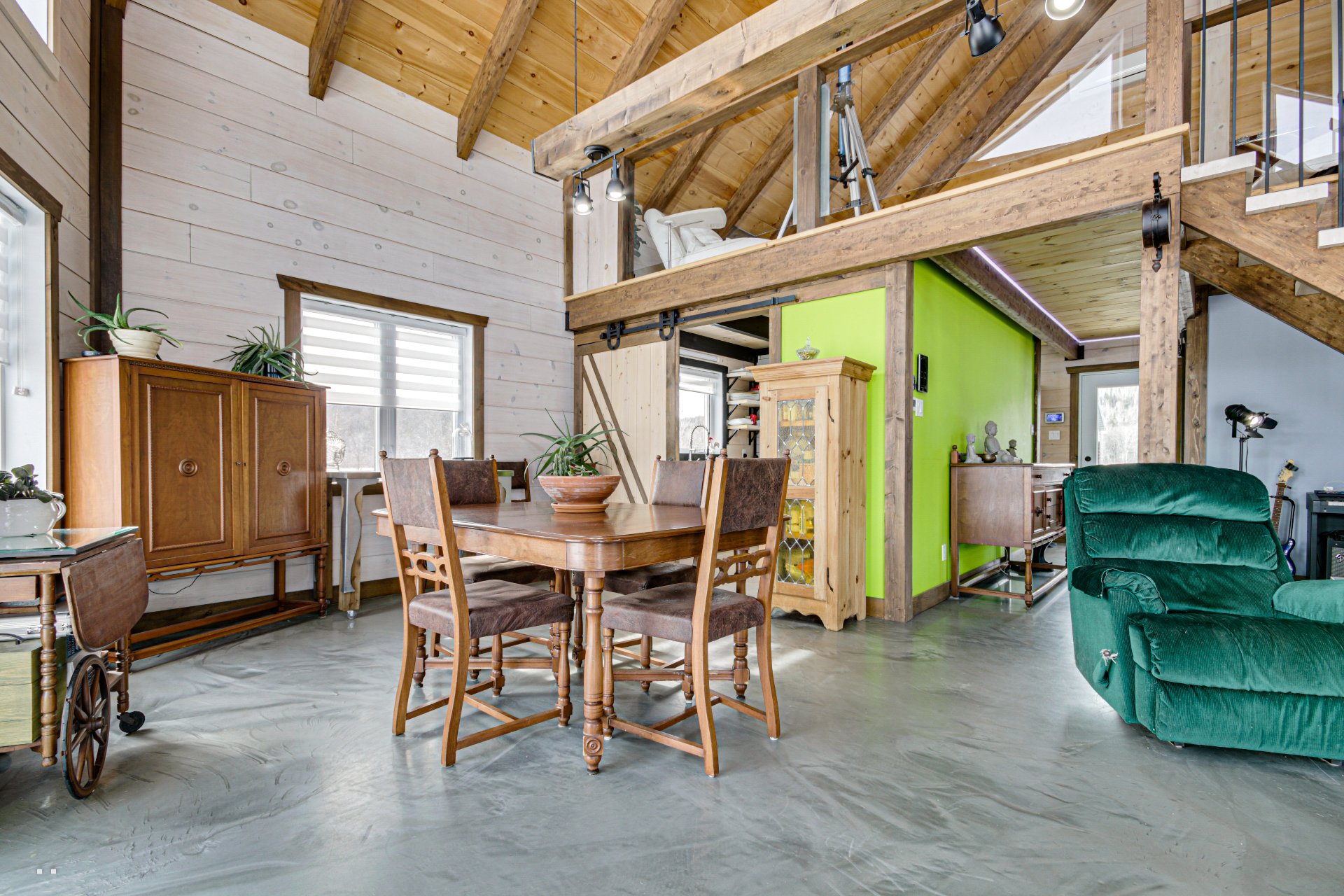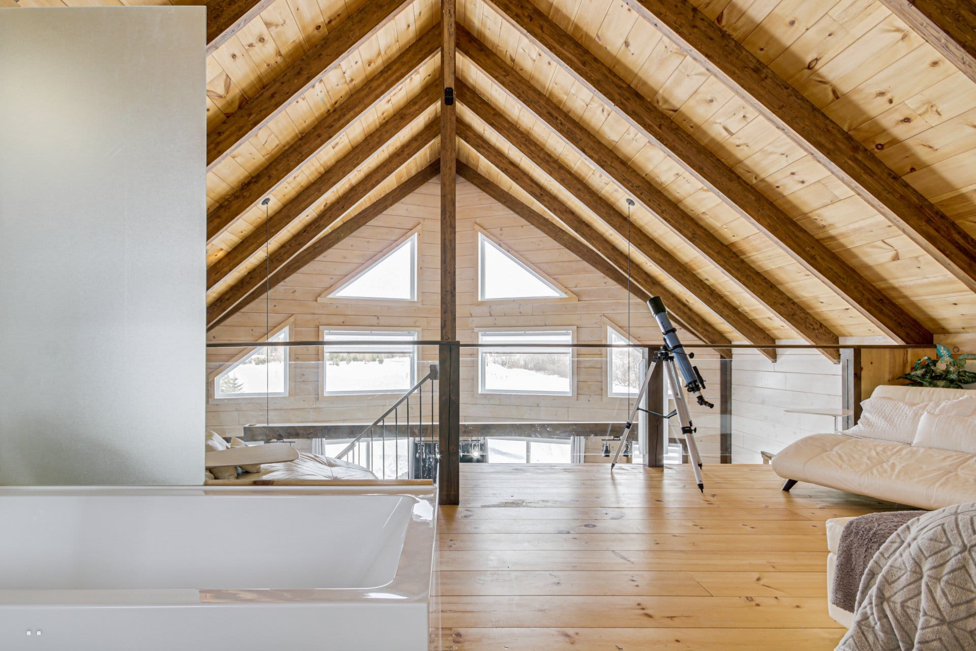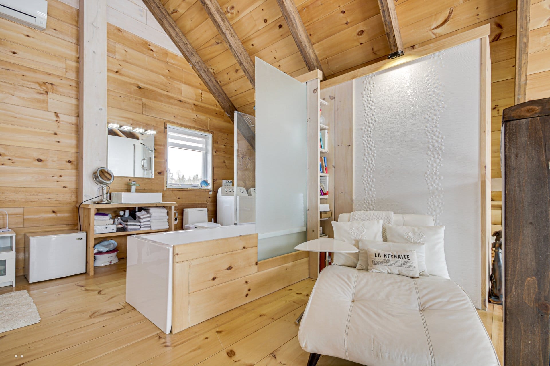 Grandeur: 30′ x 35′ + garage Isolation: R-30 Fini extérieur: Rond Hauteur des murs: 10′ Poutre apparentes: Oui