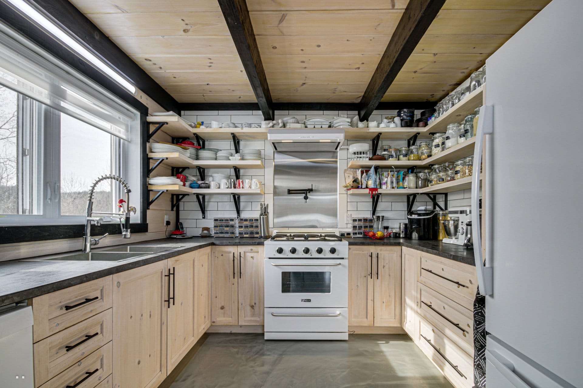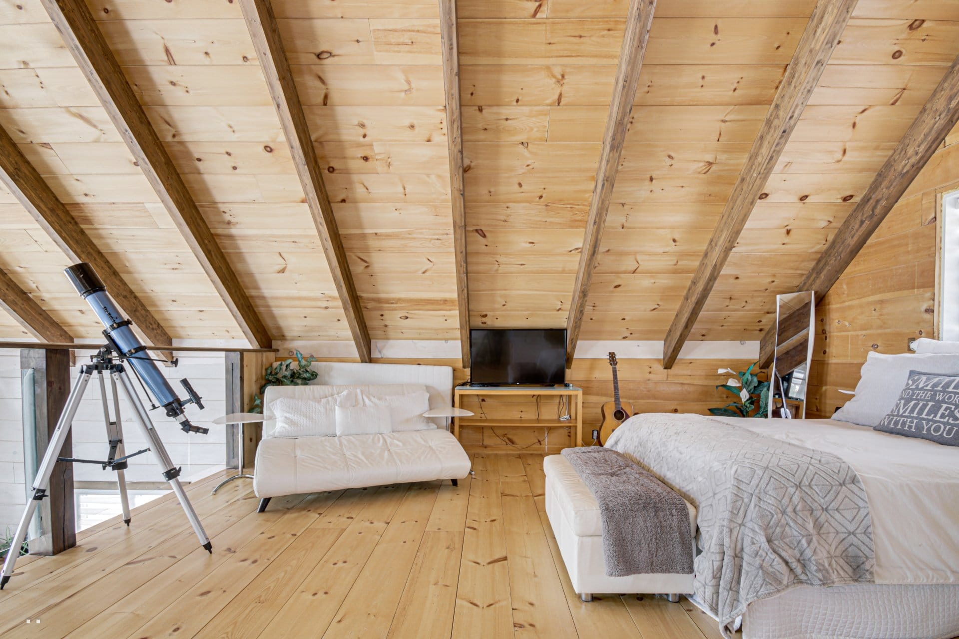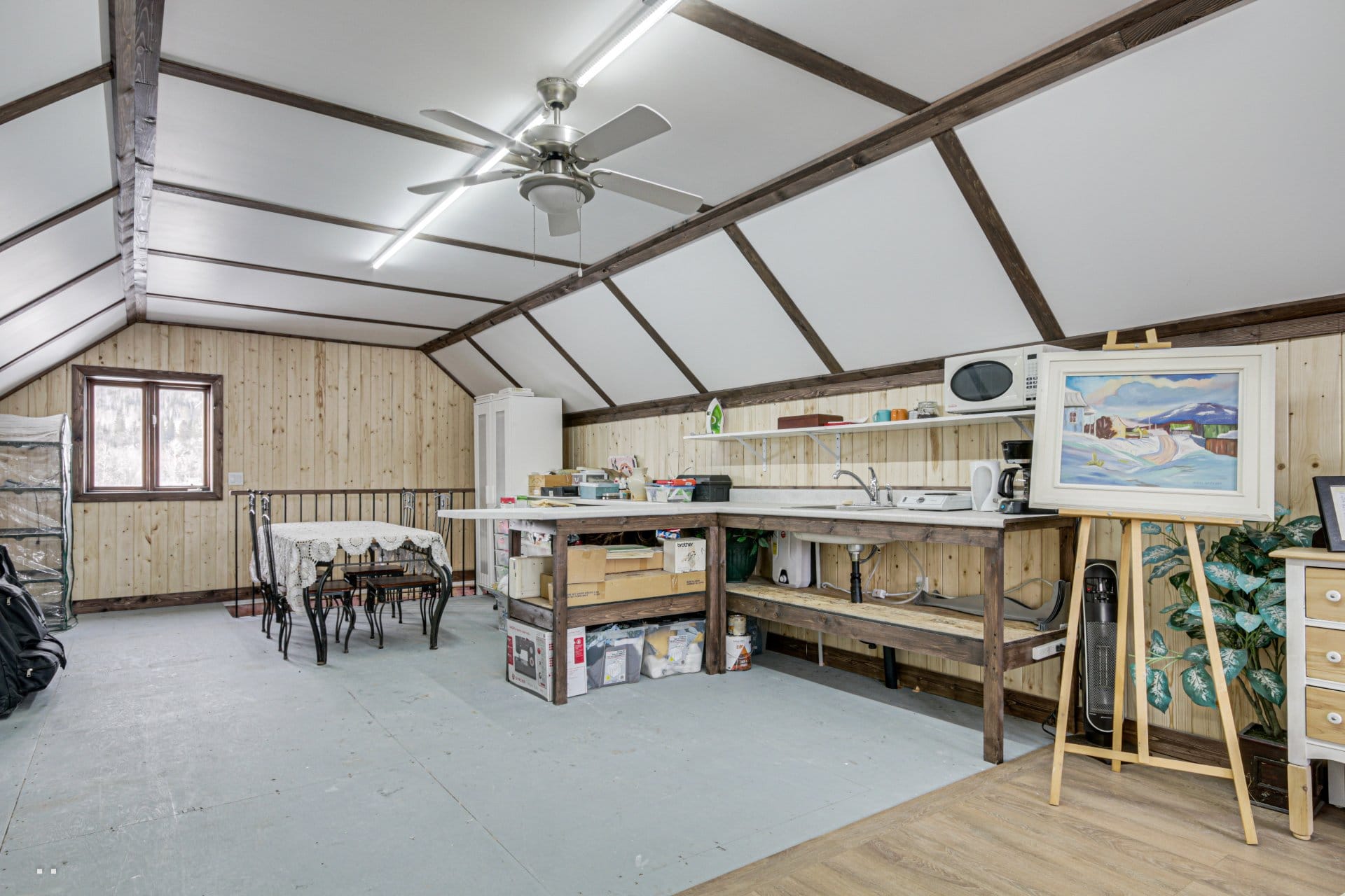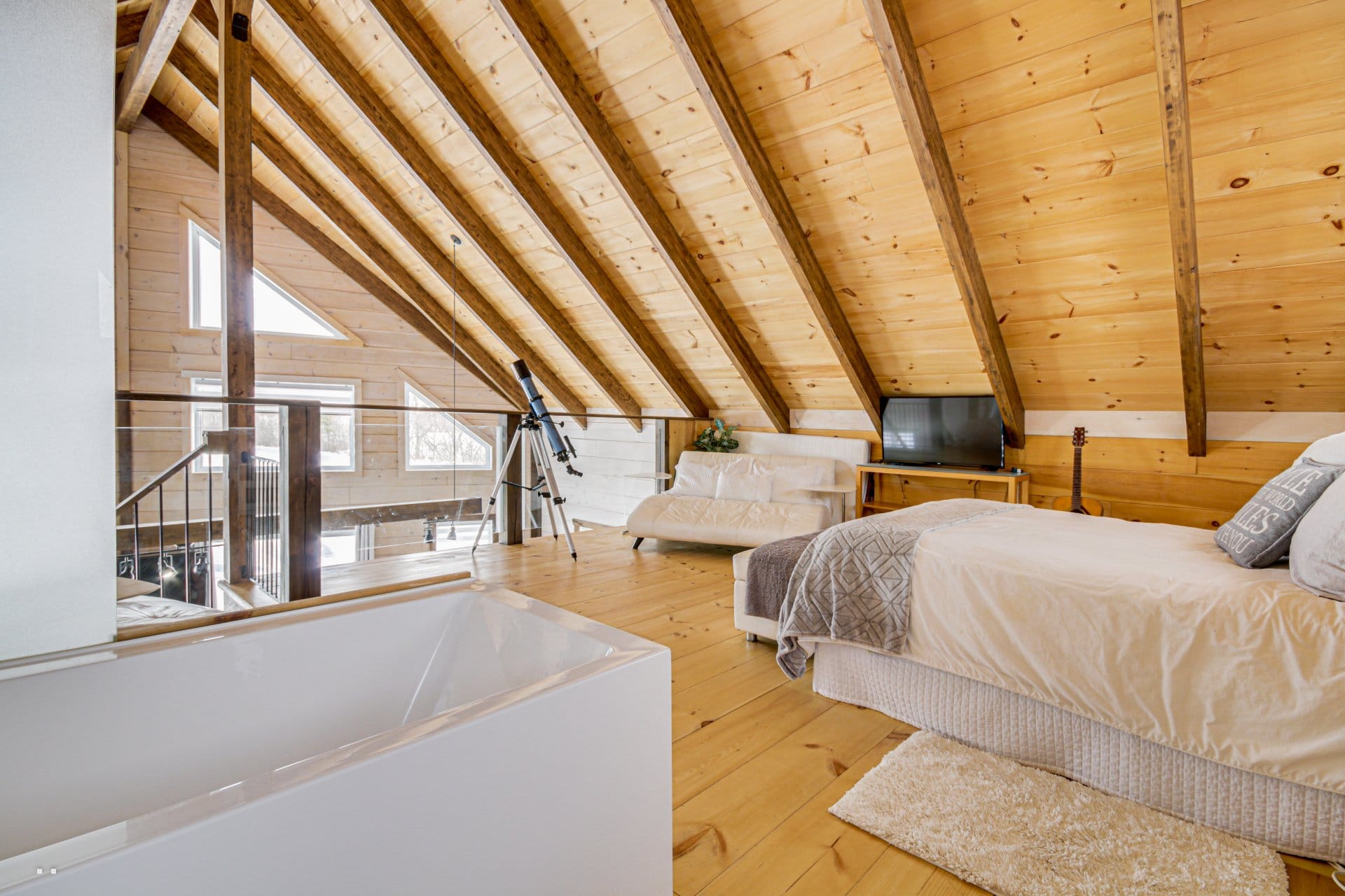 Grandeur: 30′ x 35′ + garage Isolation: R-30 Fini extérieur: Rond Hauteur des murs: 10′ Poutre apparentes: Oui