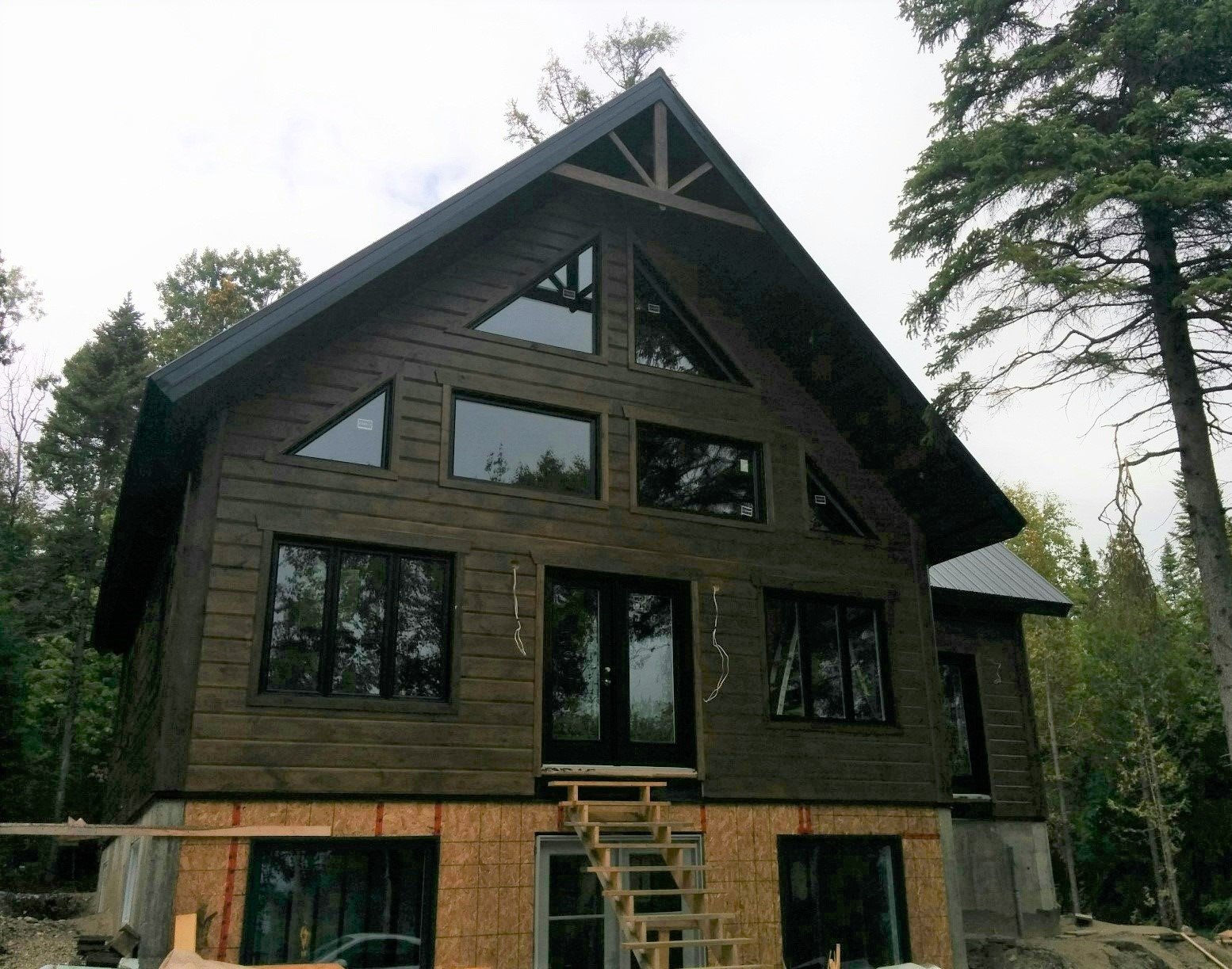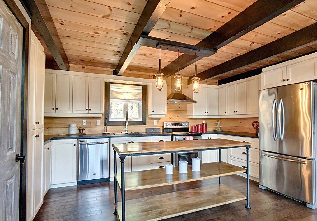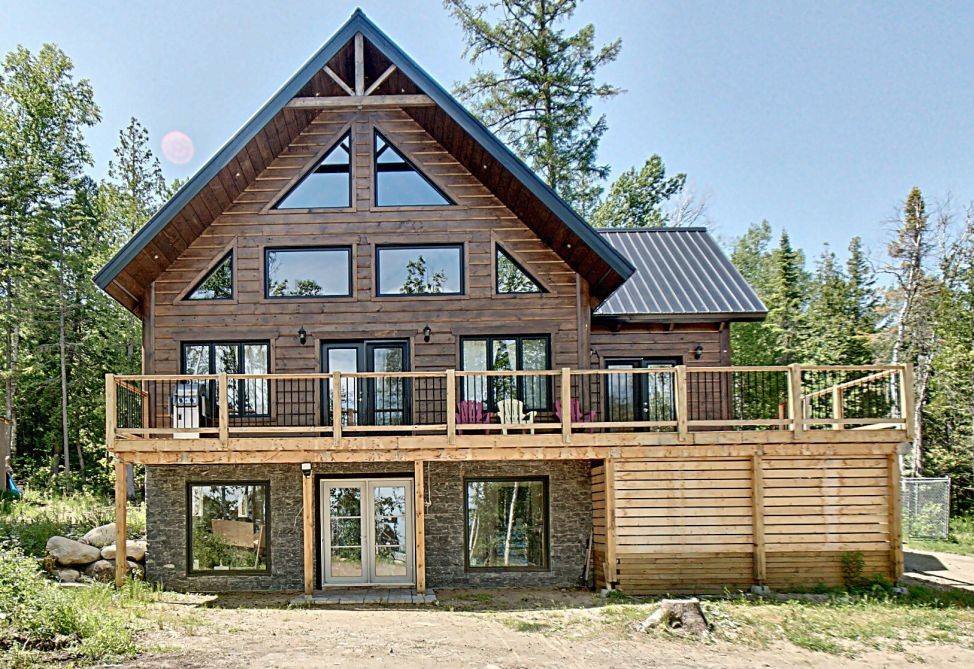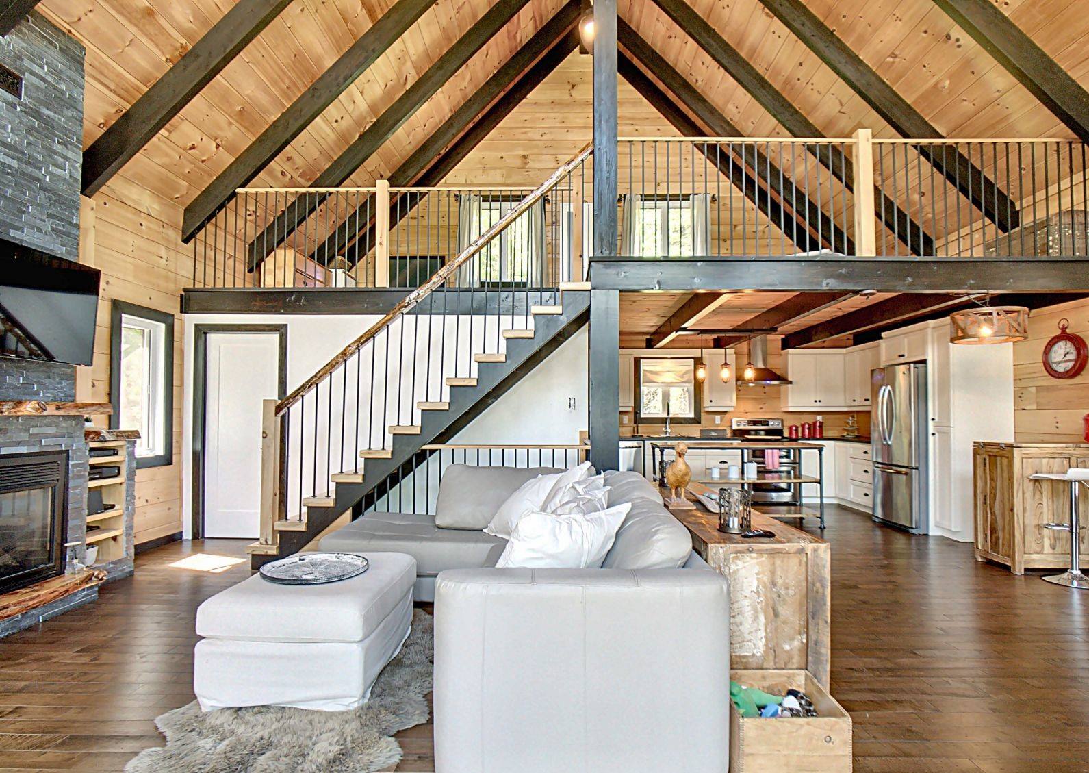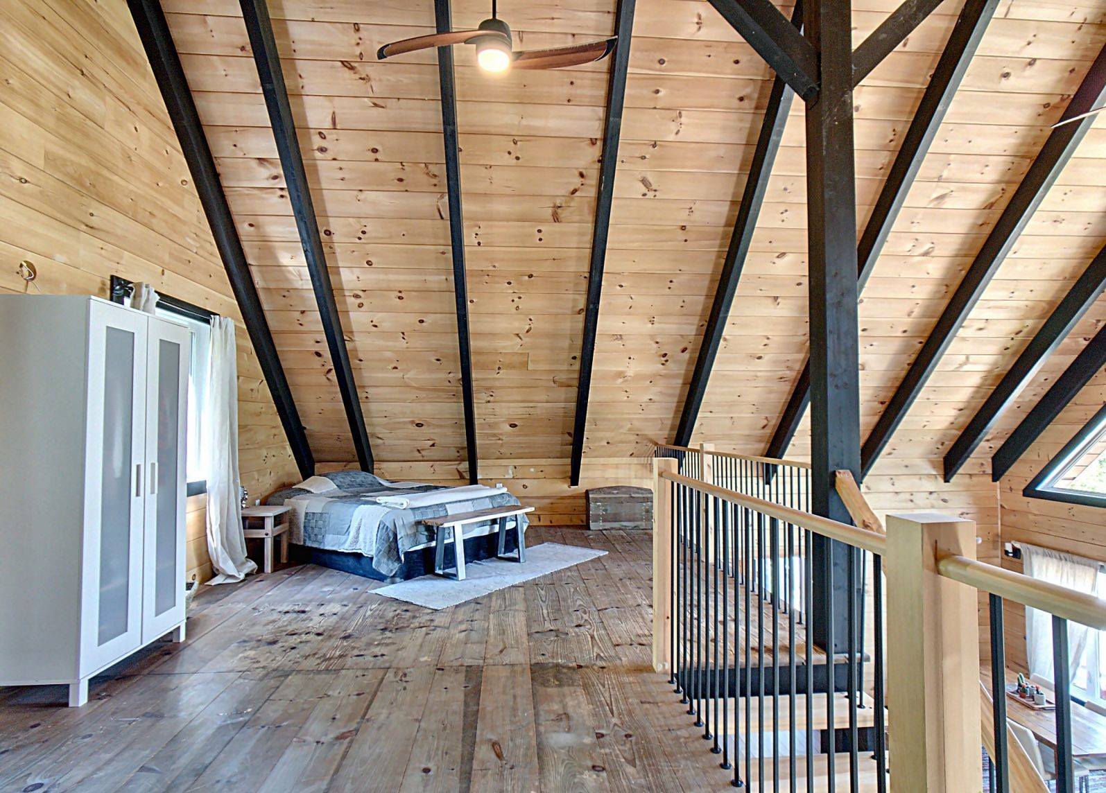 Grandeur: 28′ x 30′ Fini extérieur: Plat Hauteur des murs: 10′ Poutre apparentes: Oui Extra: Annexe de 12′ x 16′
