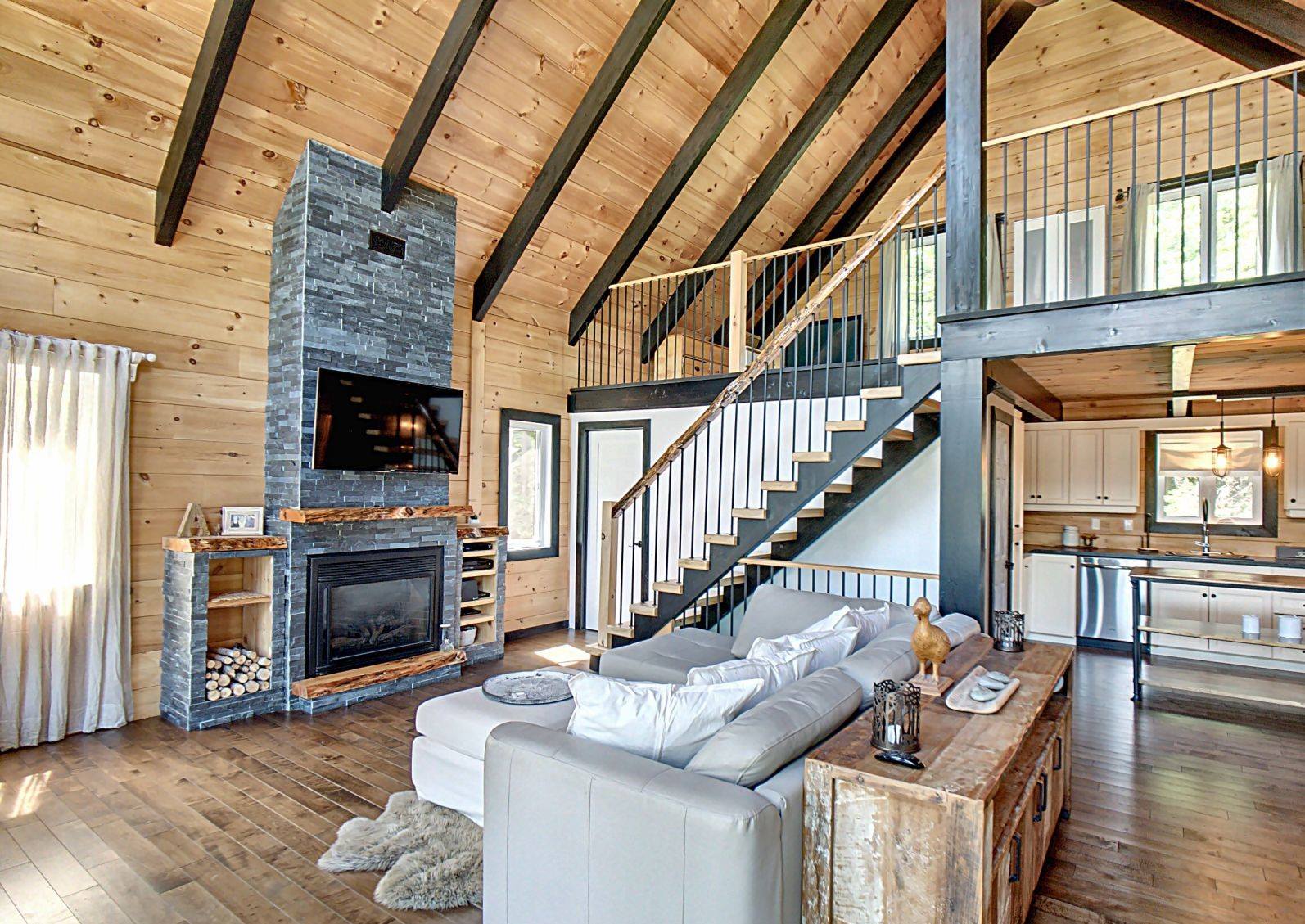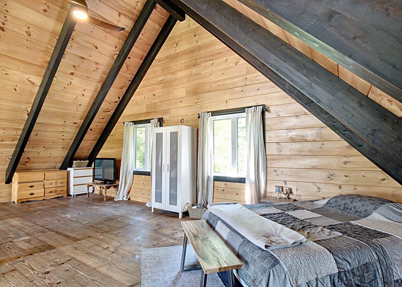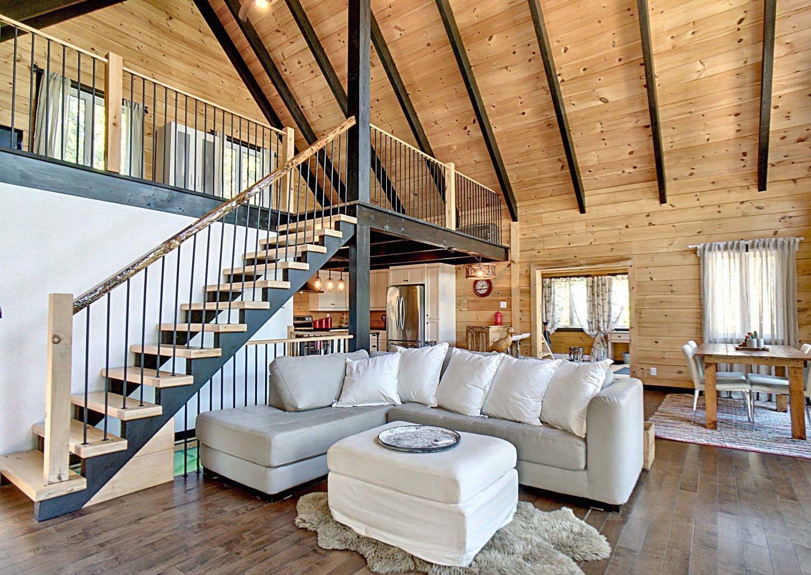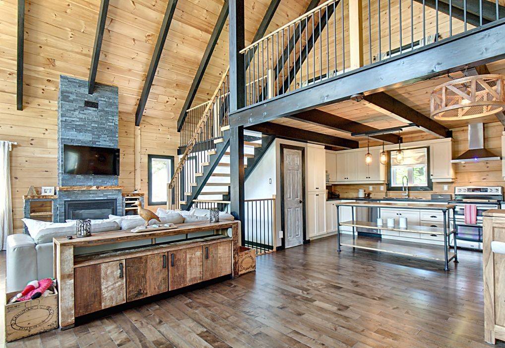 Grandeur: 28′ x 30′ Fini extérieur: Plat Hauteur des murs: 10′ Poutre apparentes: Oui Extra: Annexe de 12′ x 16′