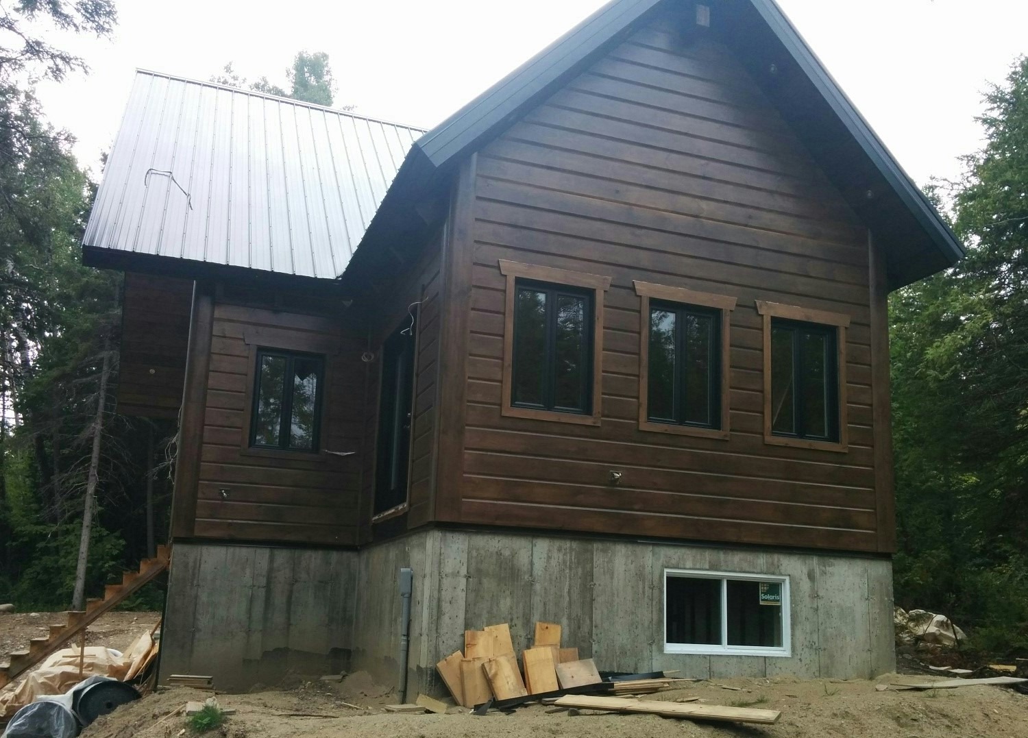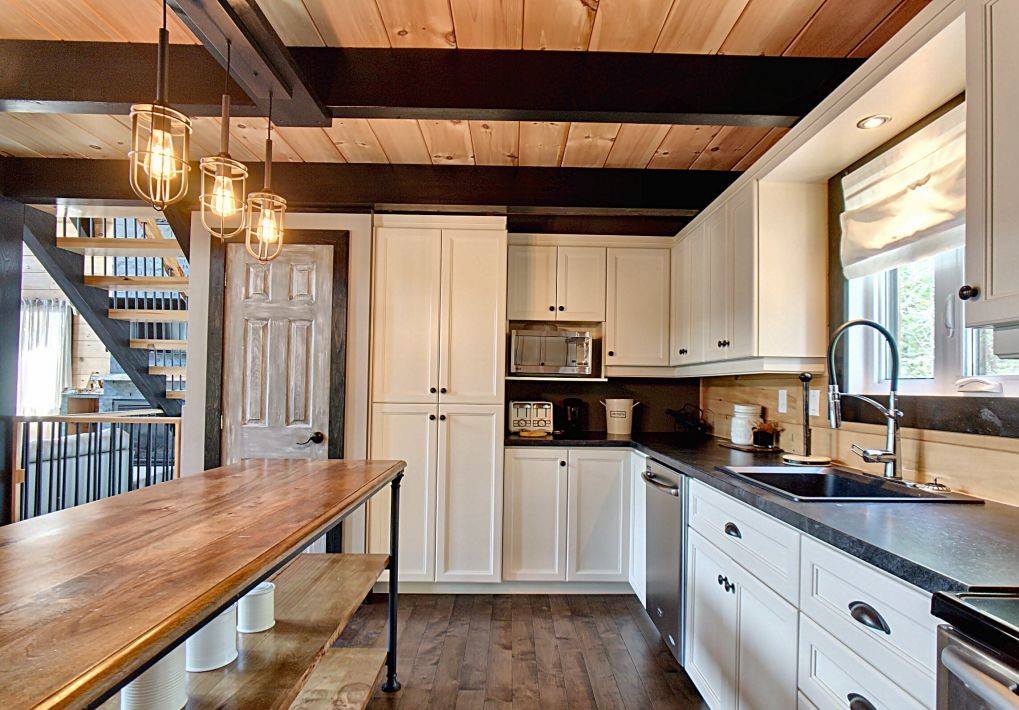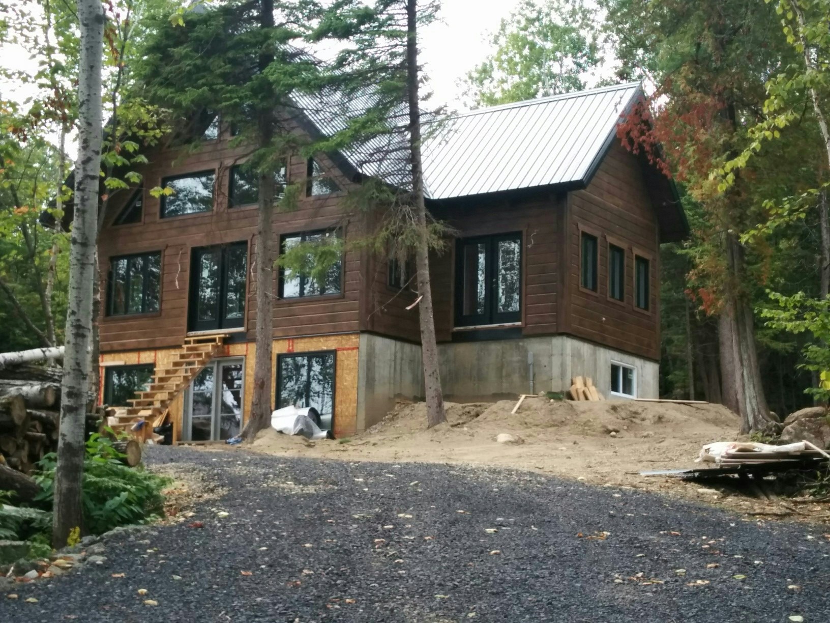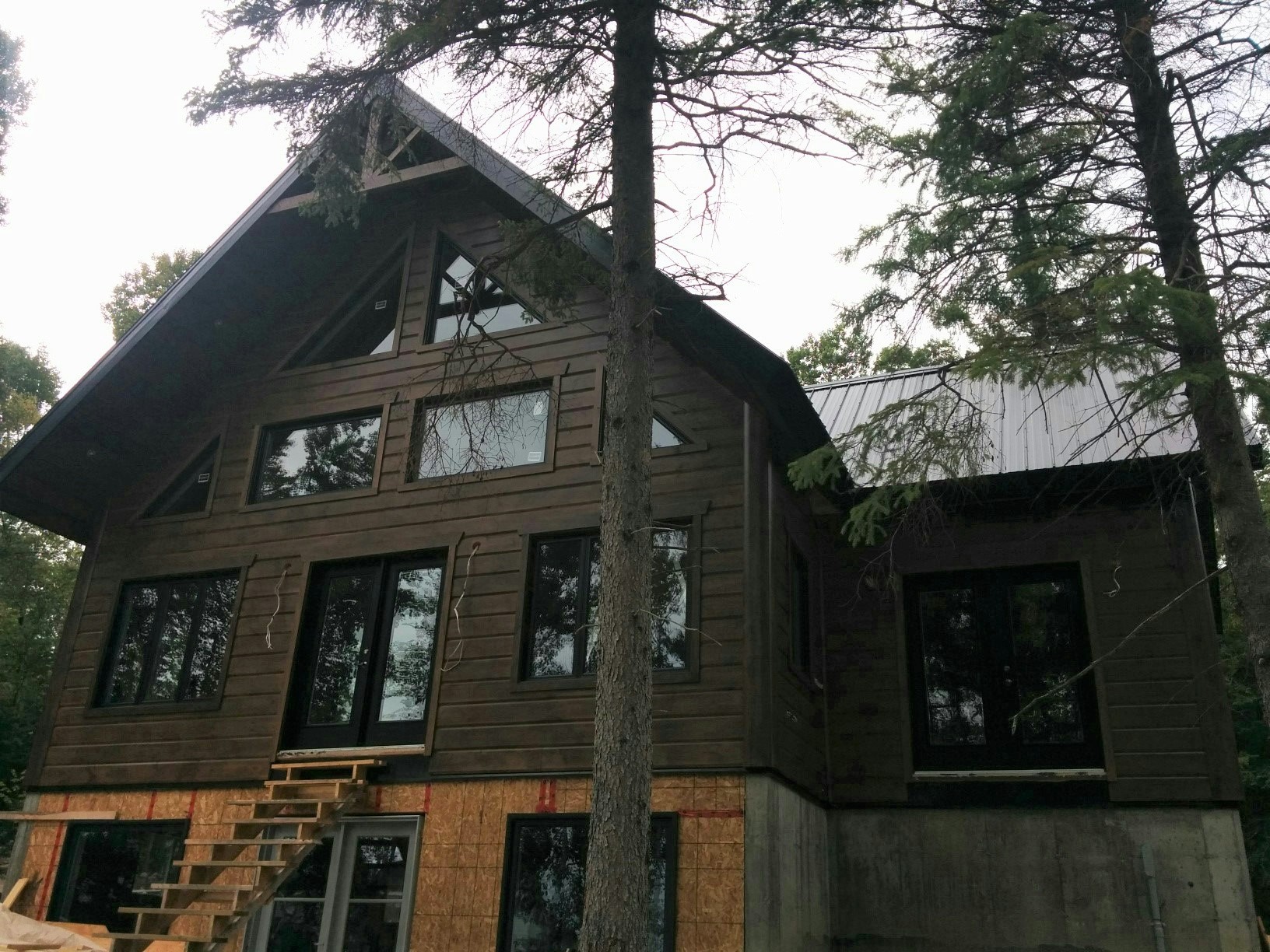 Grandeur: 28′ x 30′ Fini extérieur: Plat Hauteur des murs: 10′ Poutre apparentes: Oui Extra: Annexe de 12′ x 16′